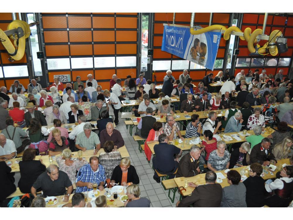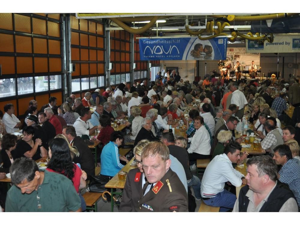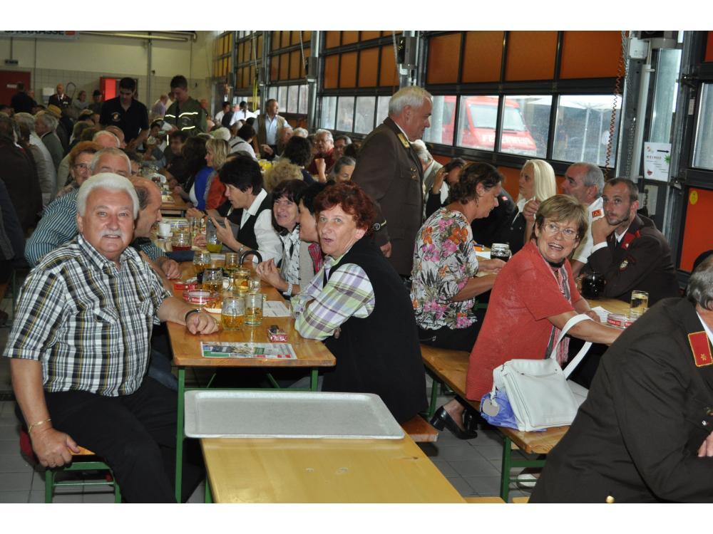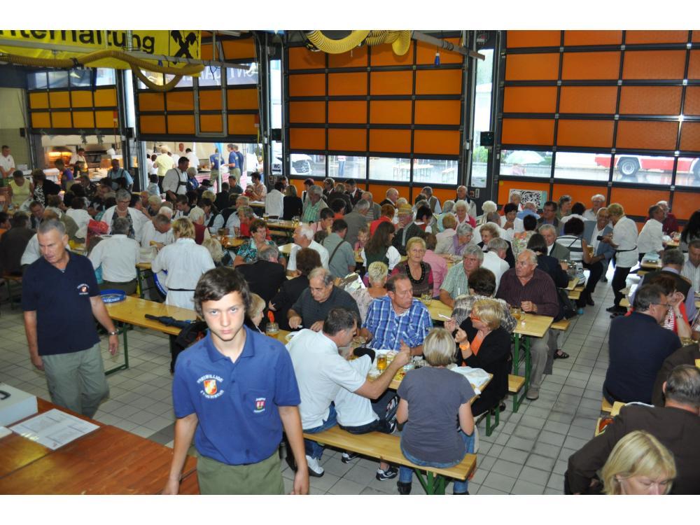 VOITSBERG, am 26.08.2012 Sehr zahlreich war der Besuch des Frühschoppens. Das Schneiderwirt Trio brachte Schwung in die bis zum letzten Platz gefüllte Fahrzeughalle. Der Andrang war so groß, dass man in eine zweite kleinere Garage die Festgäste bemühen mussten. Sehr groß war auch der Besuch von Ehrengästen, welche vom Wehrkommandanten HBI Klaus Gehr begrüßt wurden: Stadtpfarrer Dechant Dr. Erich Linhardt, Bürgermeister Ernst Meixner, Vizebürgermeister Walter Gaich, die Stadträte Franz Sachernegg und Horst Kovacic, einige Gemeinderäte aus Voitsberg, OBR Engelbert Huber, die Vertreter der Polizei, ELBD Karl Strablegg, ELFR Erwin Draxler, EABI Hermann Ruprechter und Abordnungen von Wehren aus dem Bezirk. Besonders stolz waren wir aber über den so zahlreichen Besuch der Bevölkerung, wofür wir uns bedanken möchten.
