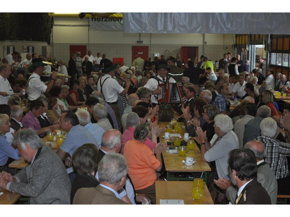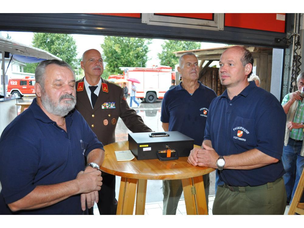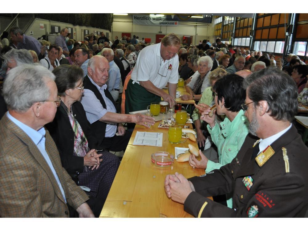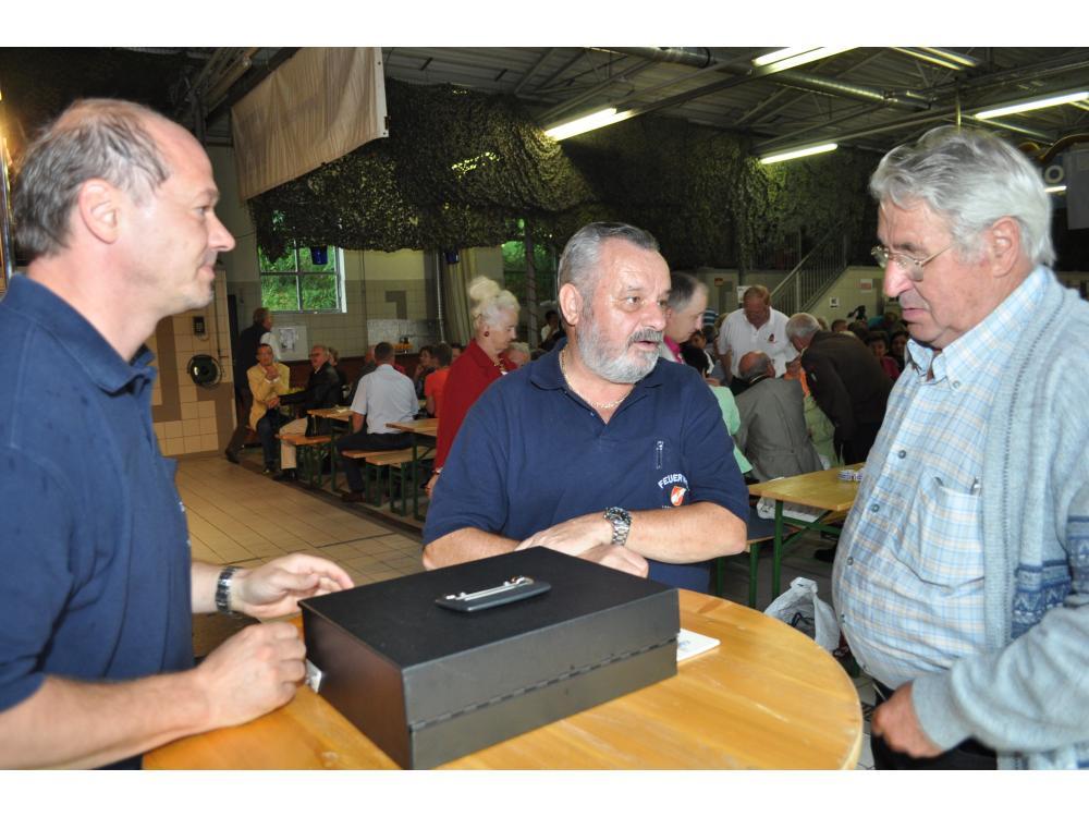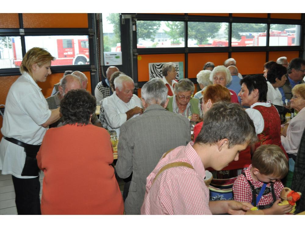 VOITSBERG, am 26.08.2012 Sehr zahlreich war der Besuch des Frühschoppens. Das Schneiderwirt Trio brachte Schwung in die bis zum letzten Platz gefüllte Fahrzeughalle. Der Andrang war so groß, dass man in eine zweite kleinere Garage die Festgäste bemühen mussten. Sehr groß war auch der Besuch von Ehrengästen, welche vom Wehrkommandanten HBI Klaus Gehr begrüßt wurden: Stadtpfarrer Dechant Dr. Erich Linhardt, Bürgermeister Ernst Meixner, Vizebürgermeister Walter Gaich, die Stadträte Franz Sachernegg und Horst Kovacic, einige Gemeinderäte aus Voitsberg, OBR Engelbert Huber, die Vertreter der Polizei, ELBD Karl Strablegg, ELFR Erwin Draxler, EABI Hermann Ruprechter und Abordnungen von Wehren aus dem Bezirk. Besonders stolz waren wir aber über den so zahlreichen Besuch der Bevölkerung, wofür wir uns bedanken möchten.