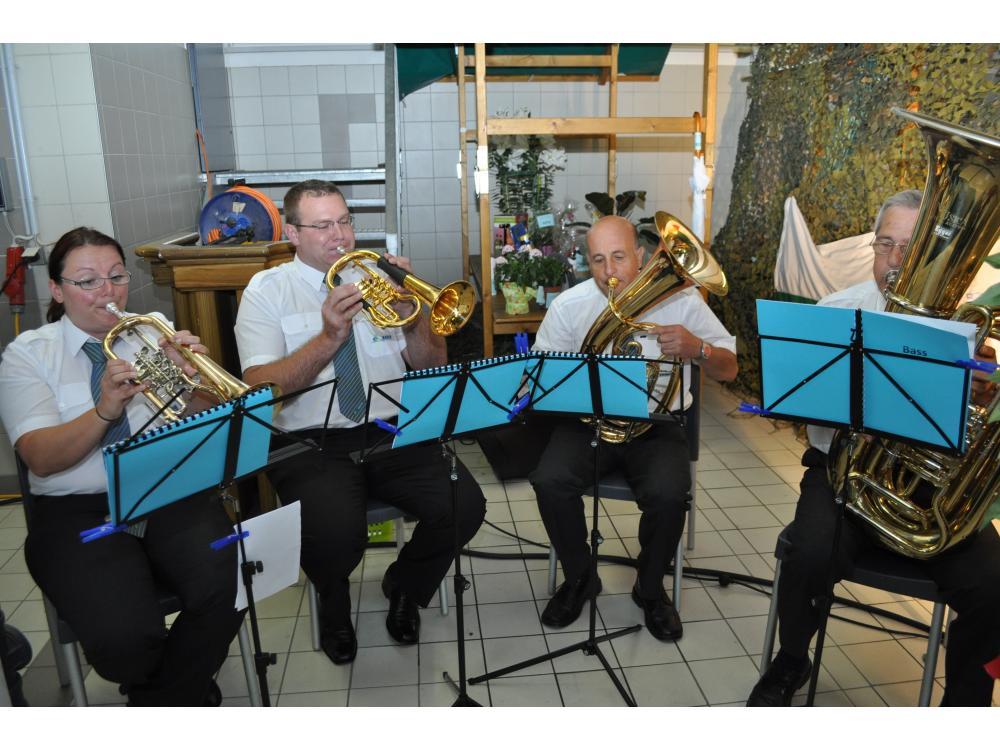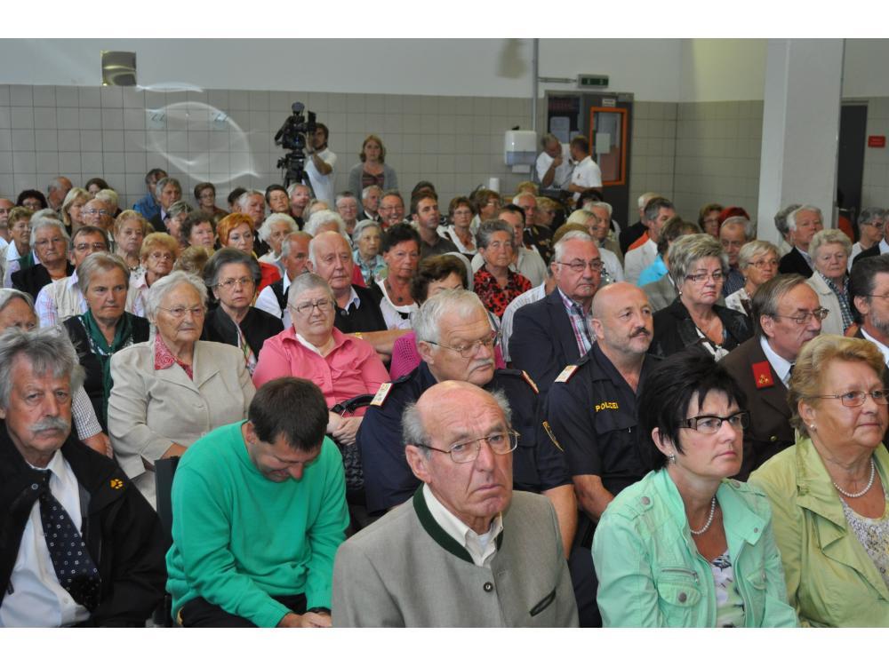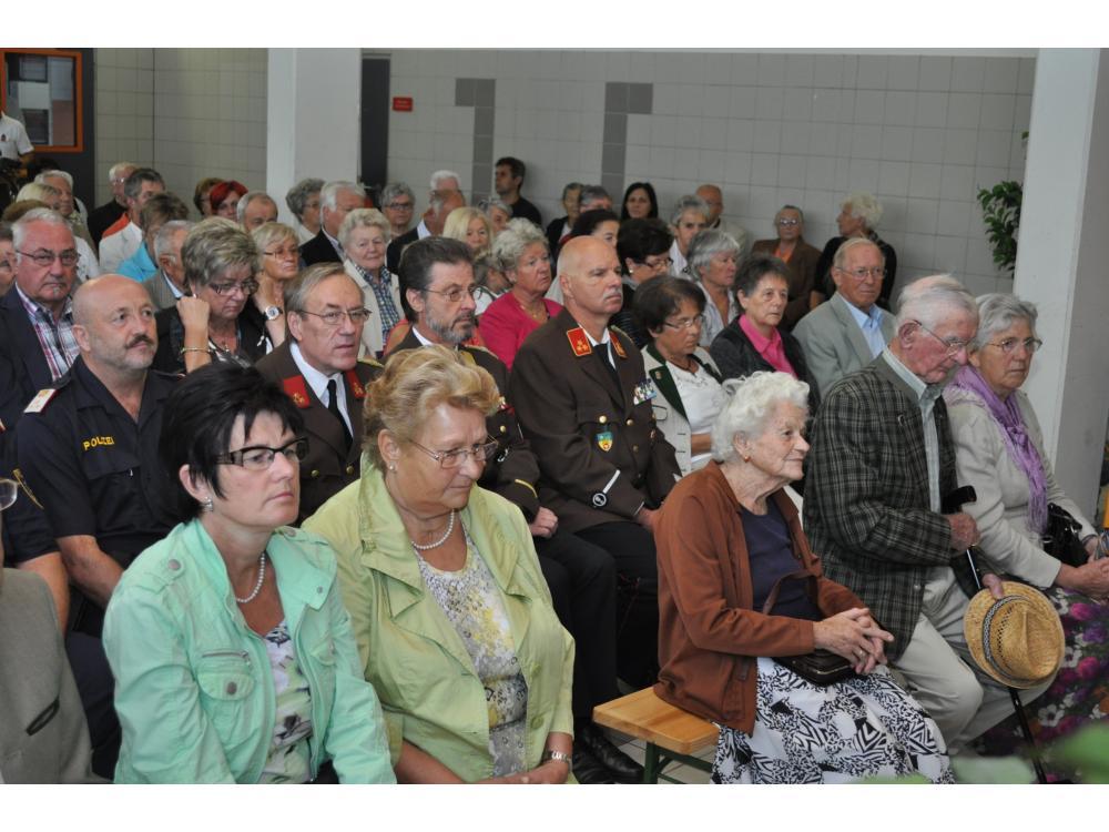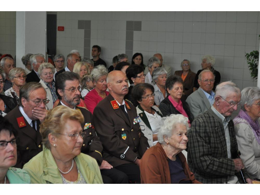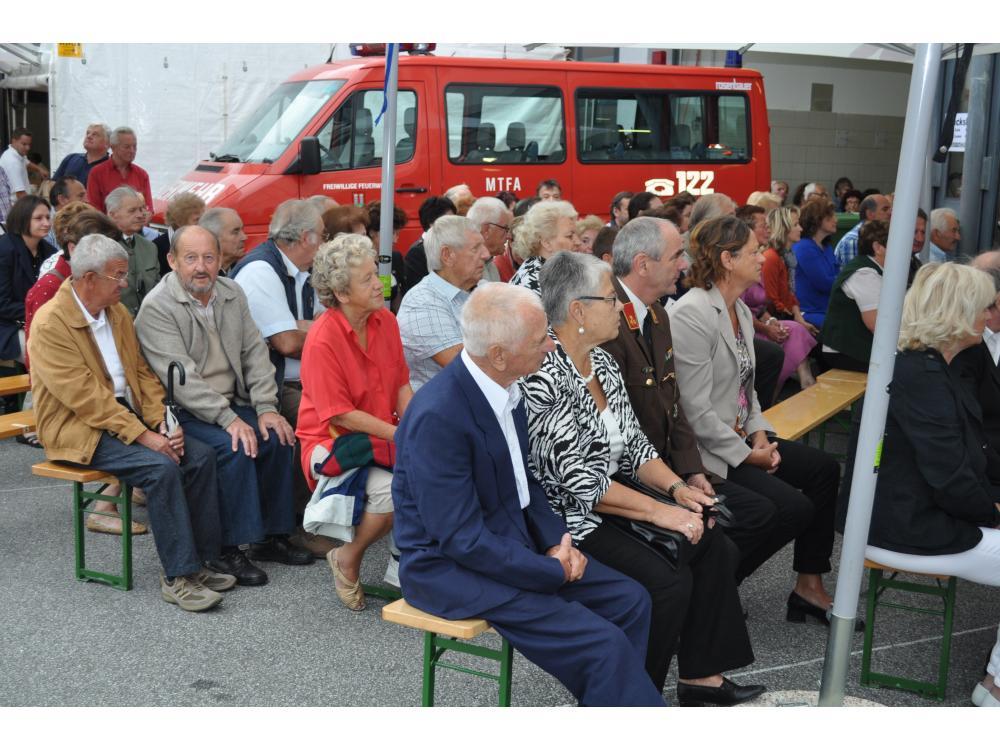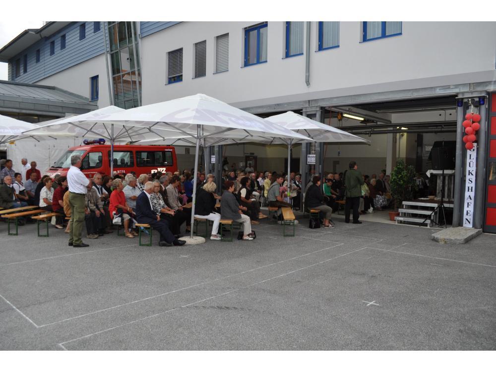 VOITSBERG, am 26.08.2012 Bereichsfeuerwehrkurat Dechant Dr. Erich Linhardt zelebrierte, musikalisch umrahmt von einer Bläsergruppe der Werkskapelle Bauer, die Feldmesse. Diesmal war der Wettergott nicht auf unserer Seite, dennoch konnte uns auch dies nicht aus der Ruhe bringen. Die vielen Besucher konnten alle unter Dach die Feldmesse miterleben.