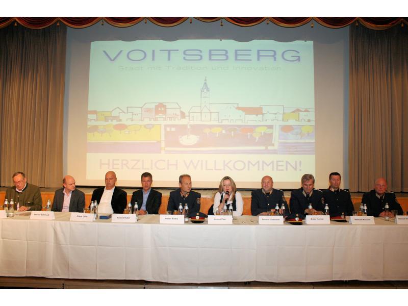 VOITSBERG, am 24.10.2013 Im Rahmen einer Bürgerversammlung der Stadtgemeinde Voitsberg begrüßte Bürgermeister Ernst Meixner in den Voitsberger Stadtsälen zum Thema Sicherheit die zahlreich erschienen Besucher. Es folgten Referate von Beamten der Polizei, der Bezirkshauptmannschaft und den Stadtwerken. Wehrkommandant HBI Ing. Klaus Gehr referierte zum Thema Brandschutz. Er berichtete von Einsätzen der letzten Jahre bei welchen Bewohner, in einem Fall leider tödlich, mit Rauchgasvergiftungen im letzten Moment gerettet werden konnten. Durch Installation von Rauchwarnmeldern hätte es wahrscheinlich wenig Auswirkungen auf die Gesundheit der Betroffenen gegeben. Er appellierte zum Kauf solcher Melder, welche preiswert (ca. 12 €) im Fachhandel erhältlich sind. Die FF Voitsberg berät sie bei Fragen gerne. Weiters erläuterte er die Einsatzstatistiken der Vergangenheit und stellte unter anderem fest, dass die Anzahl der Brände, besonders bei den Haushalten, steigend ist.