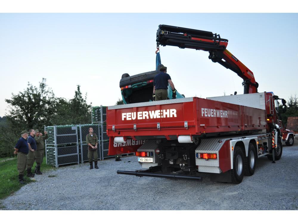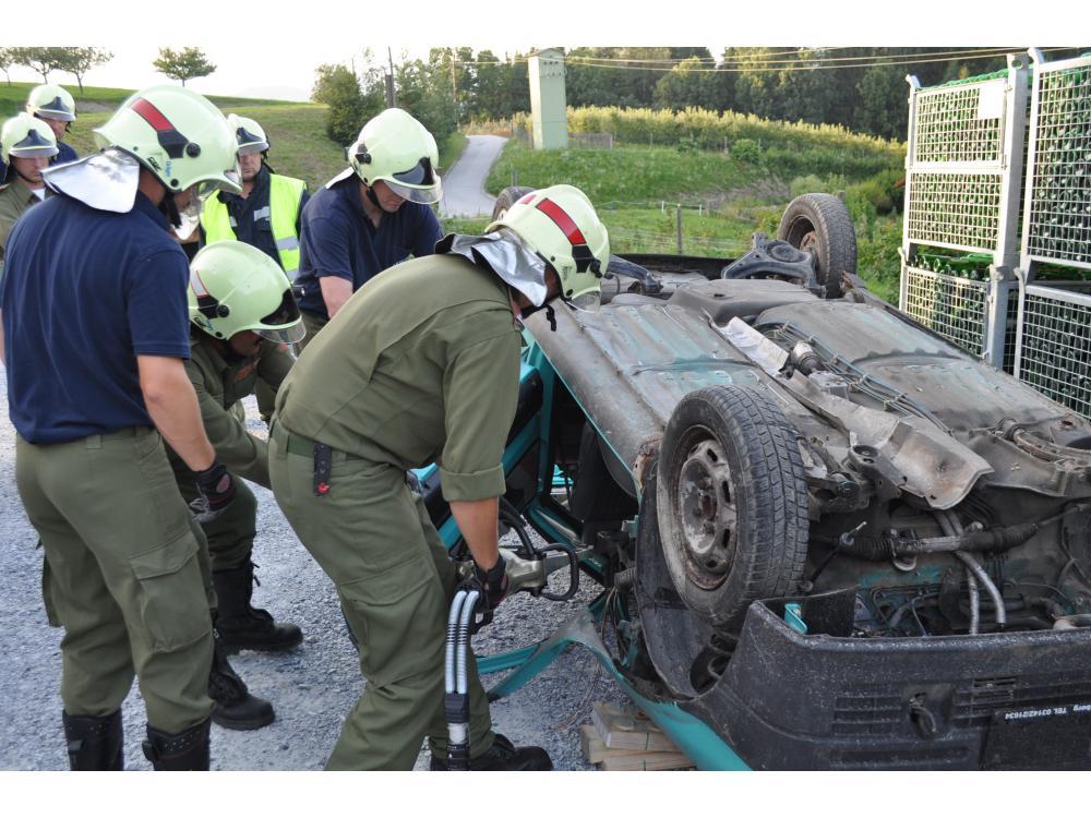 VOITSBERG, am 06.08.2012 Über Einladung der Familie Schlosser fand auf deren Anwesen eine technische Übung statt. Beübt wurde zum Ersten die Bergung eines Verletzten, welcher unter einem umgestürzten Baum eingeklemmt war. Zweiter Teil der Übung war die Bergung eines Verletzten aus einem Autowrack mit Spreizer und hydraulischem Stempel. Nach erfolgreichem Abschluss der Übung meldete der Einsatzleiter BM Tappauf dies dem Wehrkommandanten HBI Gehr. Der Objektbesitzer Willibald Schlosser lobte den hohen Ausrüstungsstand, bedankte sich für die Einsatzbereitschaft und lud alle zu einer Jause und einem Umtrunk ein, wofür sich die Kameraden/Innen recht herzlich bedanken möchten.