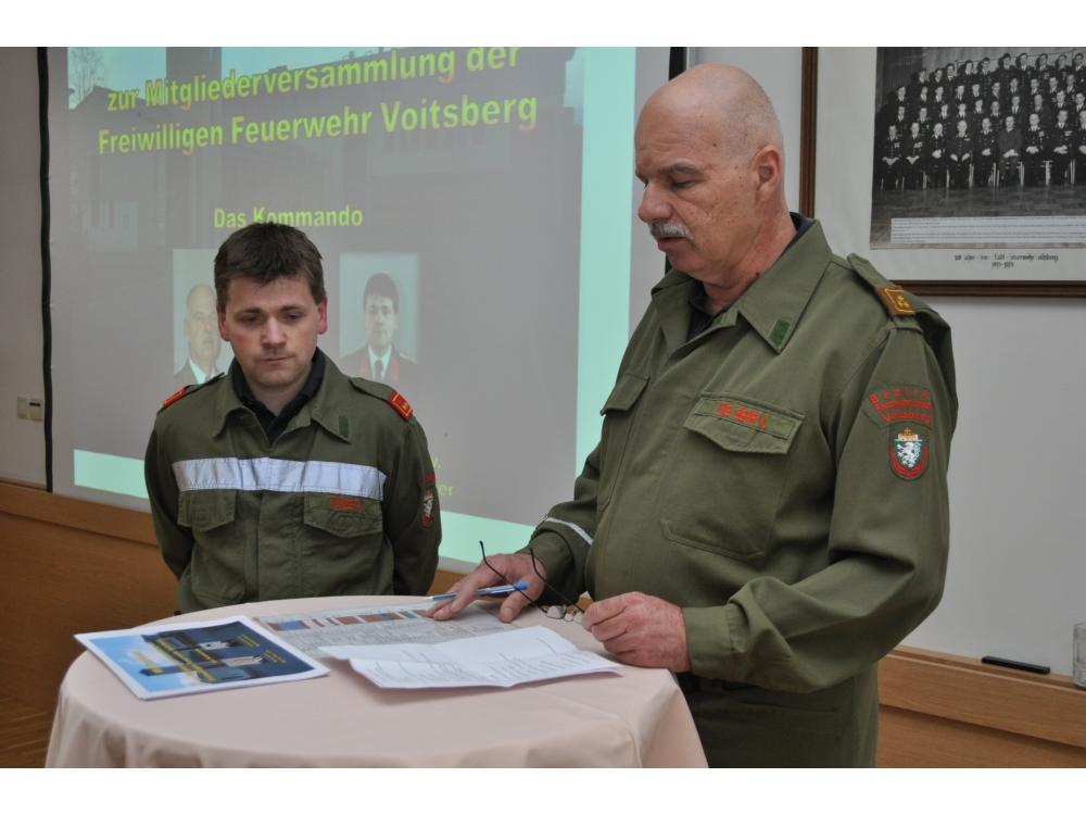 VOITSBERG, am 16.04.2012 Das Kommando (HBI Ing. Gehr Klaus und OBI Münzer Michael) teilte der fast zur Gänze anwesenden Mannschaft die Einteilung der Züge bzw. Gruppen, sowie der Funktionäre mit.