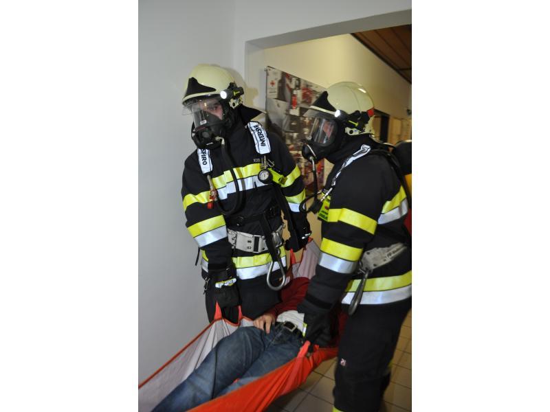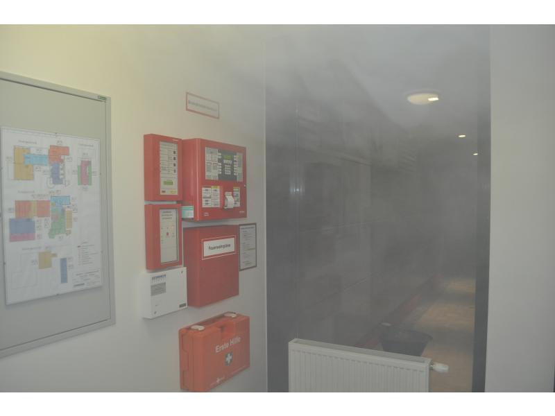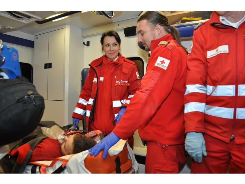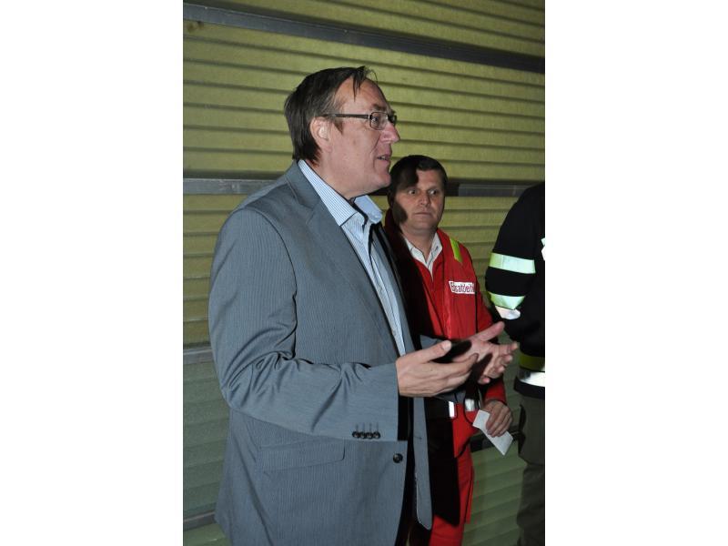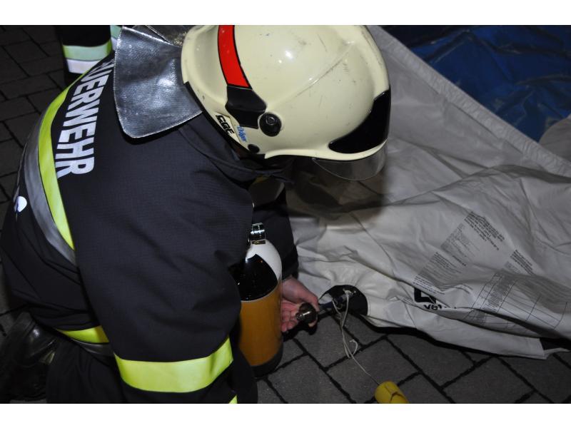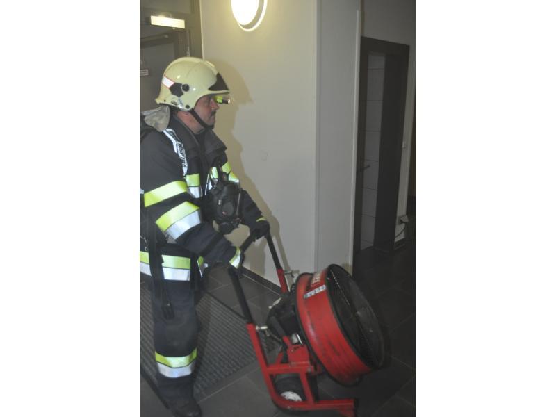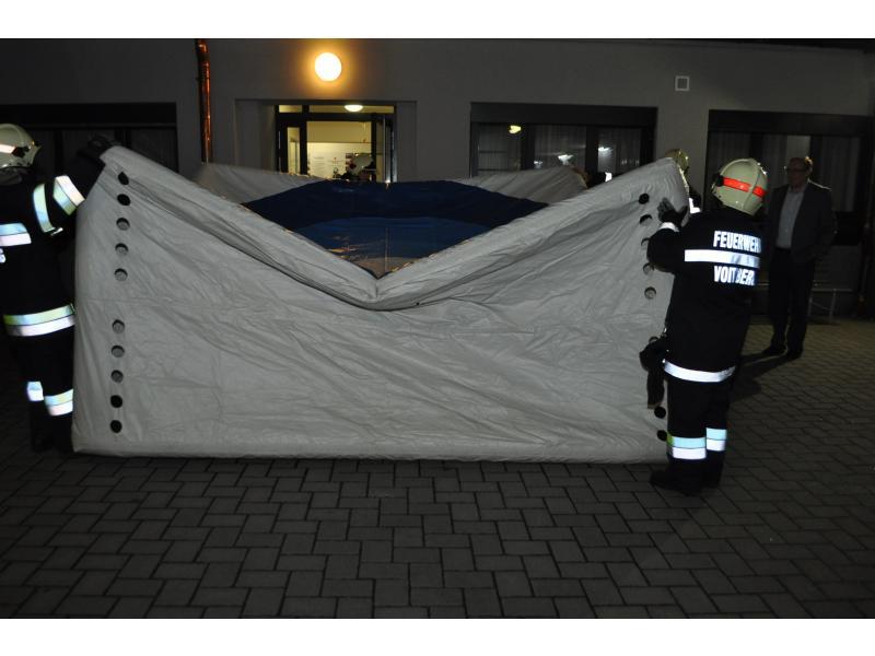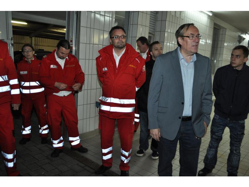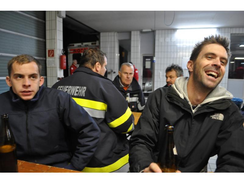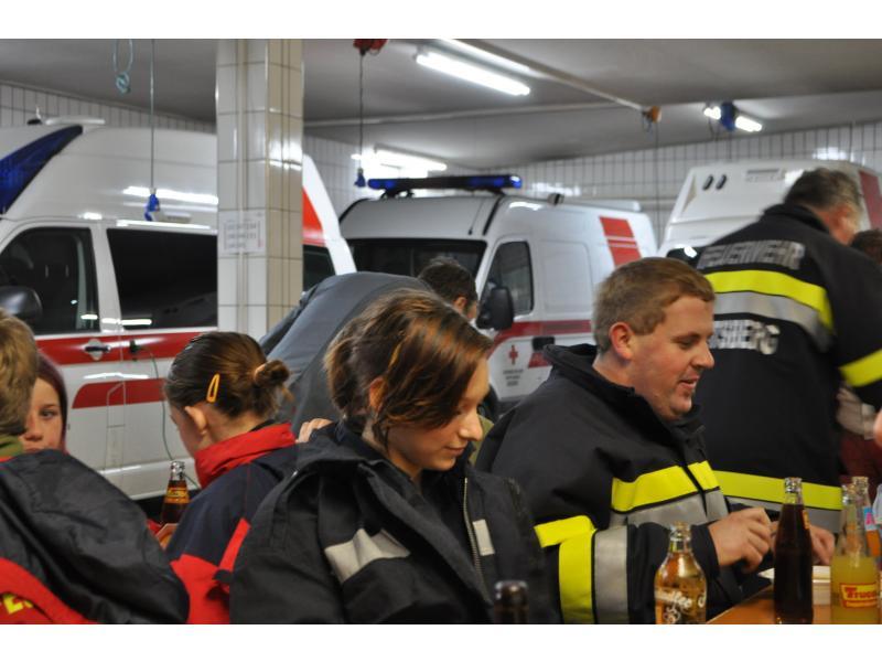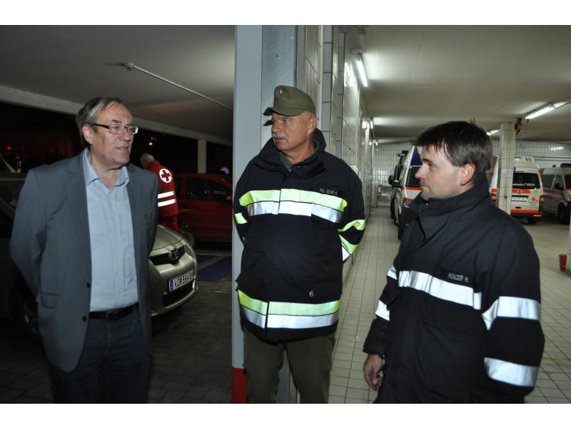 VOITSBERG, am 14.10.2013 Diesmal wurde die Einsatzzentrale des Roten Kreuzes Voitsberg beübt. Übungsannahme war ein Kellerbrand, bei welchem der Westteil des Objektes betroffen war. Die Brandmeldeanlage meldete an Florian Steiermark den Brand mit der Zusatzmeldung das sich noch 6 Personen im Haus befinden. Die alarmierte FF Voitsberg begann sofort nach Erkundung des Einsatzleiters BI d. F. Ing. Bernd Unger mit dem Brandangriff unter schwerem Atemschutz im Keller, wobei eine Person mit einer Rauchgasvergiftung geborgen und dem Roten Kreuz übergeben wurde. Eine weitere Person wurde mit Hilfe des Sprungretters vom Dach gerettet. Vier vom Brand überraschte Rotkreuzhelfer waren in den Schlafräumen im 1. Stock eingeschlossen und konnten diese nur über einen hergestellten Leiterweg verlassen. Gleichzeitig wurden die in den Garagen geparkten Einsatzfahrzeuge von den diensthabenden Rotkreuzmitarbeitern in Sicherheit gebracht um die Einsatzbereitschaft zu gewährleisten. Bei der abschließenden Schlussbesprechung meldete der Einsatzleiter dem Wehrkommandanten HBI Ing. Klaus Gehr die erfolgreiche Beendigung der Übung. Dieser bedankte sich für die Bereitstellung des Objektes und die Vorbereitung durch OBI Michael Münzer und LM d. S. Christoph Amberger. Der „Chef“ des Roten Kreuzes Voitsberg und der FF Voitsberg Bürgermeister Ernst Meixner lobte die gute Zusammenarbeit und zeigte sich sehr stolz über den Übungsverlauf. Der Brandschutzbeauftragte Franz Sommer erläuterte den Ablauf und lud namens des ÖRK alle Übungsteilnehmer zu einer gemeinsamen Gulaschsuppe mit Getränken ein.