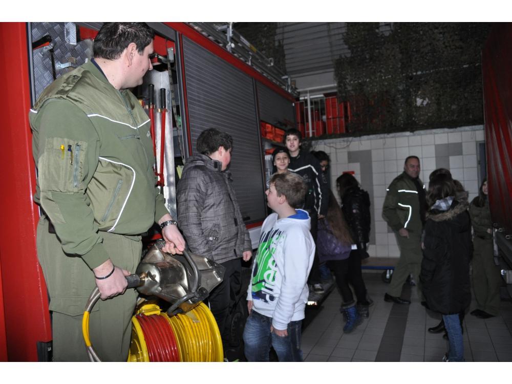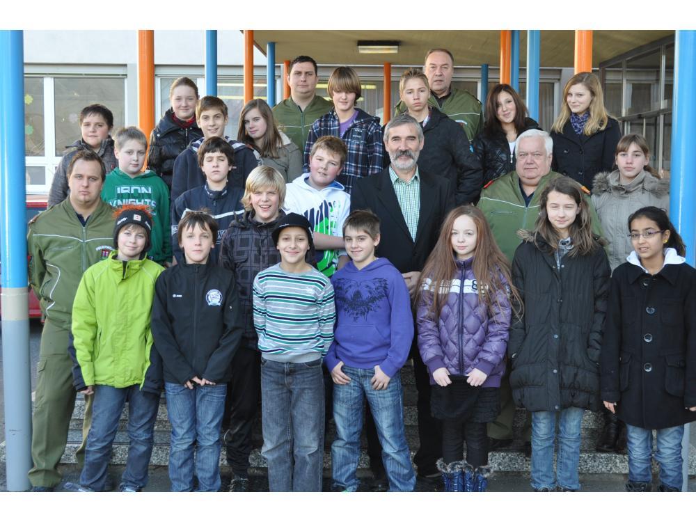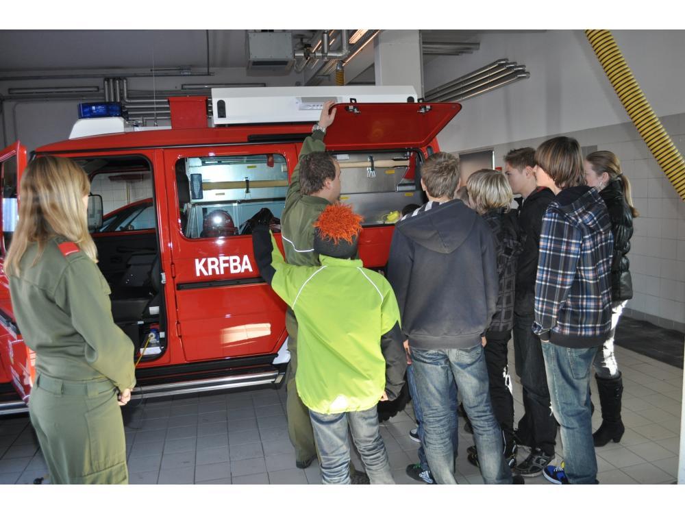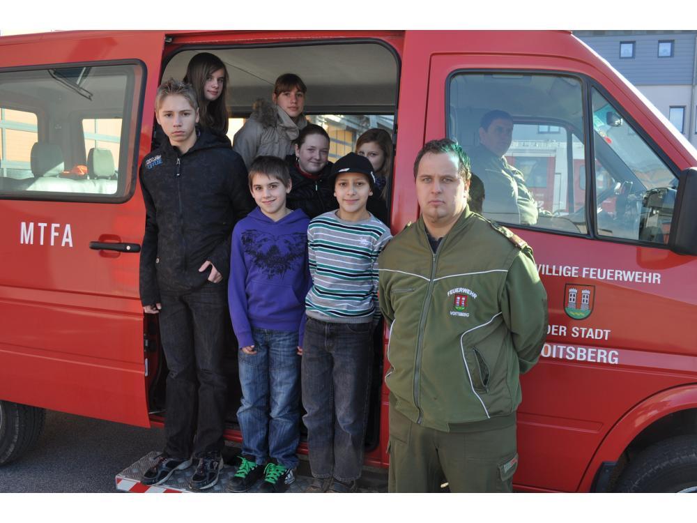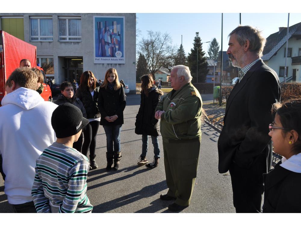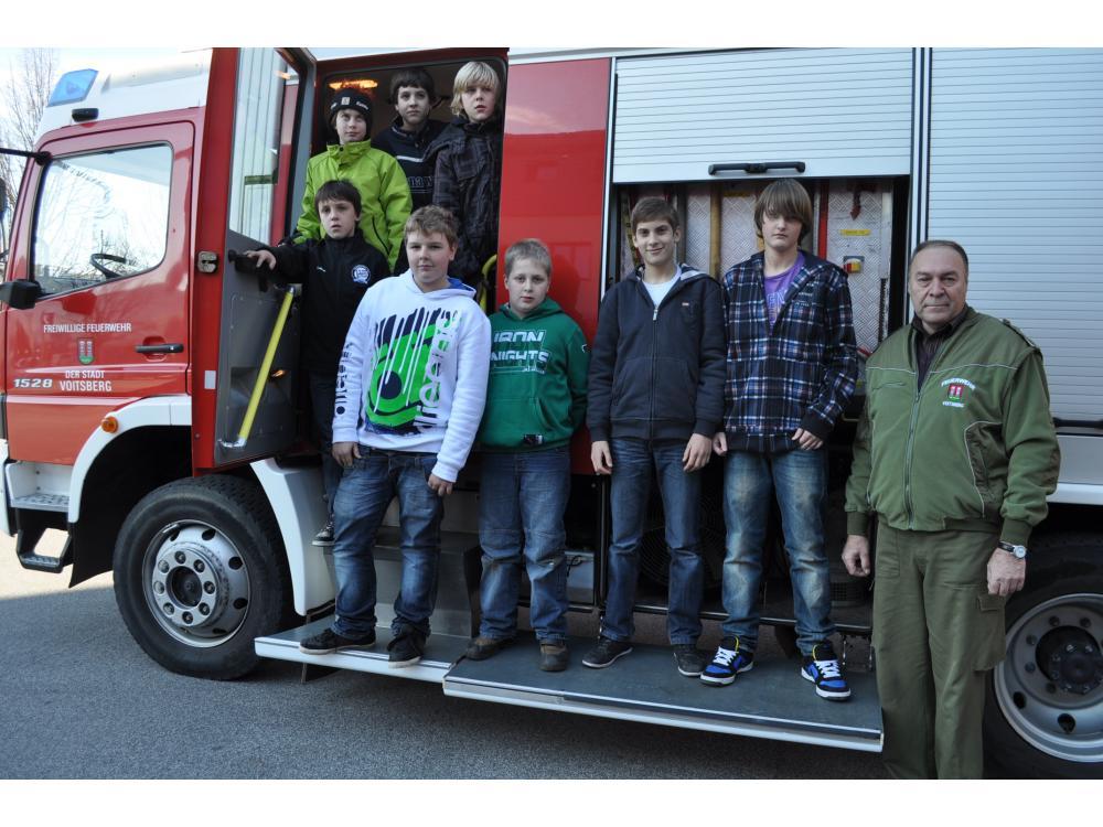 VOITSBERG, am 12.01.2012 Über Einladung der Stadtfeuerwehr Voitsberg besichtigte eine Klasse der NMS Voitsberg das Rüsthaus. Die Schüler wurden nach der Begrüßung durch Direktor Gerhard Zotter und Feuerwehrkommandant ABI Alfred Jauk mit Feuerwehrfahrzeugen in der Schule abgeholt und zum Rüsthaus gebracht. Die Jugendbeauftragten der FF Voitsberg LMdF Rene Sorger und LMdF Manfred Müller führten die Jugendlichen durch das Rüsthaus und zeigten ihnen den Fuhrpark samt Ausrüstung sowie eine Power Point-Präsentation über das Geschehen in der Feuerwehr. Danach konnten sich die Teilnehmer eine von den Kameraden HLMdF Anton Fellner und LM Christian Gallaun vorbereiteten kleinen Jause mit einem Getränk stärken. Mit einer „Blaulichtfahrt“ wurde dieser für die Jugendlichen interessante Besuch abgeschlossen.