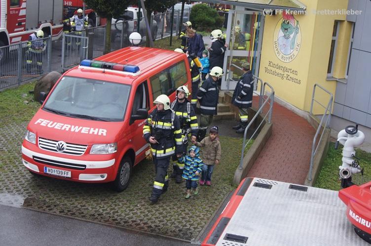 VOITSBERG, am 16.10.2015 Mehrwehrenübung im Kindergarten Krems - Kellerbrand mit Evakuierung der Kinder und des Personals - Teilnahme der Feuerwehren Krems, Voitsberg, Gaisfeld, Bärnbach und Köflach