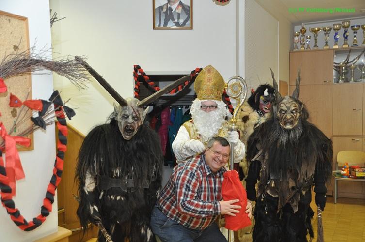 VOITSBERG, am 05.12.2015 Wie viele Jahre zuvor lud das Kommando die Kinder bzw. Enkelkinder der Feuerwehrangehörigen ins Rüsthaus zu einer gemeinsamen Nikolausfeier ein. Die Begrüßung erfolgte durch die Organisatorin dieser Tradtionsfeier Waltraud Veigl namens des Kommandos. Schon vor dem Erscheinen des Nikolaus bzw. der Krampusse herrschte unter den Kindern (aber auch den Erwachsenen) große Aufregung und Spannung. Nach dem Eintreffen lobte der Nikolaus die anwesenden Kinder und beschenkte sie mit einem Sackerl, während die Krampusse daneben alles beobachteten. Die Kinder machten anschließend mit dem Nikolaus, als auch mit den Krampussen Erinnerungsfotos und wurden zu einer kleinen Jause mit Getränken eingeladen. Dank sei dem Kommando als auch Waltraud Veigl für die Durchführung auszusprechen.