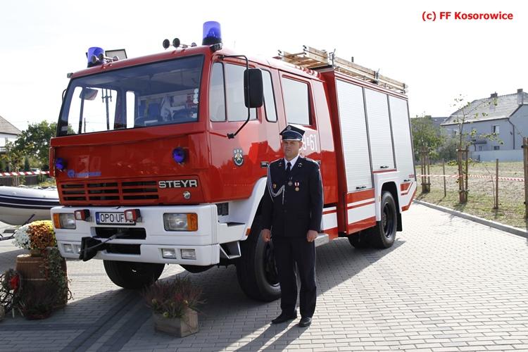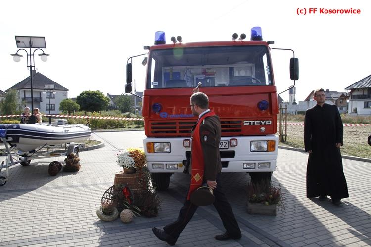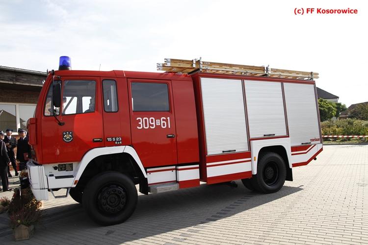 VOITSBERG, am 04.10.2015 Das im Juli 2015 an die polnische Feuerwehr Kosorowice verkaufte RLFA-Tunnel wurde am 4. Oktober 2015 in einer würdevollen Feier offiziell in den Dienst gestellt. Nach Ansprachen segnete der aus Kosorowice stammende Feuerwehrkurat und Pfarrer von Maria Lankowitz Josua Gonsior als Gastpfarrer das Fahrzeug. Es wurde uns übermittelt, dass die Kameraden mit diesem Fahrzeug sehr viel Freude haben und stolz sind, dieses zu besitzen. Wir, die FF Voitsberg, wünschen der FF Kosorowice mit dem Steyr viele Übungen und wenig Einsätze.
