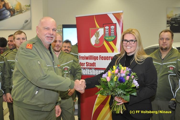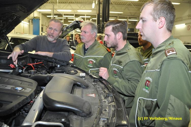 VOITSBERG, am 22.02.2016 Kameraden der FF Voitsberg folgten einer Einladung der Geschäftsführung des Autohauses BMW Papst in der Grazer Vorstadt in Voitsberg, um über die Handhabung bei Einsätzen mit Elektrofahrzeugen mehr Kenntnisse zu erlangen. Nach der Begrüßung durch die Geschäftsführer Romana und Othmar Papst folgte eine sehr interessante Schulung. Die Herren Gerhard Linhart und Patrick Eder zeigten und erklärten bei verschiedenen Fahrzeugmodellen die Einsatzmöglichkeiten bei verunfallten Fahrzeugen. Sehr interessiert wurden von den Kameraden Fragen an die Spezialisten gestellt, welche auch bestens beantwortet werden konnten. Diese Schulung zeigte auf, welche komplexen Einsatztaktiken anzuwenden sind und es wurden auch kleinere Mängel der Autohersteller erläutert. Wehrkommandant HBI Ing. Klaus Gehr dankte namens der FF Voitsberg für die aufschlussreichen Vorführungen und Erklärungen und überreichte Frau Romana Papst einen Blumenstrauß. Die Geschäftsführung lud abschließend alle Teilnehmer zu einem Imbiss ein, wofür sich die Kameraden bedanken möchten.