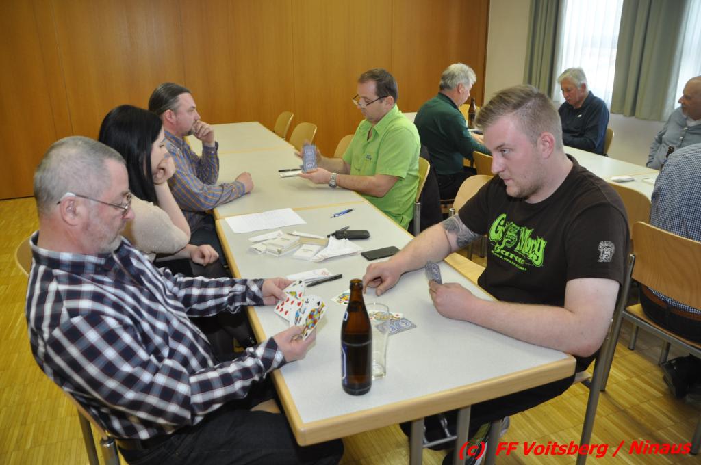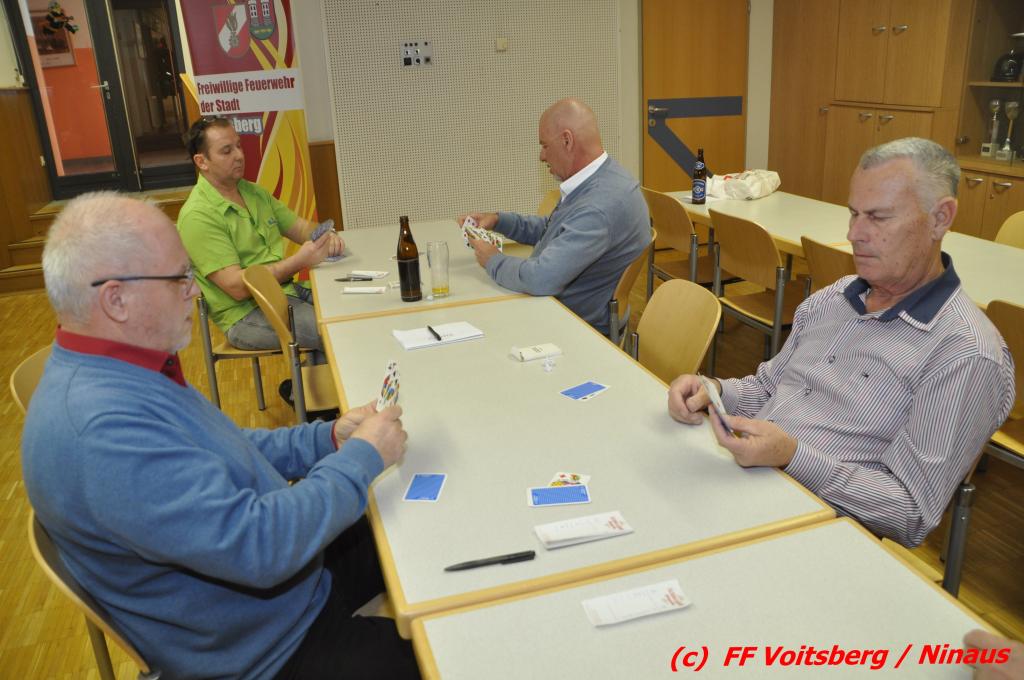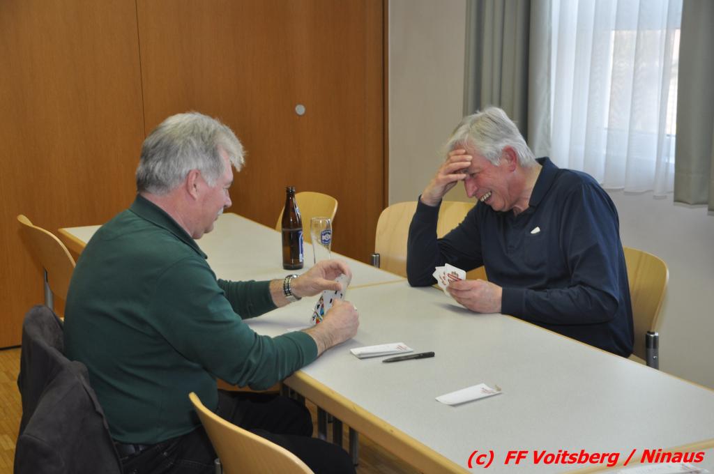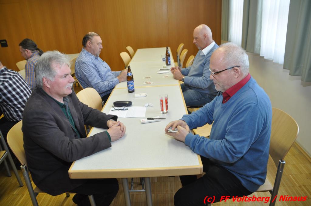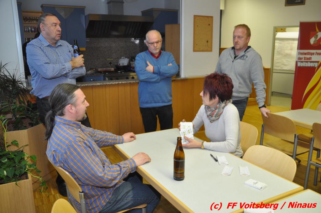 VOITSBERG, am 19.03.2016 Das bereits zur Tradition gewordene Osterschinkenschnapsen für die KameradInnen der Stadtfeuerwehr Voitsberg fand im Schulungsraum des Rüsthauses Voitsberg am 19.3.2016 statt. Die Begrüßung und Eröffnung wurde vom Verantwortlichen für die Kameradschaftspflege BI Karlheinz Buchegger vorgenommen. 13 Kameraden und 2 Kameradinnen stellten bei diesem kameradschaftlichen Wettspiel ihr Können unter Beweis. Für den einen lief es besser, für den anderen wieder nicht so gut, aber eines war wichtig, Kameradschaft und Spaß müssen an erster Stelle stehen. So war es auch, aber die Kameraden staunten nicht schlecht, als am Schluss eine Kameradin ganz oben stand. Waltraud Veigl, Mitorganisatorin und "Mädchen für alles" trotzte den Männern und ging als überraschende Siegerin hervor. Im Finale bezwang sie den Zweitplatzierten Rudolf Deutschmann und den Drittplatzierten Reinhard Graller am Siegertisch. Die weiteren Platzierungen: 4. Günter Höller 5. Rudolf Gargitter 6. Josef Reinisch 7. Gerhard Veigl 8. Alfons Tappauf 9. Klaus Gehr 10. Rene Sorger 11. Stefan Veigl 12. Karlheinz Buchegger 13. Walter Ninaus 14. Eva-Maria Flanschger 15. Richard Waidacher. Die Siegerehrung wurde von Bereichsfeuerwehrkommandanten LFR Engelbert Huber und dem Wehrkommandanten HBI Ing. Klaus Gehr vorgenommen. Dank für die Vorbereitung und Durchführung gilt neben der bereits erwähnten Waltraud Veigl dem Spielleiter Rudolf Gargitter auszusprechen. Besonderer Dank auch dem Fleischwarenfachgeschäft Reiner am Voitsberger Hauptplatz für die Warenspende. Abschließend wurden alle zu einer kleine Jause seitens der FF Voitsberg eingeladen.