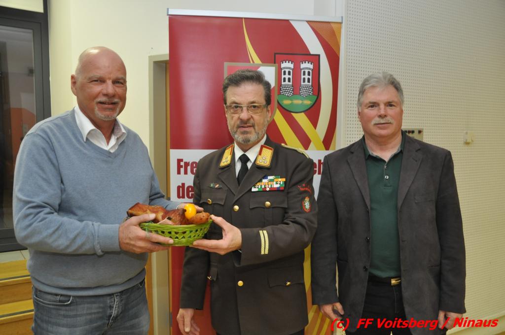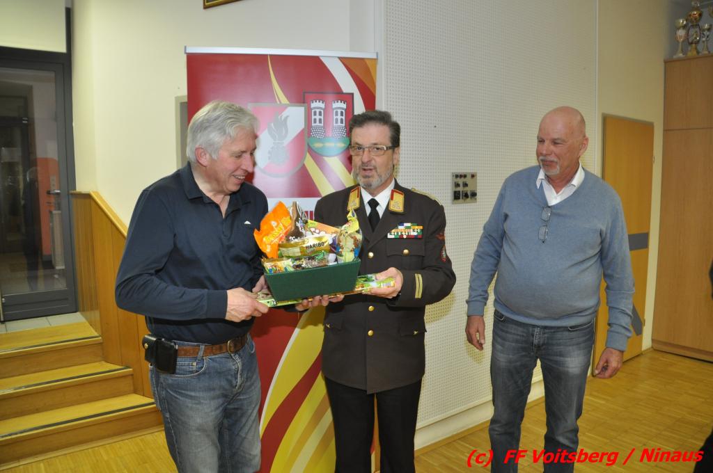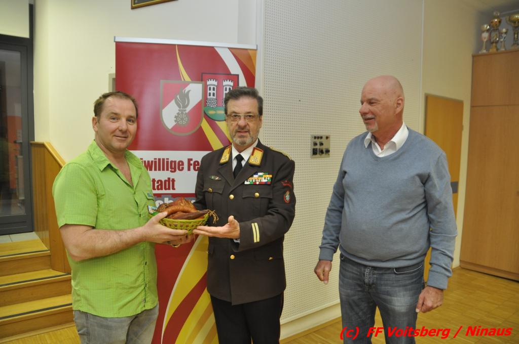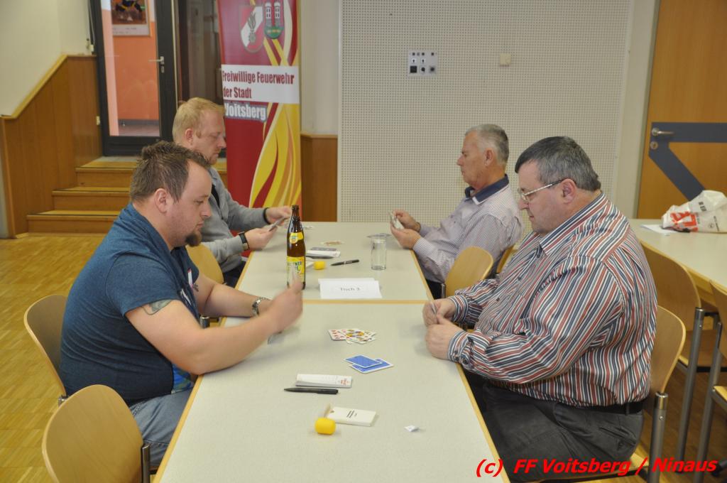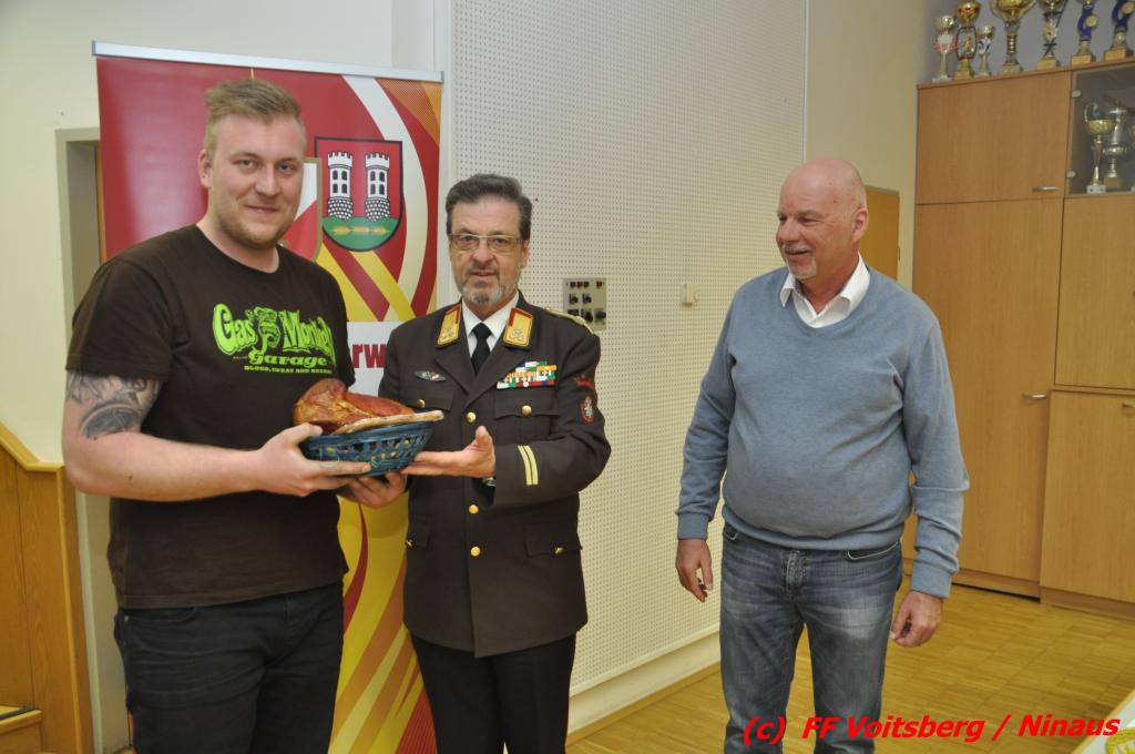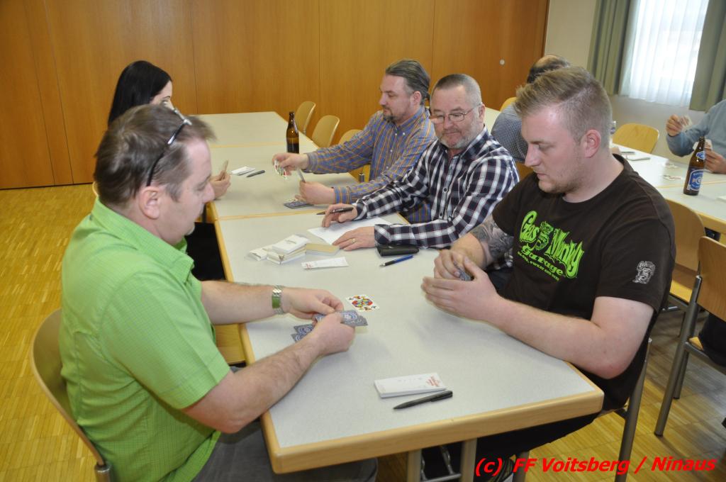 VOITSBERG, am 19.03.2016 Das bereits zur Tradition gewordene Osterschinkenschnapsen für die KameradInnen der Stadtfeuerwehr Voitsberg fand im Schulungsraum des Rüsthauses Voitsberg am 19.3.2016 statt. Die Begrüßung und Eröffnung wurde vom Verantwortlichen für die Kameradschaftspflege BI Karlheinz Buchegger vorgenommen. 13 Kameraden und 2 Kameradinnen stellten bei diesem kameradschaftlichen Wettspiel ihr Können unter Beweis. Für den einen lief es besser, für den anderen wieder nicht so gut, aber eines war wichtig, Kameradschaft und Spaß müssen an erster Stelle stehen. So war es auch, aber die Kameraden staunten nicht schlecht, als am Schluss eine Kameradin ganz oben stand. Waltraud Veigl, Mitorganisatorin und "Mädchen für alles" trotzte den Männern und ging als überraschende Siegerin hervor. Im Finale bezwang sie den Zweitplatzierten Rudolf Deutschmann und den Drittplatzierten Reinhard Graller am Siegertisch. Die weiteren Platzierungen: 4. Günter Höller 5. Rudolf Gargitter 6. Josef Reinisch 7. Gerhard Veigl 8. Alfons Tappauf 9. Klaus Gehr 10. Rene Sorger 11. Stefan Veigl 12. Karlheinz Buchegger 13. Walter Ninaus 14. Eva-Maria Flanschger 15. Richard Waidacher. Die Siegerehrung wurde von Bereichsfeuerwehrkommandanten LFR Engelbert Huber und dem Wehrkommandanten HBI Ing. Klaus Gehr vorgenommen. Dank für die Vorbereitung und Durchführung gilt neben der bereits erwähnten Waltraud Veigl dem Spielleiter Rudolf Gargitter auszusprechen. Besonderer Dank auch dem Fleischwarenfachgeschäft Reiner am Voitsberger Hauptplatz für die Warenspende. Abschließend wurden alle zu einer kleine Jause seitens der FF Voitsberg eingeladen.