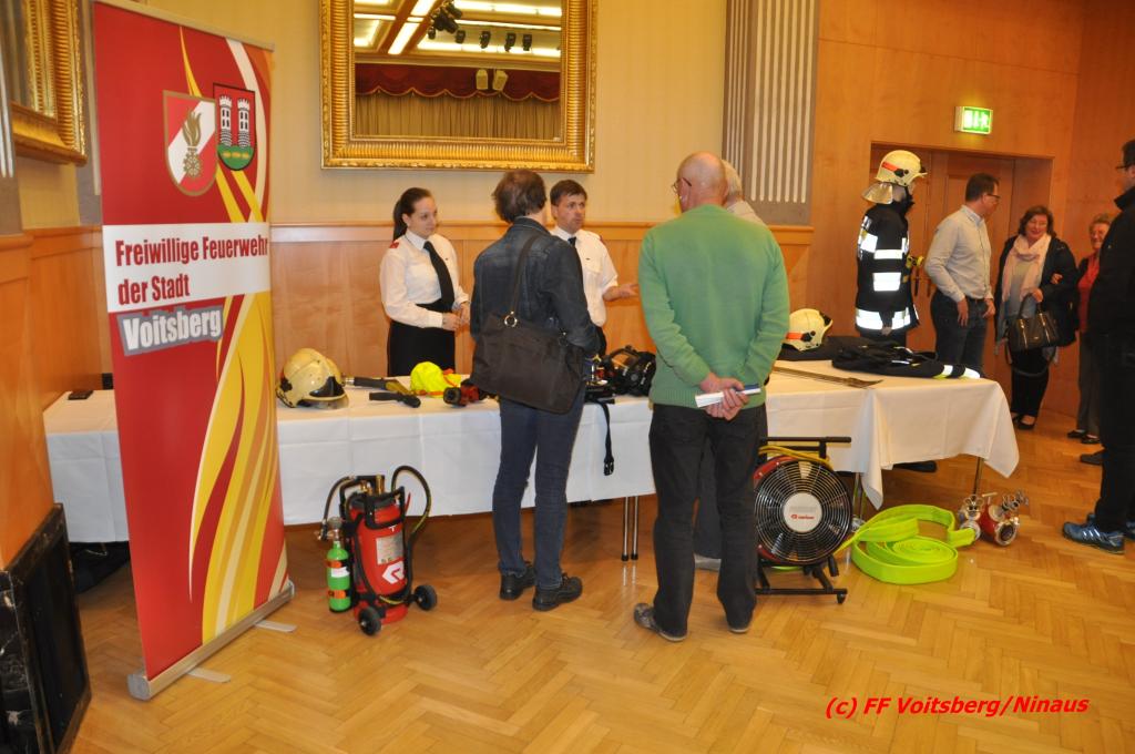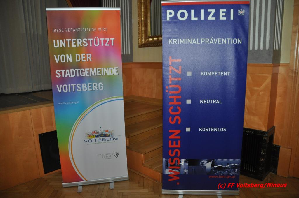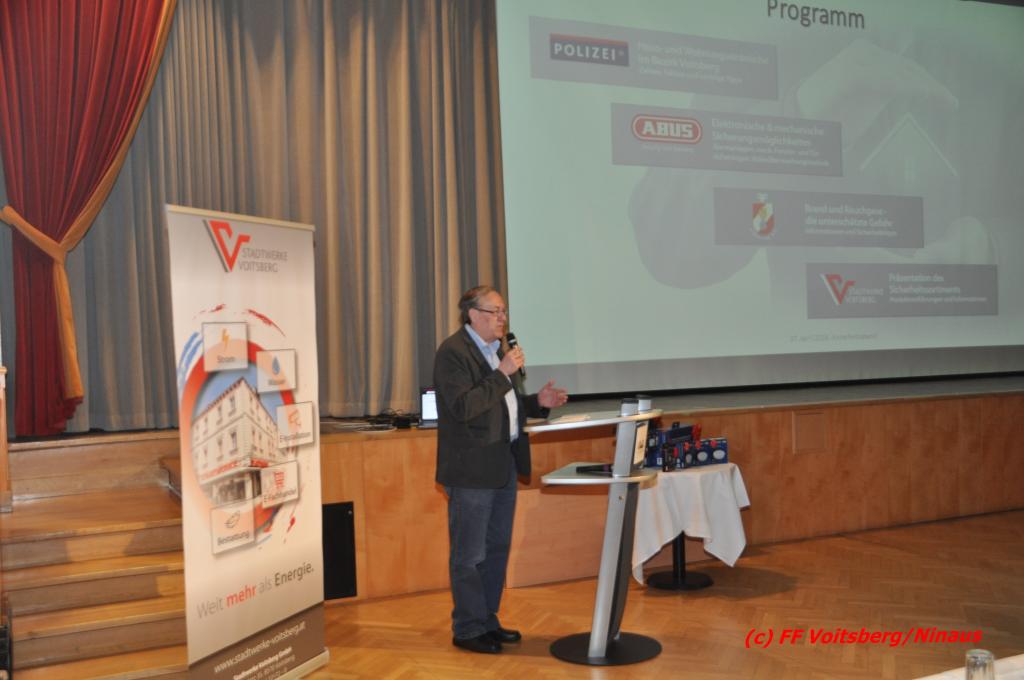VOITSBERG, am 07.04.2016 An einem Sicherheitsabend der Stadtwerke Voitsberg in den Stadtsälen beteiligten sich die Polizei, eine Fachfirma und die FF Voitsberg. Nach der Begrüßung durch den Bürgermeister Ernst Meixner und Direktor Ing. Werner Schmuck von den Stadtwerken Voitsberg folgten Vorträge von Beamten der Polizei und der Fachfirma ABUS über Einbrüche, Alarmanlagen, vorbeugende Maßnahmen und Verhalten bei Einbrüchen.