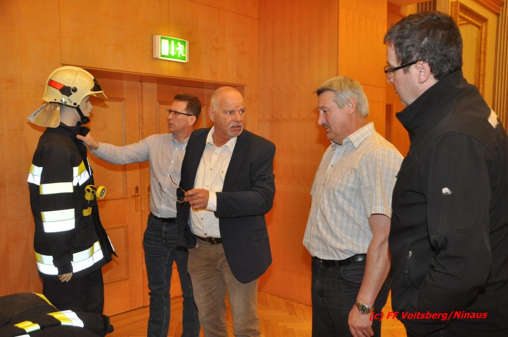 Die FF Voitsberg mit OBI Michael Münzer und FM Victoria Fink führte in einer kleinen Ausstellung die Schutzkleidung vor, erklärte den Interessierten die Wärmebildkamera und beantwortete die vielen Fragen.