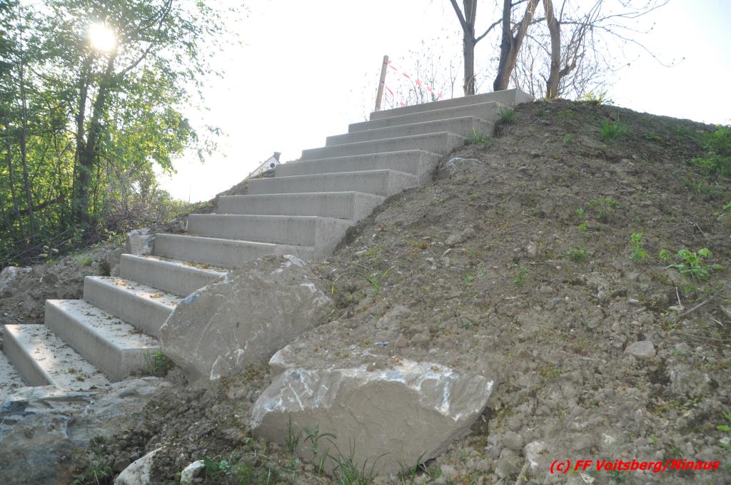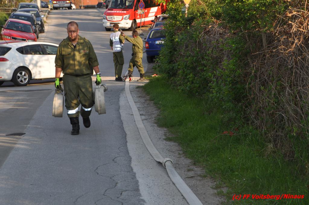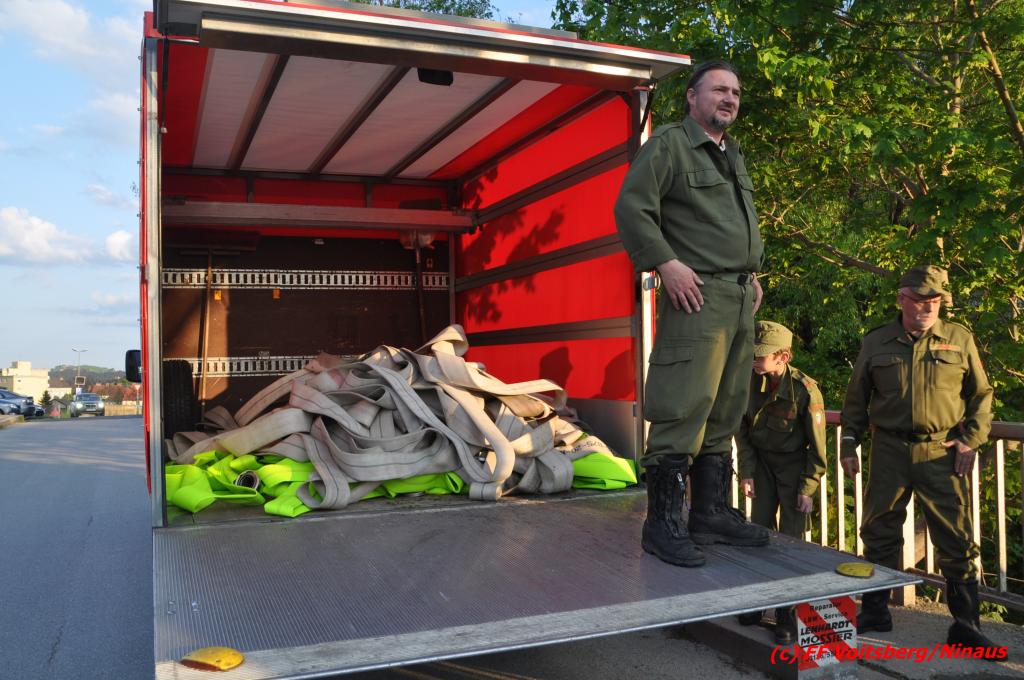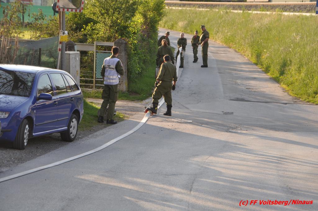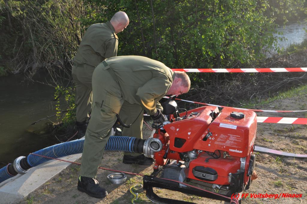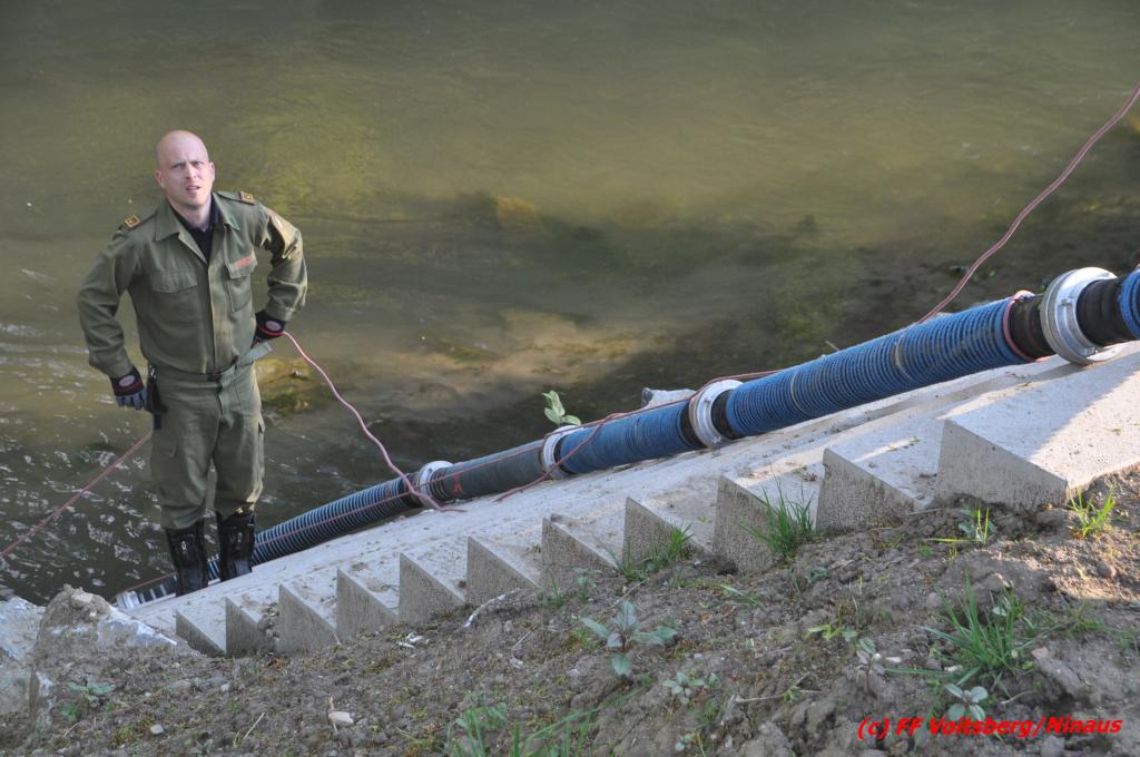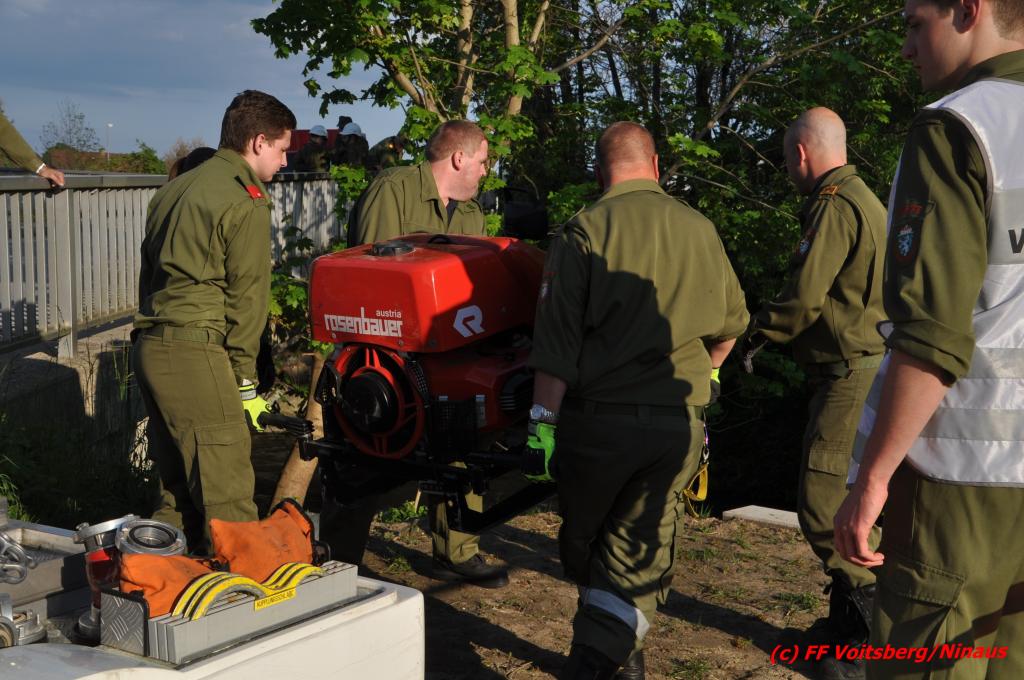 VOITSBERG, am 09.05.2016 Die Bevölkerung wird sich fragen, warum entlang der Kainach im Gemeindegebiet von Voitsberg insgesamt 11 Stiegen angebracht wurden. Die Erklärung besteht darin, dass diese im Zuge des Ausbaues des Hochwasserschutzes zum Verlegen der Saugschläuche von den Tragkraftspritzen bei Feuerwehreinsätzen angelegt wurden, um Wasser zur Brandbekämpfung aus der Kainach zu pumpen. Erstmals wurde eine Übung bei solch einer Saugstelle unter dem Schloss Greißenegg mit der Annahme eines Brandes beim alten Bauhof in der Rottenbachergasse. Das Aggregat wurde an oberster Stelle der Stiege abgestellt und insgesamt 6 Saugschläuche angelegt. Es wurde sodann eine 300 Meter lange Zubringleitung zum vermeintlichen Brandobjekt gelegt und mit dem aus der Kainach gepumpten Wasser das neue HLF 3 - Tunnel mit Wasser versorgt. Es wurde seitens des HBI Ing. Klaus Gehr und OBI Michael Münzer feuerwehrtaktisch der Brandangriff erläutert. Diese Saugstelle hat sich bestens bewährt. Nach der Nachbesprechung wurde vom Übungsleiter OLM d. F. Alexander Wallner, welchem zur erfolgreichen Absolvierung des Einsatzleiterlehrganges gratuliert wurde, das Übungsende befohlen.