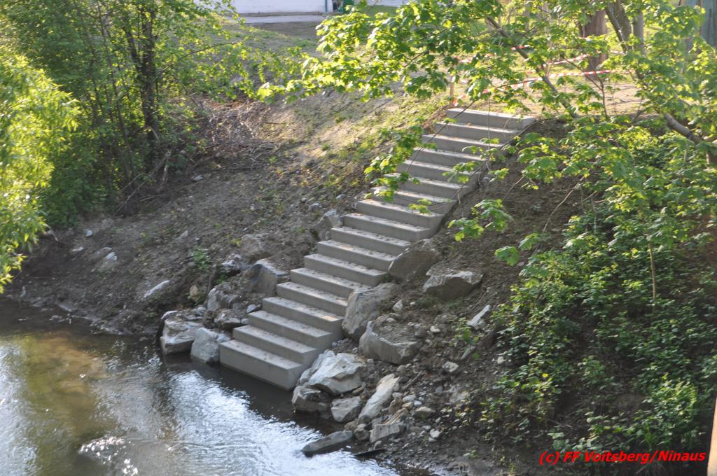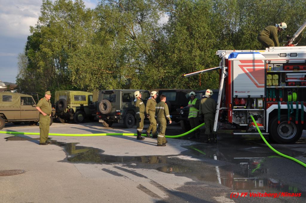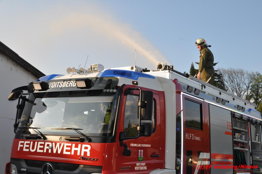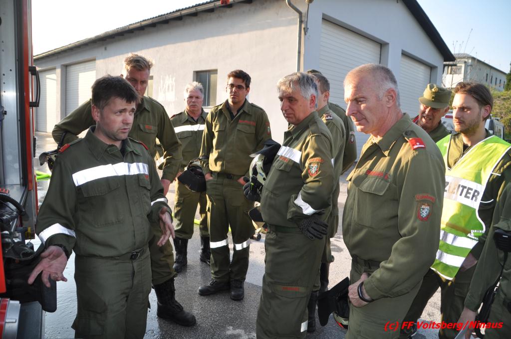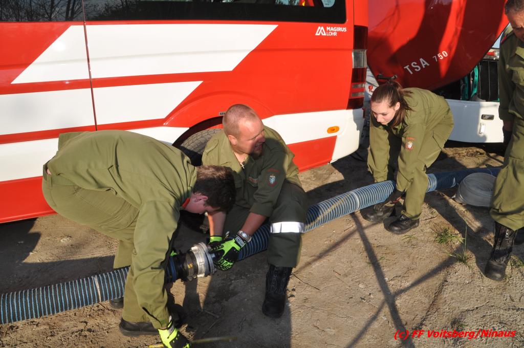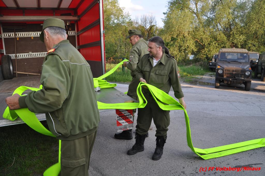 VOITSBERG, am 09.05.2016 Die Bevölkerung wird sich fragen, warum entlang der Kainach im Gemeindegebiet von Voitsberg insgesamt 11 Stiegen angebracht wurden. Die Erklärung besteht darin, dass diese im Zuge des Ausbaues des Hochwasserschutzes zum Verlegen der Saugschläuche von den Tragkraftspritzen bei Feuerwehreinsätzen angelegt wurden, um Wasser zur Brandbekämpfung aus der Kainach zu pumpen. Erstmals wurde eine Übung bei solch einer Saugstelle unter dem Schloss Greißenegg mit der Annahme eines Brandes beim alten Bauhof in der Rottenbachergasse. Das Aggregat wurde an oberster Stelle der Stiege abgestellt und insgesamt 6 Saugschläuche angelegt. Es wurde sodann eine 300 Meter lange Zubringleitung zum vermeintlichen Brandobjekt gelegt und mit dem aus der Kainach gepumpten Wasser das neue HLF 3 - Tunnel mit Wasser versorgt. Es wurde seitens des HBI Ing. Klaus Gehr und OBI Michael Münzer feuerwehrtaktisch der Brandangriff erläutert. Diese Saugstelle hat sich bestens bewährt. Nach der Nachbesprechung wurde vom Übungsleiter OLM d. F. Alexander Wallner, welchem zur erfolgreichen Absolvierung des Einsatzleiterlehrganges gratuliert wurde, das Übungsende befohlen.