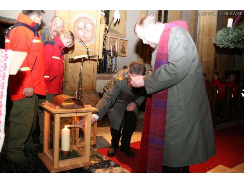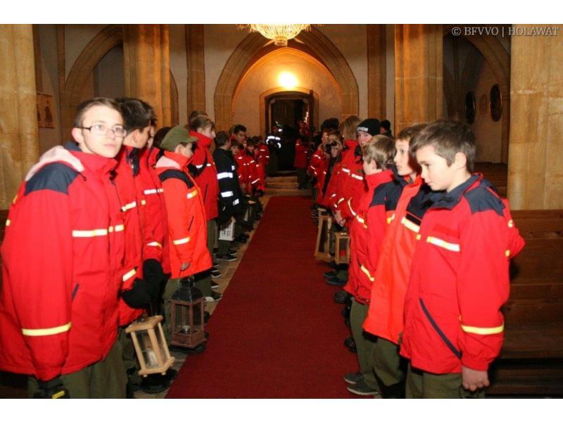 VOITSBERG, am 22.12.2013 Eine Abordnung Jugendlicher mit ihren Betreuern übernahm in einem feierlichen Rahmen in der Pfarrkirche Hirschegg das Friedenslicht aus Bethlehem