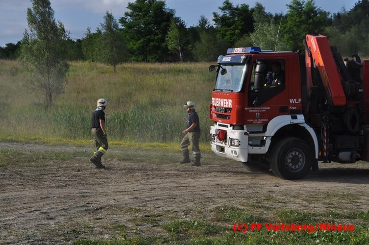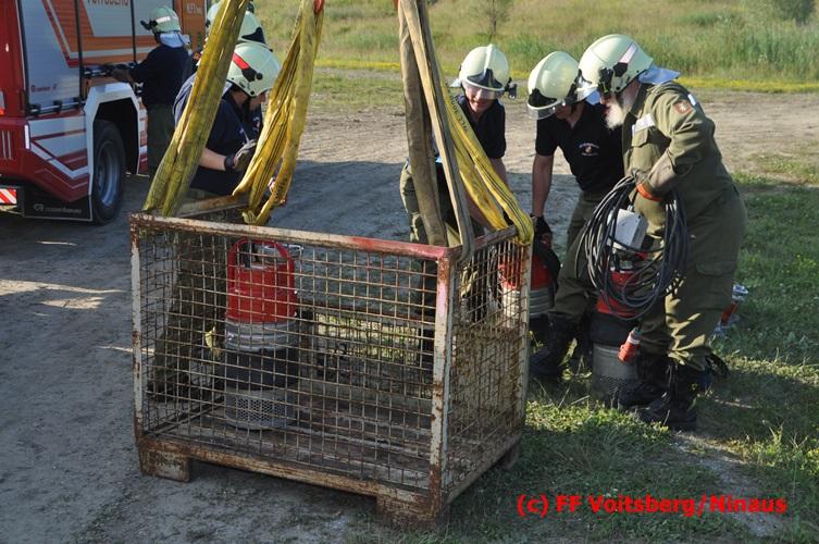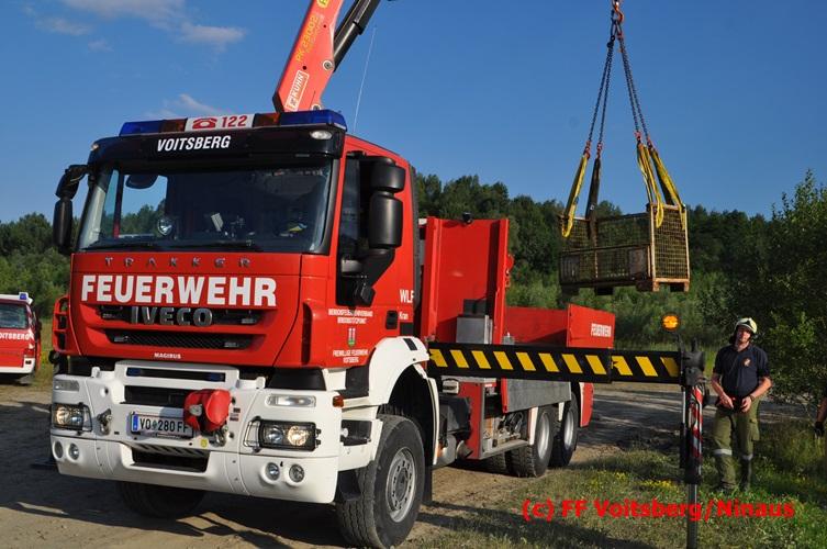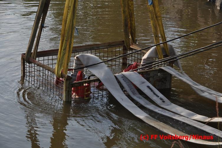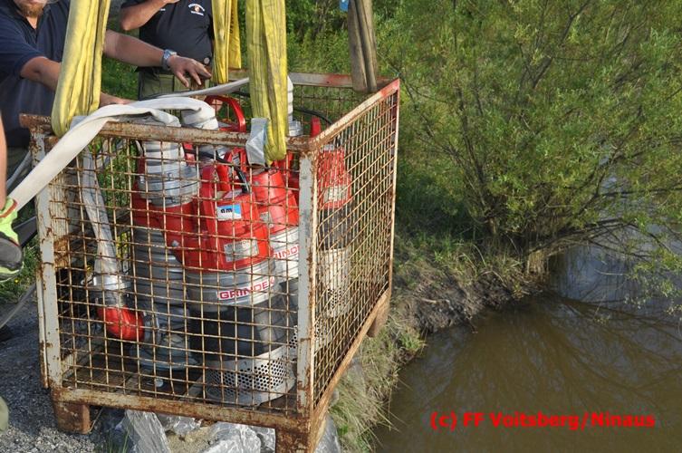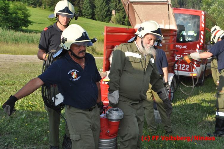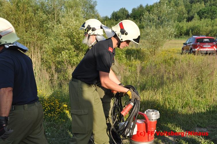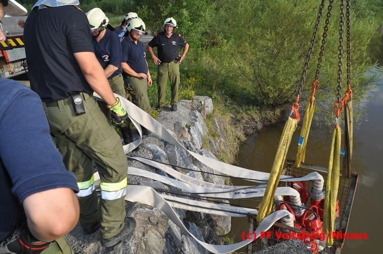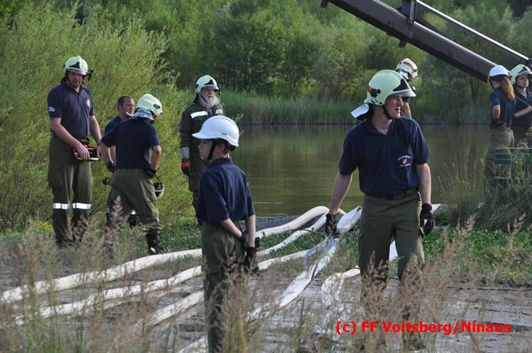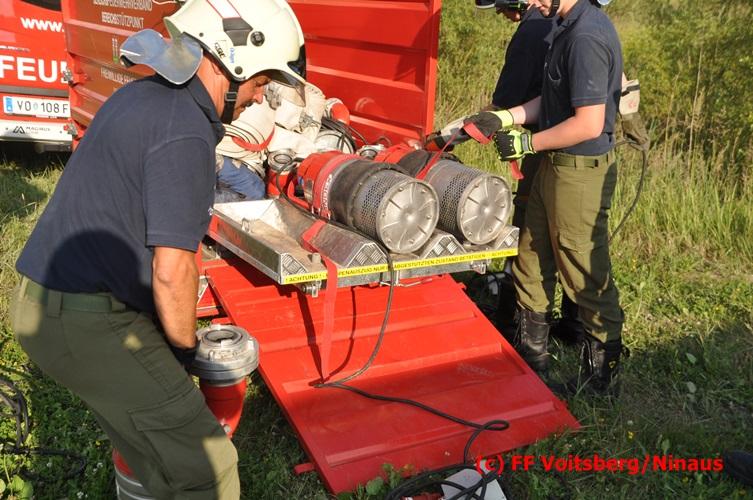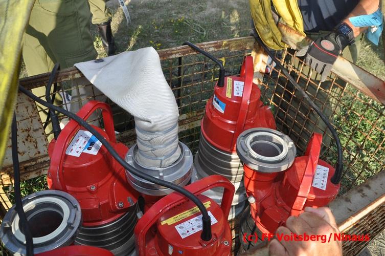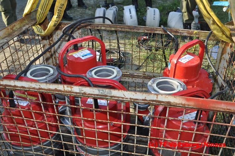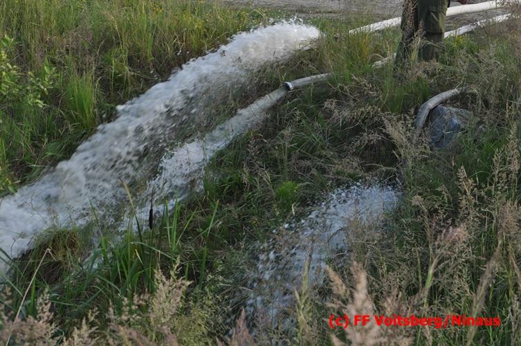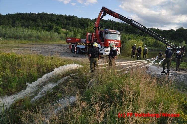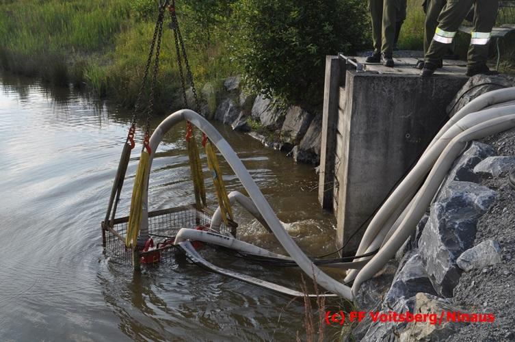 VOITSBERG, am 04.07.2016 Im ehemaligen Tagbaugelände Zangtal fand eine Übung mit dem Stromgenerator und Hochleistungs-Tauchpumpen statt. Als Auffrischung bereiteten HBI Ing. Klaus Gehr und LM d. F. Harald Kremaucz diese Übung vor, um in der bevorstehenden Gewitterzeit gerüstet zu sein. Mit den 5 Hochleistungspumpen wurden in 10 min ca. 100.000 Liter Wasser mit einer Energieleistung von 43 KV umgepumpt. Diese Pumpen haben bereits u.a. bei größeren Einsätzen (Oberndorf/Salzburg, Bahnhof Voitsberg) ihre Leistung bewiesen.
