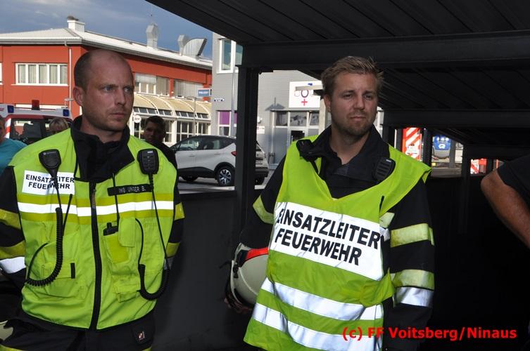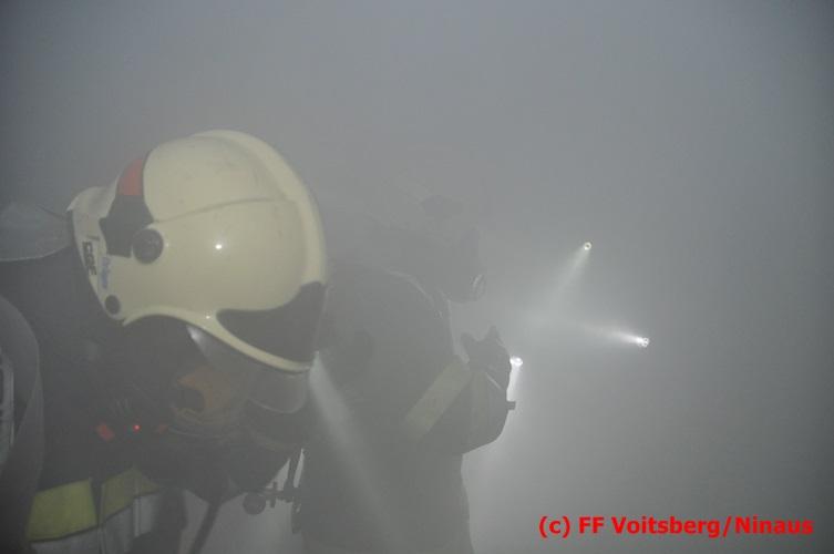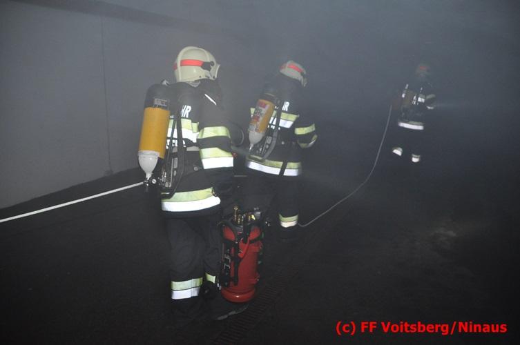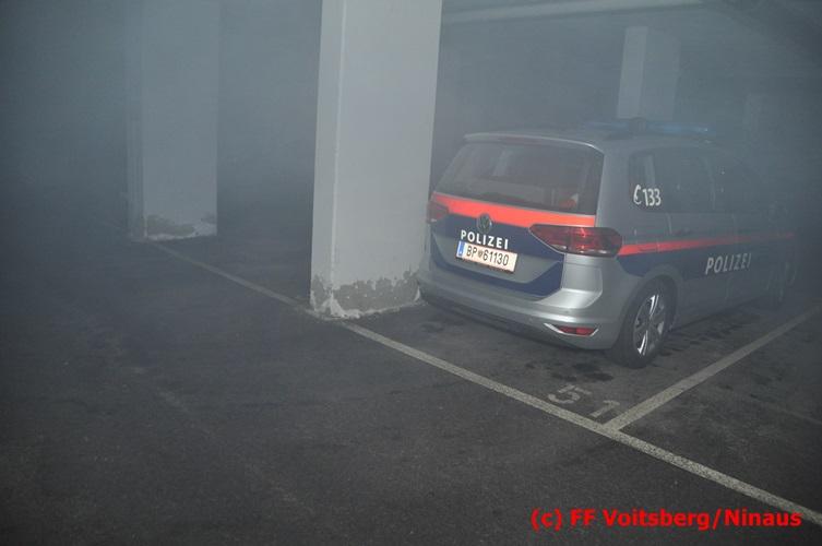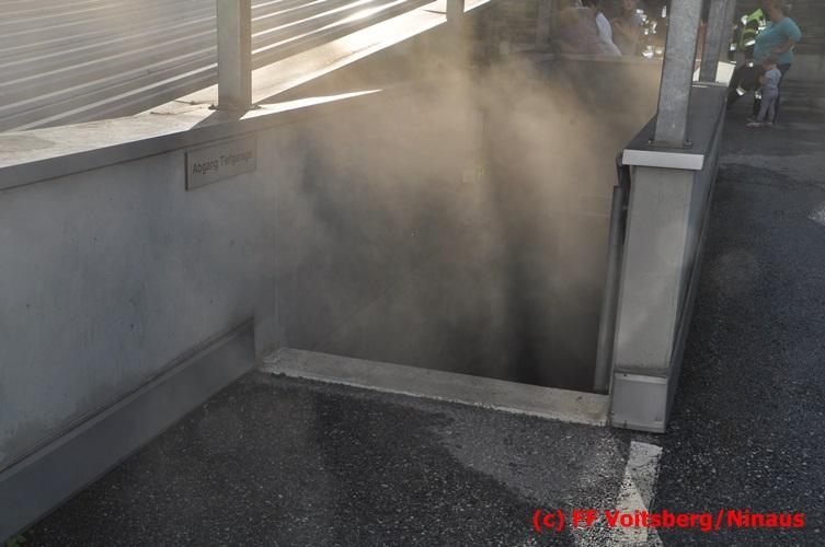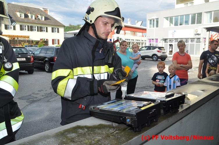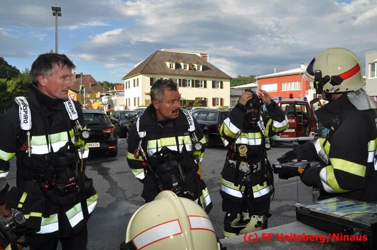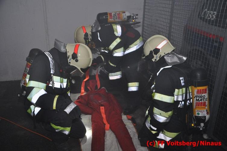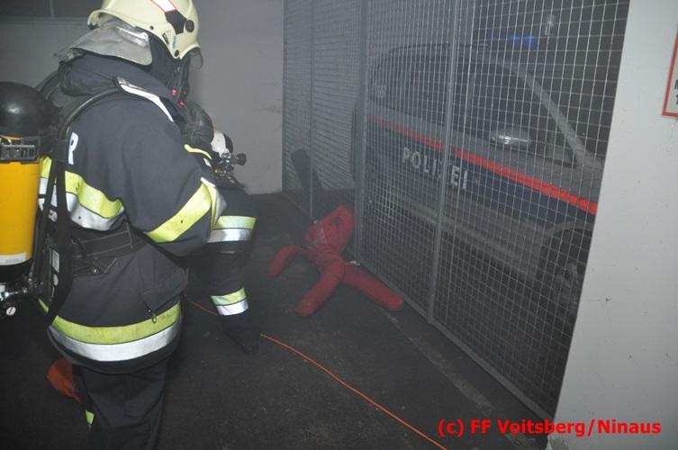 VOITSBERG, am 18.07.2016 Übungsannahme war ein Fahrzeugbrand in der Tiefgarage des EKZ Polizei, wobei eine Person als abgängig gemeldet wurde. Zwei Atemschutztrupps begaben sich in die stark verrauchte Tiefgarage, in der es auf Grund des Brandes keinen Strom, und somit auch kein Licht gab. Unter erschwerten Bedingungen begannen die Trupps mit der Personensuche, welche erfolgreich abgeschlossen werden konnte. Erstmals wurde bei dieser Übung der Funk in den Atemschutzmasken im "Einsatzfalle" erprobt, welcher sich sehr bewährt hat. Nach der Freimachen der verrauchten Garage mittels zwei Drucklüftern fand Vorort eine Übungsnachbesprechung statt. Bei dieser wurden einige Mängel seitens der brandschutztechnischen Ausstattung der Tiefgarage besprochen. Nach Möglichkeit soll nochmals eine solche Übung mit mehr Feuerwehren im heurigen Jahr abgehalten werden. Die Übungsleiter BI d. F. Ing. Bernd Unger und LM d. F. Harald Kremaucz bedankten sich bei der Mannschaft für deren Einsatz.