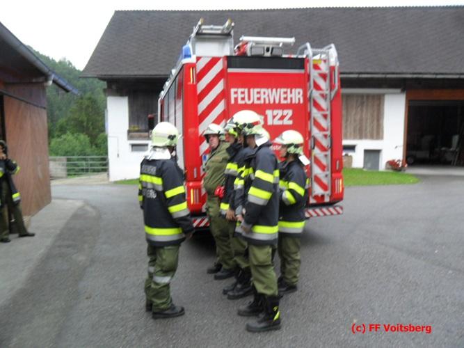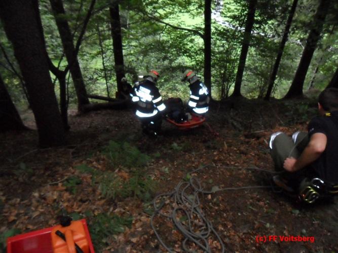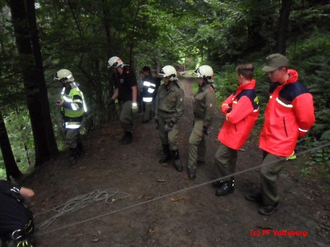 VOITSBERG, am 01.08.2016 Zwei Übungsszenarien wurden vorbereitet. Eine abgestürzte Person wurde mit MRAS-Technik aus einem Wald gerettet und in einem verrauchten Wirtschaftsgebäude gab es eine vermisste Person, welche unter Verwendung von schwerem Atemschutz ebenfalls gerettet wurde. Abschließend wurden alle von den Besitzern des Anwesens, der Familie Christof, zu einer Jause eingeladen, wofür als kleines Dankeschön ein Blumenstrauß überreicht wurde.