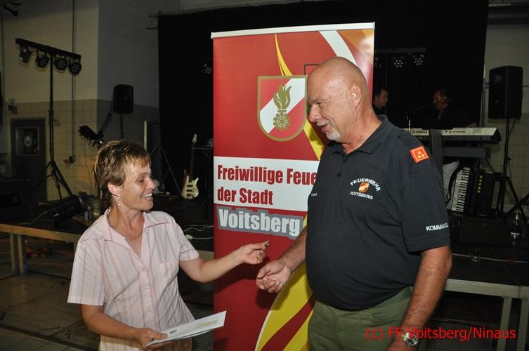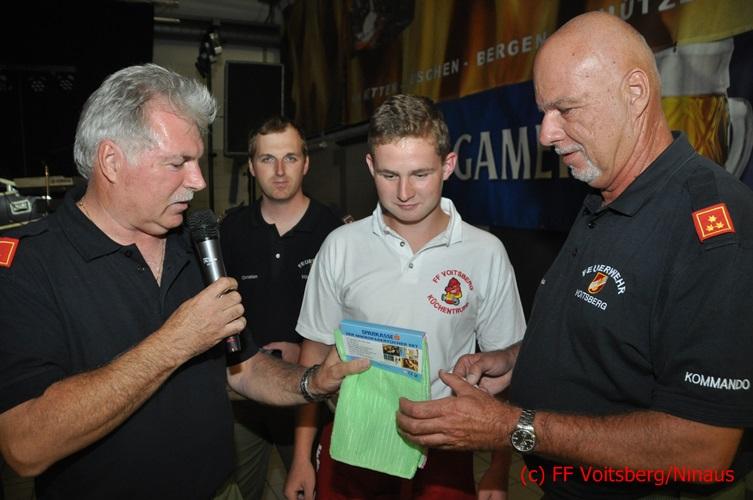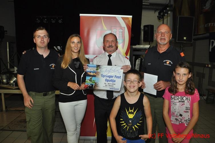 VOITSBERG, am 27.08.2016 Ehe die Eröffnung des Sommerfestes durch HBI Ing. Klaus Gehr erfolgte wurden die Preise des Schätzspieles durch den Wehrkommandanten und des Verantwortlichen LM d. F. Christian Buchegger an die Gewinner überreicht. Die Gruppe Carusell spielte dann bis in die frühen Morgenstunden aus ihrem Programm und konnte bei herrlichem Wetter die in und vor der Festhalle zahlreich erschienenen Festgäste eine gute Stimmung vermitteln. An dieser Stelle möchte sich die FF Voitsberg bei den Spendern dieser Preise und vor allem bei den Besuchern für ihr Kommen herzlich bedanken.