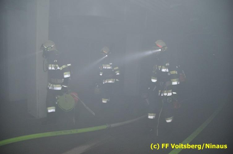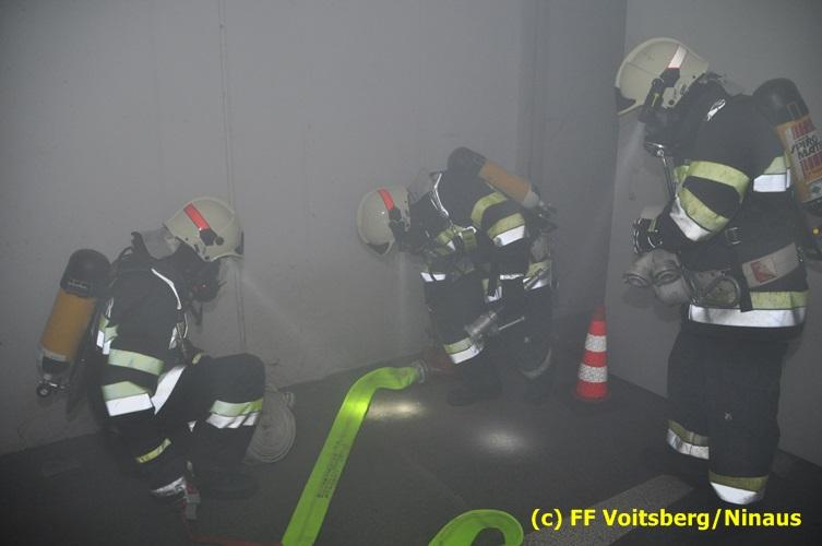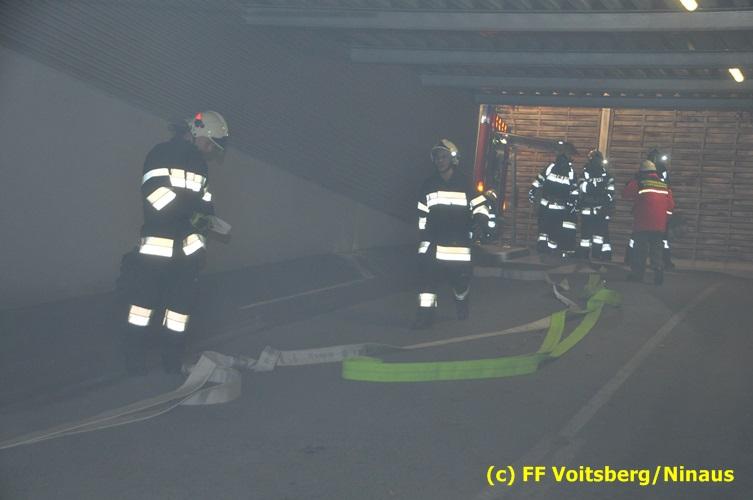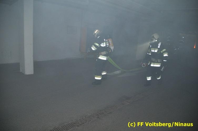VOITSBERG, am 24.10.2016 Ein PKW-Brand in der Tiefgarage des EKZ-Polizei am Dr. Hubert-Kravcar-Platz war die Übungsannahme an dieser Einsatzübung mit den Feuerwehren Voitsberg, Krems, Bärnbach und Rosental. Nachdem die Brandmeldeanlage den Brand an die Bezirksleitzentrale Florian Voitsberg meldete, wurde die FF Voitsberg zum Brandobjekt beordert. Nach Erkundung durch den Einsatzleiter stellte dieser Fest, dass in der Tiefgarage ein Fahrzeug in Brand steht und schickte zwei Trupps zum Brandobjekt vor. Als Unterstützung wurden die Nachbarwehren nachalarmiert, welche die Trupps der FF Voitsberg ablösten und den Brand unter Verwendung von zwei Druckleitungen und der Zubringleitung von einem Hydranten zu den Tanklöschfahrzeugen löschen konnten. Mit vier Drucklüftern wurden die Tiefgarage rauchfrei gemacht. Nach Kontrolle des Objektes konnte "Brand aus" gegeben werden. Bei einer abschließenden Besprechung der Einsatzleiter mit den Gruppenkommandanten und Atemschutzgeräteträgern wurde über Mängel und Verbesserungen diskutiert, was auch der Sinn einer Übung ist.