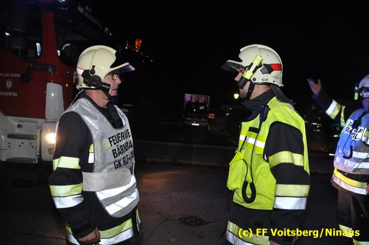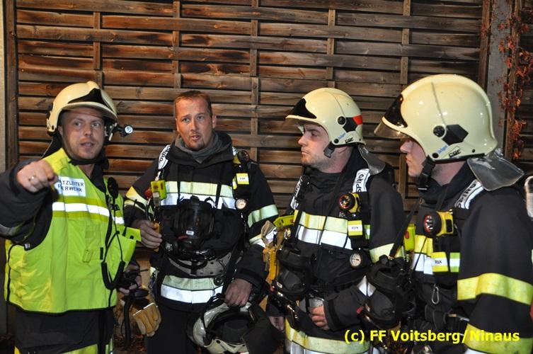 Nach der Versorgung der Gerätschaften bedankte sich der Wehrkommandant bei den Wehren für die Teilnahme und lud alle Übungsteilnehmer ins Rüsthaus Voitsberg zu einer Jause und einem Getränk ein.
