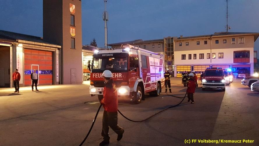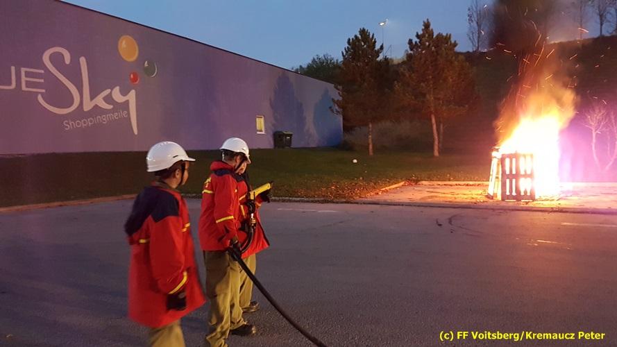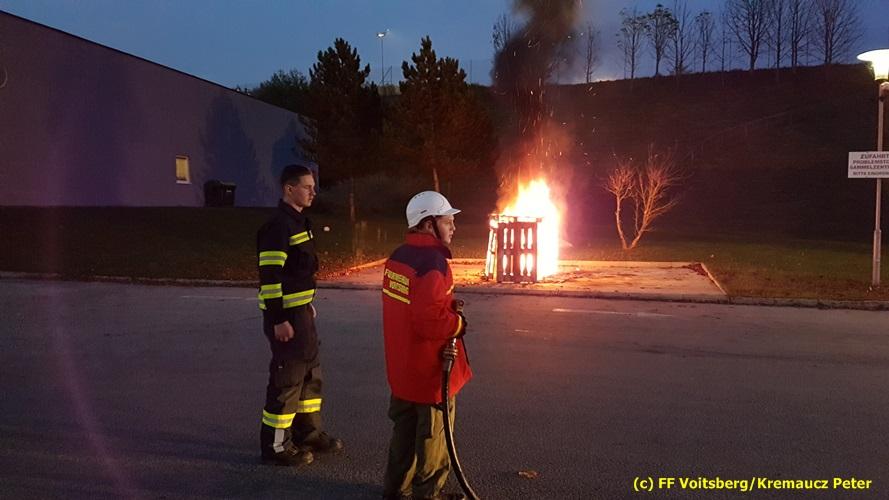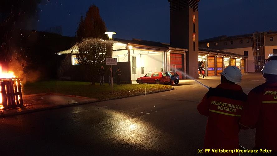 VOITSBERG, am 28.10.2016 Jugendliche der Feuerwehren Afling, Bärnbach, Rosental und Voitsberg trafen sich am Gelände der FF Voitsberg, um gemeinsam einen Holzstapelbrand zu löschen. Der Löschangriff erfolgte mit dem HLF 4 der FF Voitsberg mit einem HD-Rohr und zwei C-Rohren und konnte von den Jugendlichen erfolgreich abgeschlossen werden.