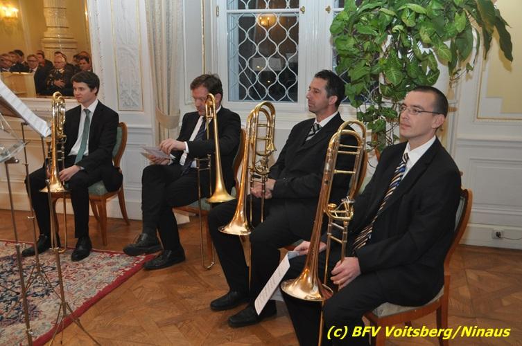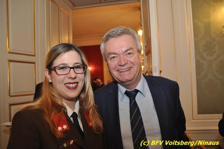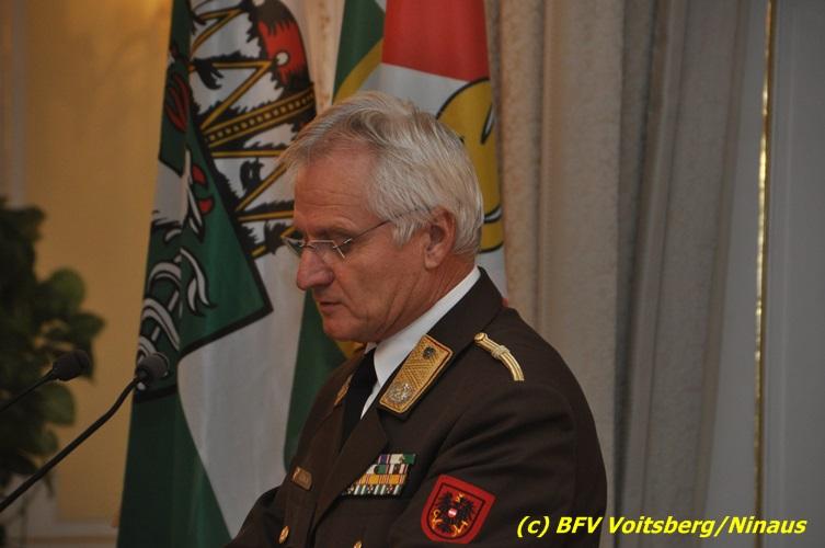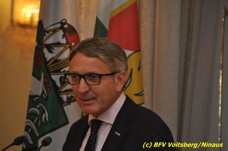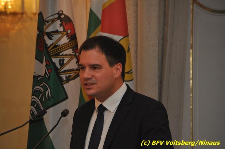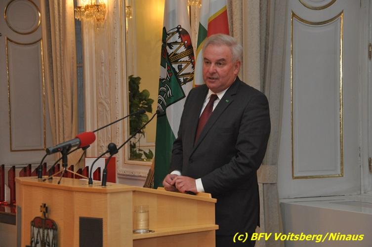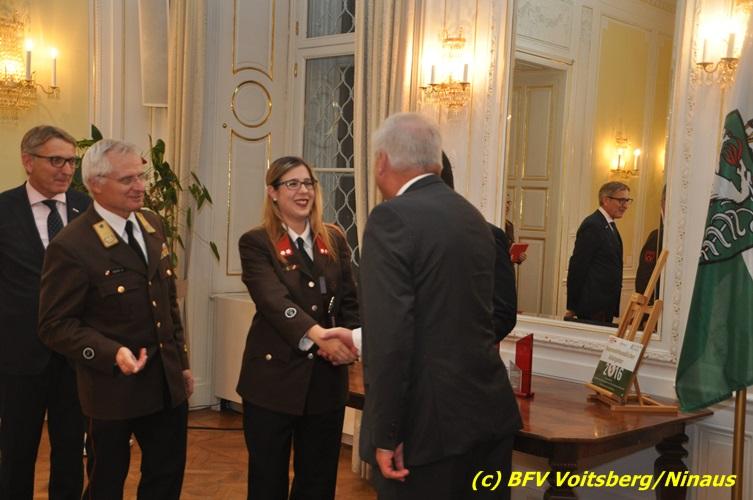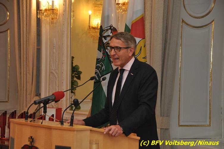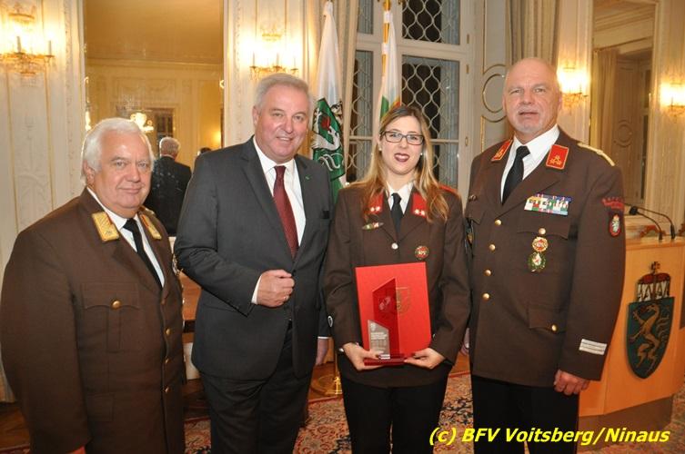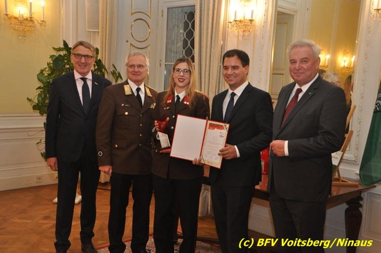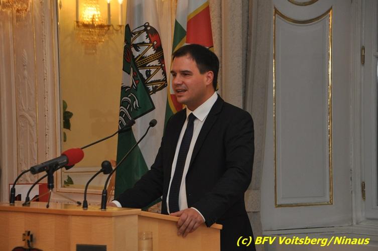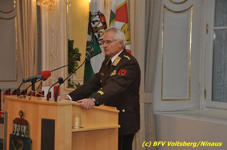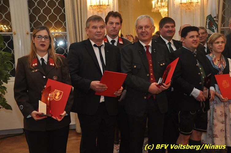 Der netten Feierstunde in der altehrwürdigen Grazer Burg wohnten HBI Ing. Klaus Gehr und HBM dV Walter Ninaus (für die FF Voitsberg), sowie BerFwKdt LFR Engelbert Huber, BR Christian Leitgeb und ABI Alfred Jauk bei.