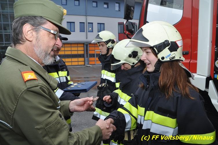 11 KameradInnen der Stadtfeuerwehr Voitsberg stellten sich in drei Durchgängen den Branddienstleistungsprüfungen in Gold, Silber und Bronze. Unter dem bewährten Bewerterteam um den Landesbewerbsleiter BR d. F. Johann Bretterklieber und den Bewertern BR Christian Leitgeb und OBI Robert Schleifer konnten alle drei Bewerbsdurchgänge in der erlaubten Zeit fehlerfrei abgeschlossen werden. Bewerbsleiter BR d. F. Johann Bretterklieber, Bürgermeister EHBI Ernst Meixner, Landesfeuerwehrrat Engelbert Huber und der Voitsberger Wehrkommandant HBI Ing. Klaus Gehr würdigten in ihren Grußadressen die Leistungen und gratulierten dazu.