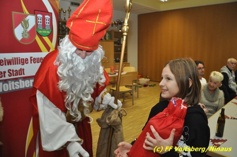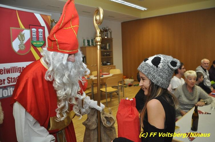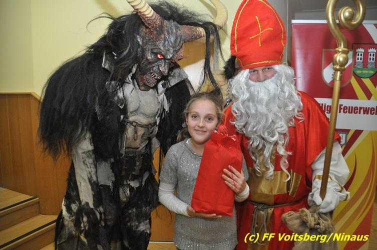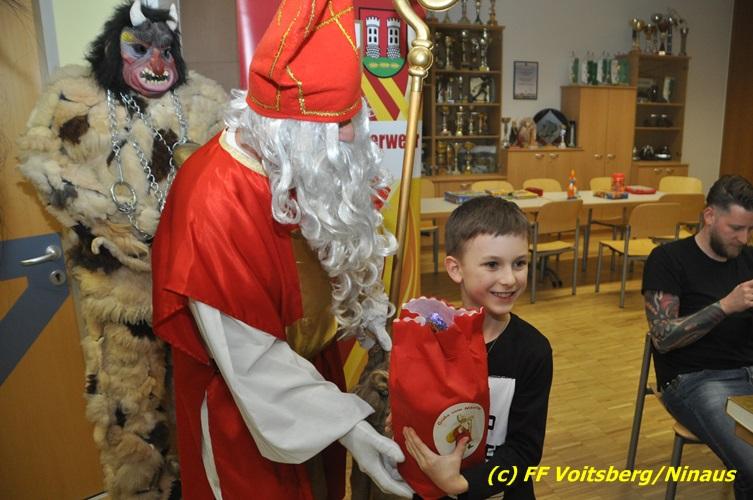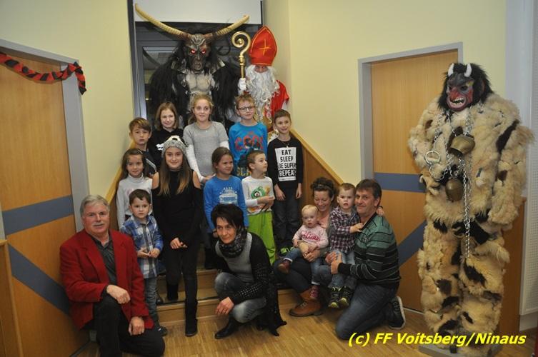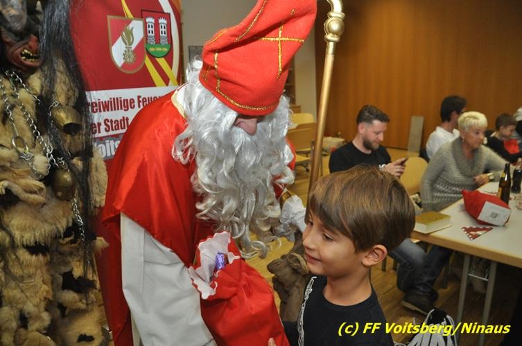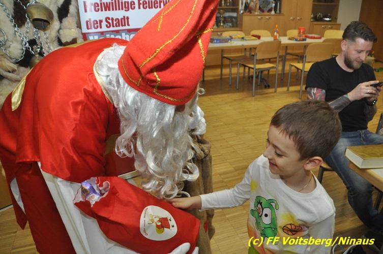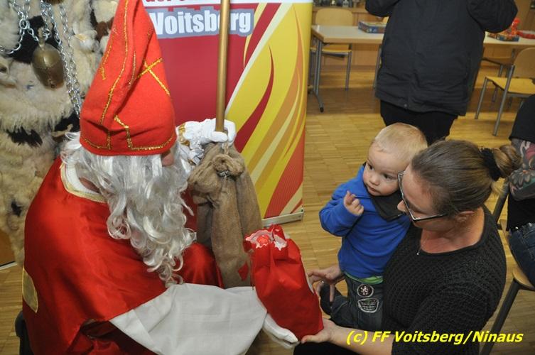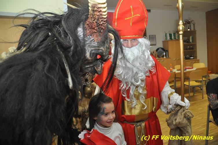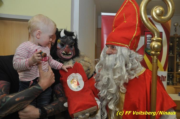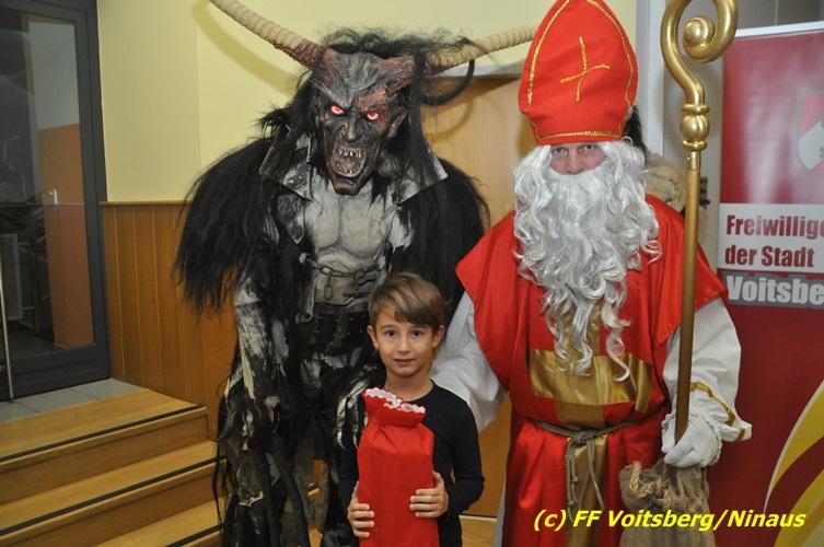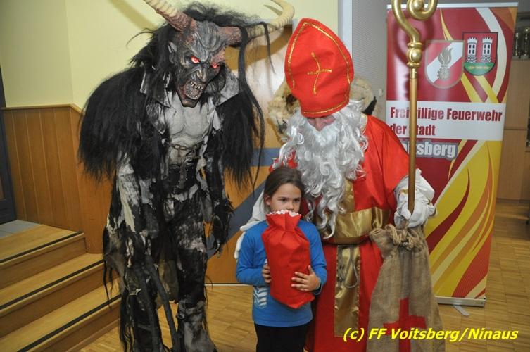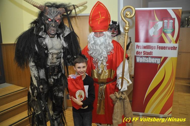 Auch heuer nahmen sich der Nikolaus und der Krampus Zeit, um bei den Jüngsten der Feuerwehrfamilie der FF Voitsberg im Rüsthaus vorbeizuschauen. Aufgrund der Tatsache, dass nur brave Kinder anwesend waren, brauchte der Krampus den Kindern keine Angst zu verbreiten. Gemeinsam mit dem Nikolaus wurden die Kinder bei funkelnden Augen mit einem Nikolaus-Sackerl beschenkt.
