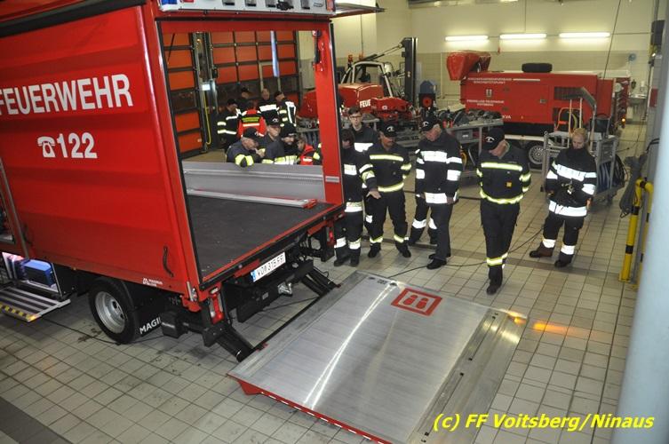 VOITSBERG, am 05.12.2016 Nach der Neuanschaffung eines LKWA für den in die Jahre gekommenen VF wurde der Mannschaft das neue Fahrzeug vorgestellt. OBI Michael Münzer und LM d. F. Harald Kremaucz zeigten den KameradInnen das neue Containersystem, mit welchem bei den einzelnen Einsätzen rasch und gezielt in Tätigkeit getreten werden kann. Weiter wurde Ausstattung und die technischen Einrichtigungen vorgeführt.