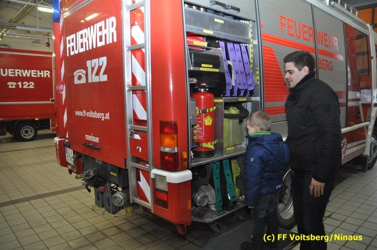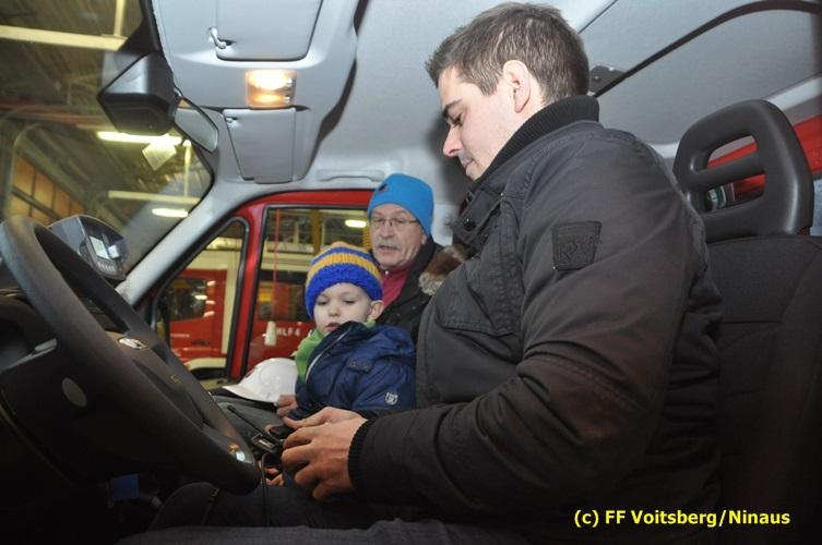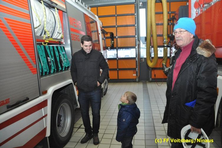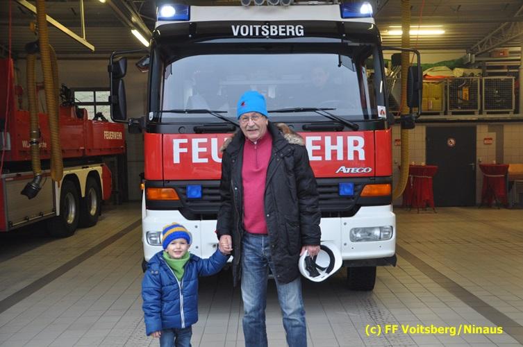 VOITSBERG, am 19.12.2016 Ein 3jähriger Bub hat bei einem Gewinnspiel gewonnen und den Wunsch geäußert, der FF Voitsberg einen Besuch abzustatten und mit einem Feuerwehrauto mitzufahren. Diesem Wunsch wurde dem kleinen Dobias erfüllt. Am Vorplatz des Rüsthauses wurden einige Runden im Beisein seines Opa mit dem HLF 4 gedreht, was dem Buben große Freude bereitete. Er stellte Fragen und war am Feuerwehrgeschehen sehr interessiert. Abschließend wurde er noch zu einem Kracherl eingeladen.