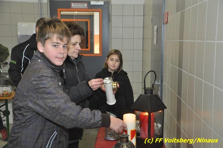 VOITSBERG, am 24.12.2016 Bereits traditionell ist die Ausgabe des Friedenslichtes der FF Voitsberg an die Bevölkerung und FeuerwehrkameradInnen. Eine große Anzahl an Personen nahm dieses Service wahr und übernahm das Friedenslicht aus Bethlehem, welches am Vortag im Schloss Piber übernommen wurde und von der Feuerwehrjugend nach Voitsberg überstellt wurde.