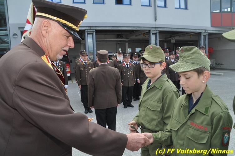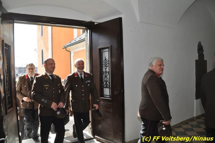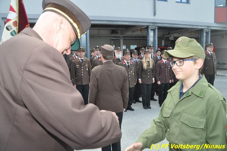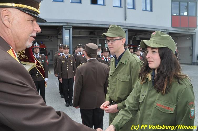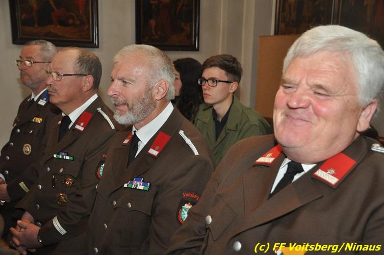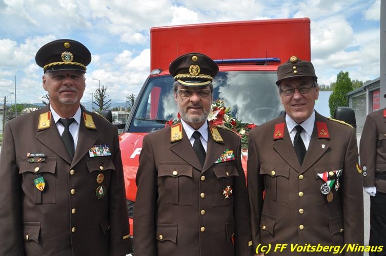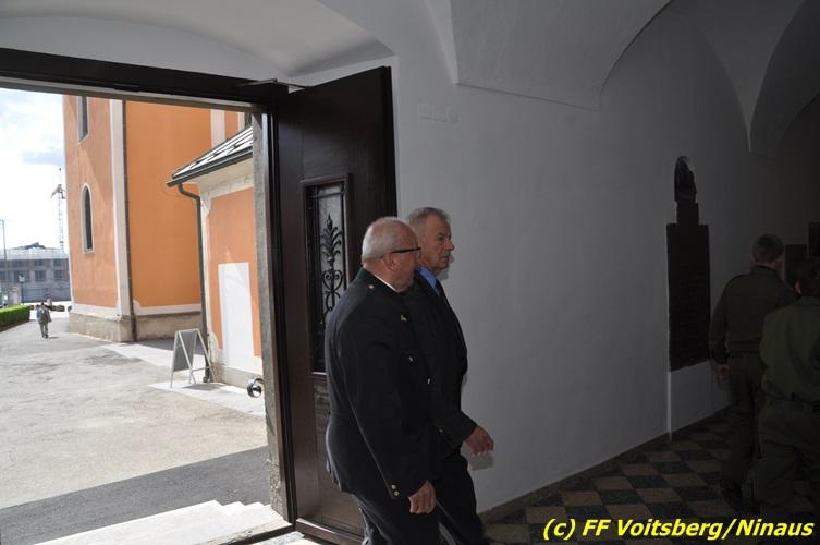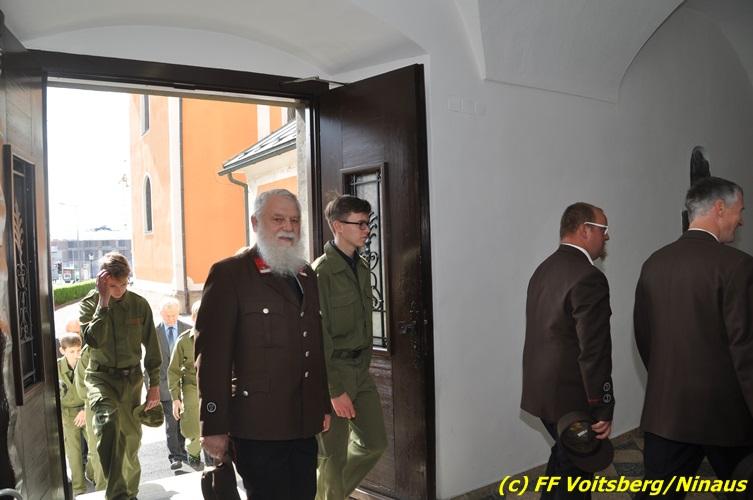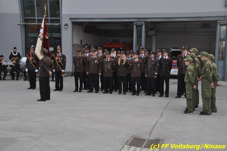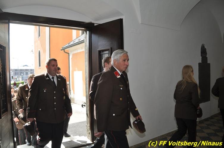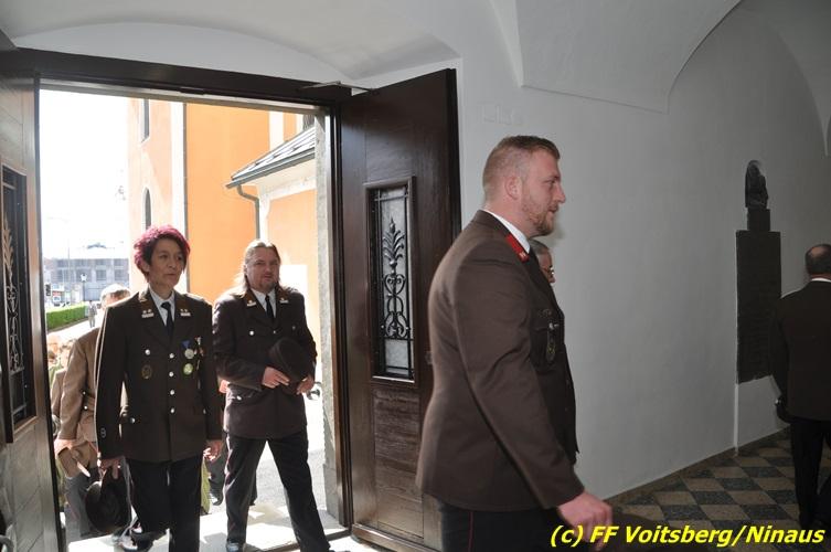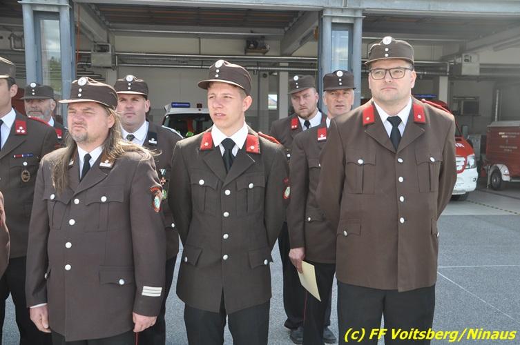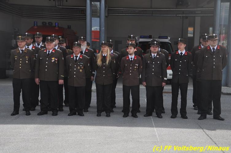 Traditionell begann der Festtag der Feuerwehren für die KameradInnen der Stadtfeuerwehr Voitsberg, dem Florianitag, mit einem Gottesdienst in der St. Josefskirche, zelebriert von Stadtpfarrer Dechant Mag. Gerald Krempl und musikalisch umrahmt von einem Bläserensemble der Bergkapelle Hödlgrube-Zangtal. Beim Rüsthaus erfolgte anschließend der auch schon traditionelle Frühjahrsrapport mit der Meldung an Bürgermeister Ernst Meixner. Wehrkommandant ABI Ing. Klaus Gehr konnte eingangs Stadtpfarrer Dechant Mag. Gerald Krempl, Bürgermeister EHBI Ernst Meixner, die Vizebürgermeister Kurt Christof und Walter Gaich, Stadtrat Markus Leinfellner, die Gemeinderäte Peter Hemmer, Manfred Prettenthaler und Alois Scherr, Chefinspektor Robert Zapfl von der PI Voitsberg, Bezirksstellenleiter des Zivilschutzverbandes Anton Schober, Franz Patz von den Amateurfunkern, Bereichsfeuerwehrkommandant Landesfeuerwehrrat Engelbert Huber, Abschnittsfeuerwehrkommandant ABI Alfred Jauk und die Ehrendienstgrade EABI Rudolf Gargitter und ELM Richard Waidacher begrüßen. In seinen Grußworten überbrachte Bürgermeister Ernst Meixner die Grüße des Gemeinderates und dankte den Mitgliedern der FF Voitsberg für ihren Einsatz zum Wohle der Voitsberger Bevölkerung und gratulierte zur perfekten Organisation des „Tages der Einsatzorganisationen“, welcher gestern beim Rüsthausgelände stattfand. Anschließend wurden der Probefeuerwehrmann David Acham und die Probefeuerwehrfrau Sarah Wintscher nach Verlesen der Gelobungsformel durch den Dechant per Handschlag mit dem Wehrkommandanten angelobt. Die Jungfeuerwehrmänner Jonathan Rapp, Marvin Wintscher, Diemo Acham und Philipp Schmelzer wurden mit Jugendstreifen befördert. David Acham, Sarah Wintscher und Katharina Gogg wurden zu Feuerwehrmänner/frauen befördert. Oberfeuerwehrmann Stefan Veigl wurde zum Hauptfeuerwehrmann, LM d. F. Christian Buchegger zum Löschmeister und Gruppenkommandanten, OLM d. F. Rene Sorger zum Oberlöschmeister und Gruppenkommandanten und Löschmeister Alexander Kröpfl zum Brandmeister und Zugskommandant befördert. Mit der Verdienstmedaille in Bronze für 10jährige Mitgliedschaft in der FF Voitsberg wurde Martin Rapp und der Verdienstmedaille in Silber für 20jährige Mitgliedschaft Ernst Meixner und Waltraud Veigl geehrt. Seitens des BFV Voitsberg wurden mit dem Verdienstkreuz in Bronze Günter Buchegger und mit dem Verdienstkreuz in Silber Karlheinz Buchegger, Ernst Meixner, Rudolf Deutschmann, Friedrich Raudner, Josef Reinisch, Alfons Tappauf und Richard Waidacher von LFR Engelbert Huber ausgezeichnet. Vom Land Steiermark wurde für 25jährige Mitgliedschaft Alfons Tappauf und für 50jährige Mitgliedschaft Rudolf Gargitter geehrt. Das Verdienstkreuz 3. Stufe des LFV Steiermark erhielten Christian Buchegger und Rene Sorger. Ein Höhepunkt dieses Florianitages war die Übergabe und Segnung des Ölschadensfahrzeuges, welches der FF Voitsberg als Bereichsstützpunkt seitens des LFV Steiermark durch LFR Engelbert Huber übergeben und von Dechant Mag. Krempl gesegnet wurde. LFR Huber betonte in seiner Ansprache die Wichtigkeit der FF Voitsberg für den Bereich Voitsberg als Zentrum der Aktivitäten und gratulierte zur gelungenen Abwicklung der gestrigen Großveranstaltung. Alice und Alfons Tappauf, welche fast 20 Jahre im Rüsthaus wohnten, haben außerhalb von Voitsberg ein neues Heim gekauft und werden der FF Voitsberg nicht mehr ihren Dienst anbieten können. Wehrkommandant ABI Gehr bedauerte dies und dankte beiden für ihre stete Einsatzbereitschaft, übergab ihnen ein Abschiedsgeschenk und wünschte ihnen namens aller Wehrmitglieder viel Glück und Gesundheit in der Zukunft. Moderiert in bewährter und gekonnter Weise wurde diese Veranstaltung von BI Karlheinz Buchegger. Mit dem Abspielen der Landeshymne durch eine Abordnung der Bergkapelle Hödlgrube-Zangtal wurde dieser würdevolle Florianitag beim Rüsthaus abgeschlossen. Ein gemeinsames Mittagessen beim Gasthaus Muralter rundete diesen für die Feuerwehren stolzen Feiertag ab.