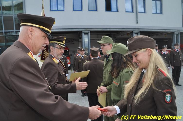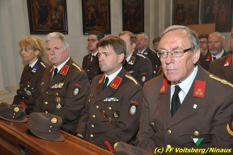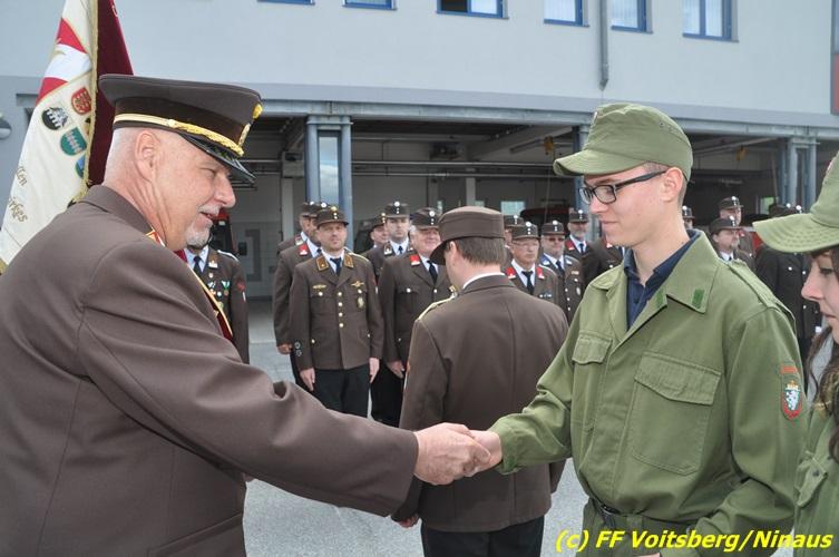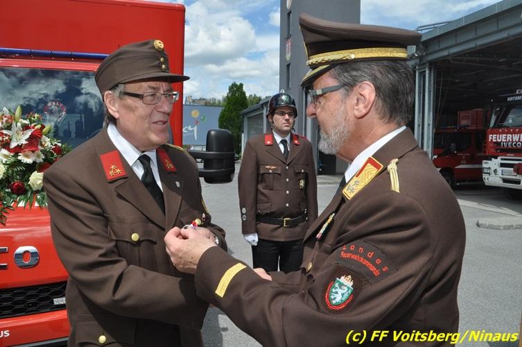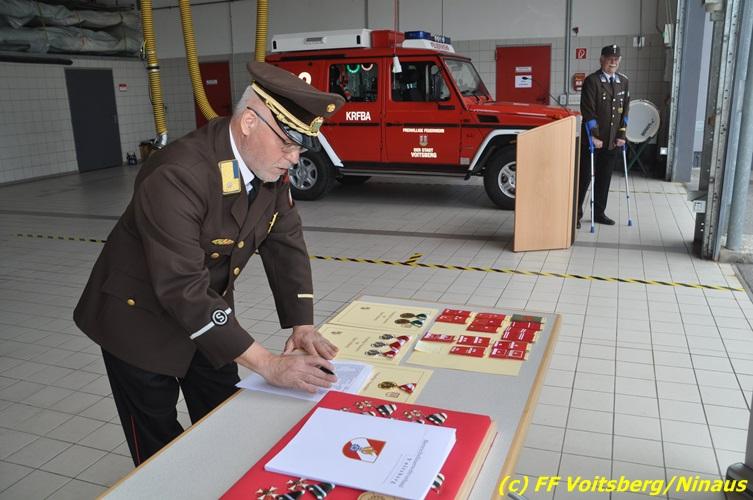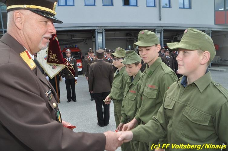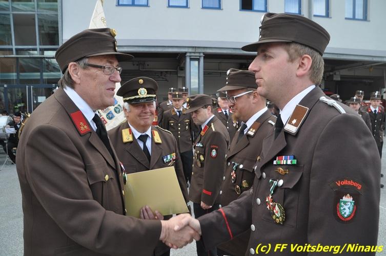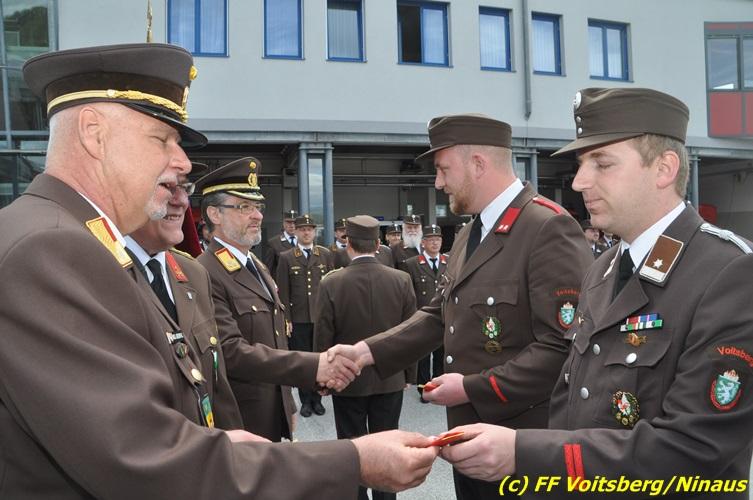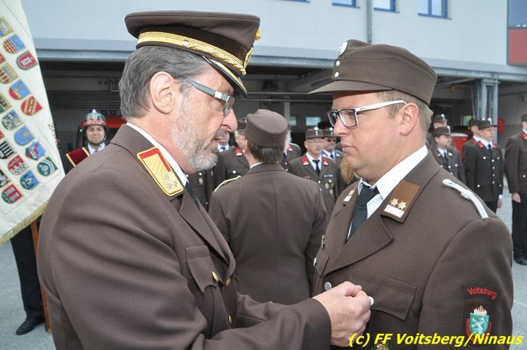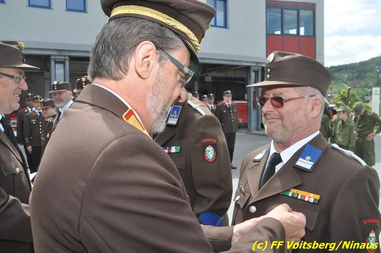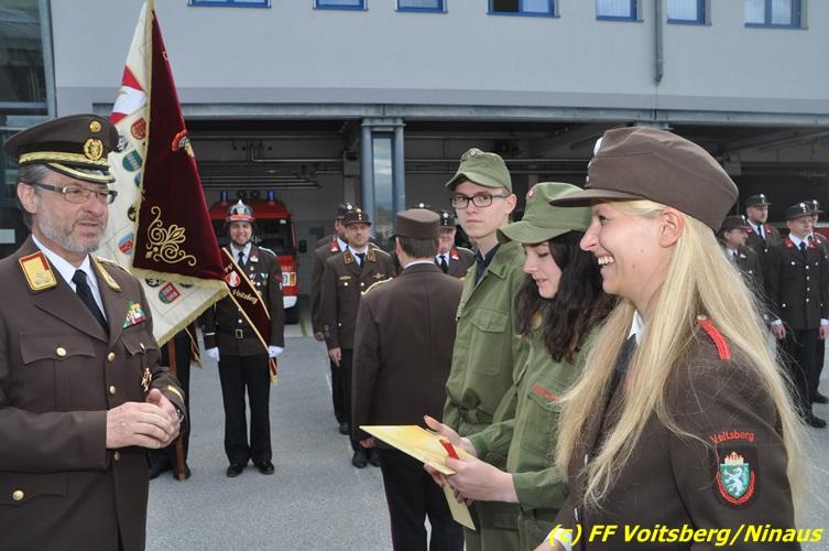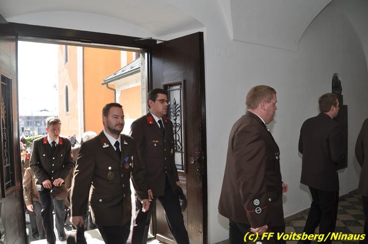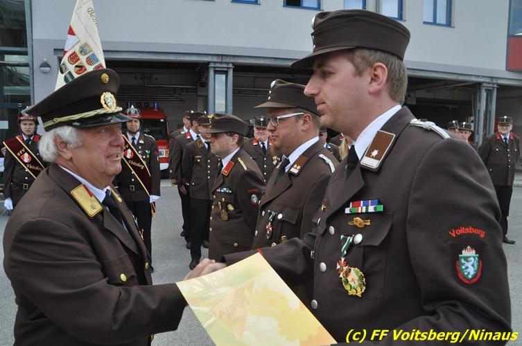 Traditionell begann der Festtag der Feuerwehren für die KameradInnen der Stadtfeuerwehr Voitsberg, dem Florianitag, mit einem Gottesdienst in der St. Josefskirche, zelebriert von Stadtpfarrer Dechant Mag. Gerald Krempl und musikalisch umrahmt von einem Bläserensemble der Bergkapelle Hödlgrube-Zangtal. Beim Rüsthaus erfolgte anschließend der auch schon traditionelle Frühjahrsrapport mit der Meldung an Bürgermeister Ernst Meixner. Wehrkommandant ABI Ing. Klaus Gehr konnte eingangs Stadtpfarrer Dechant Mag. Gerald Krempl, Bürgermeister EHBI Ernst Meixner, die Vizebürgermeister Kurt Christof und Walter Gaich, Stadtrat Markus Leinfellner, die Gemeinderäte Peter Hemmer, Manfred Prettenthaler und Alois Scherr, Chefinspektor Robert Zapfl von der PI Voitsberg, Bezirksstellenleiter des Zivilschutzverbandes Anton Schober, Franz Patz von den Amateurfunkern, Bereichsfeuerwehrkommandant Landesfeuerwehrrat Engelbert Huber, Abschnittsfeuerwehrkommandant ABI Alfred Jauk und die Ehrendienstgrade EABI Rudolf Gargitter und ELM Richard Waidacher begrüßen. In seinen Grußworten überbrachte Bürgermeister Ernst Meixner die Grüße des Gemeinderates und dankte den Mitgliedern der FF Voitsberg für ihren Einsatz zum Wohle der Voitsberger Bevölkerung und gratulierte zur perfekten Organisation des „Tages der Einsatzorganisationen“, welcher gestern beim Rüsthausgelände stattfand. Anschließend wurden der Probefeuerwehrmann David Acham und die Probefeuerwehrfrau Sarah Wintscher nach Verlesen der Gelobungsformel durch den Dechant per Handschlag mit dem Wehrkommandanten angelobt. Die Jungfeuerwehrmänner Jonathan Rapp, Marvin Wintscher, Diemo Acham und Philipp Schmelzer wurden mit Jugendstreifen befördert. David Acham, Sarah Wintscher und Katharina Gogg wurden zu Feuerwehrmänner/frauen befördert. Oberfeuerwehrmann Stefan Veigl wurde zum Hauptfeuerwehrmann, LM d. F. Christian Buchegger zum Löschmeister und Gruppenkommandanten, OLM d. F. Rene Sorger zum Oberlöschmeister und Gruppenkommandanten und Löschmeister Alexander Kröpfl zum Brandmeister und Zugskommandant befördert. Mit der Verdienstmedaille in Bronze für 10jährige Mitgliedschaft in der FF Voitsberg wurde Martin Rapp und der Verdienstmedaille in Silber für 20jährige Mitgliedschaft Ernst Meixner und Waltraud Veigl geehrt. Seitens des BFV Voitsberg wurden mit dem Verdienstkreuz in Bronze Günter Buchegger und mit dem Verdienstkreuz in Silber Karlheinz Buchegger, Ernst Meixner, Rudolf Deutschmann, Friedrich Raudner, Josef Reinisch, Alfons Tappauf und Richard Waidacher von LFR Engelbert Huber ausgezeichnet. Vom Land Steiermark wurde für 25jährige Mitgliedschaft Alfons Tappauf und für 50jährige Mitgliedschaft Rudolf Gargitter geehrt. Das Verdienstkreuz 3. Stufe des LFV Steiermark erhielten Christian Buchegger und Rene Sorger. Ein Höhepunkt dieses Florianitages war die Übergabe und Segnung des Ölschadensfahrzeuges, welches der FF Voitsberg als Bereichsstützpunkt seitens des LFV Steiermark durch LFR Engelbert Huber übergeben und von Dechant Mag. Krempl gesegnet wurde. LFR Huber betonte in seiner Ansprache die Wichtigkeit der FF Voitsberg für den Bereich Voitsberg als Zentrum der Aktivitäten und gratulierte zur gelungenen Abwicklung der gestrigen Großveranstaltung. Alice und Alfons Tappauf, welche fast 20 Jahre im Rüsthaus wohnten, haben außerhalb von Voitsberg ein neues Heim gekauft und werden der FF Voitsberg nicht mehr ihren Dienst anbieten können. Wehrkommandant ABI Gehr bedauerte dies und dankte beiden für ihre stete Einsatzbereitschaft, übergab ihnen ein Abschiedsgeschenk und wünschte ihnen namens aller Wehrmitglieder viel Glück und Gesundheit in der Zukunft. Moderiert in bewährter und gekonnter Weise wurde diese Veranstaltung von BI Karlheinz Buchegger. Mit dem Abspielen der Landeshymne durch eine Abordnung der Bergkapelle Hödlgrube-Zangtal wurde dieser würdevolle Florianitag beim Rüsthaus abgeschlossen. Ein gemeinsames Mittagessen beim Gasthaus Muralter rundete diesen für die Feuerwehren stolzen Feiertag ab.