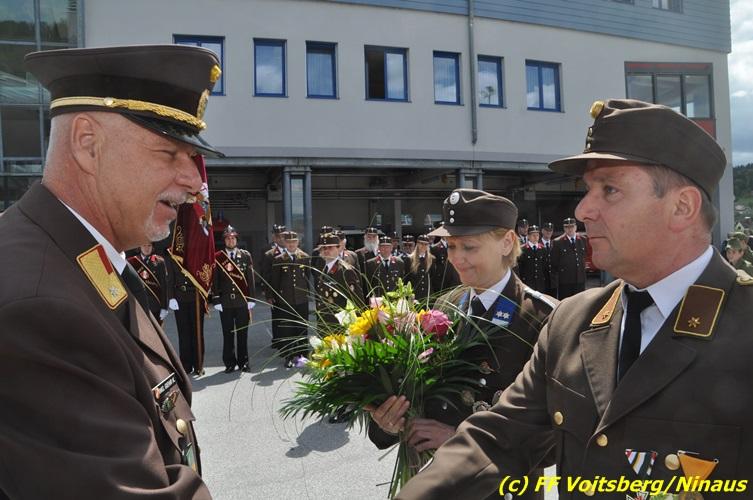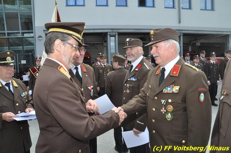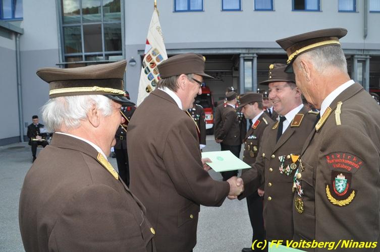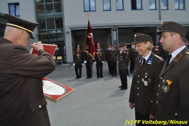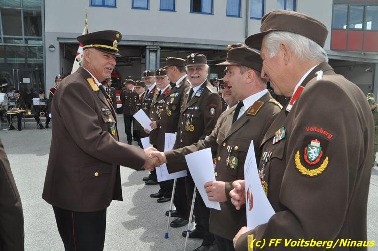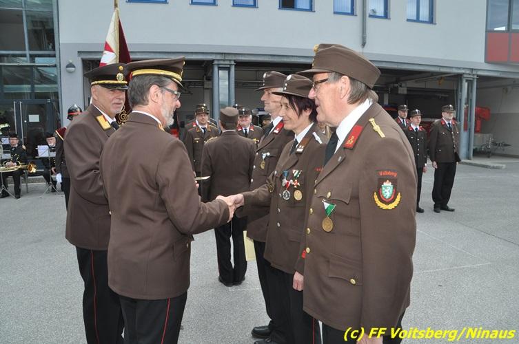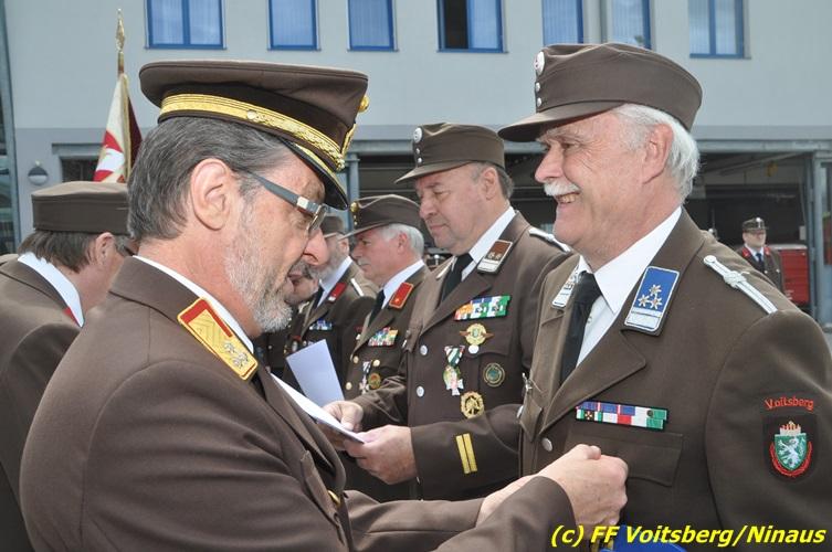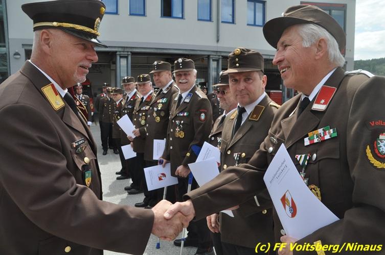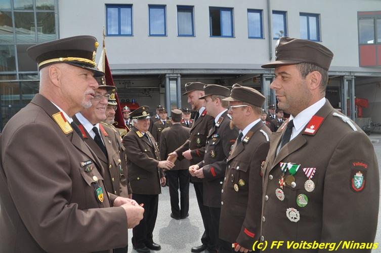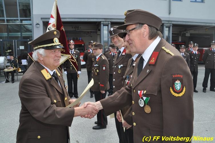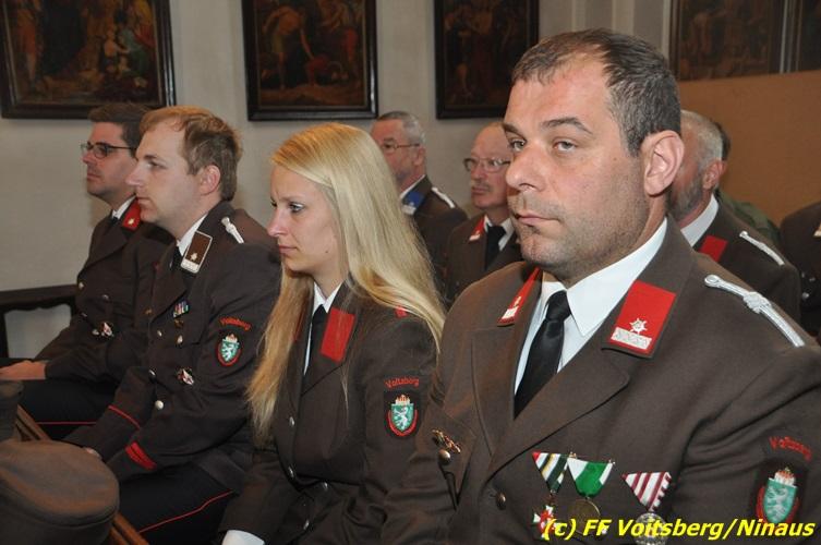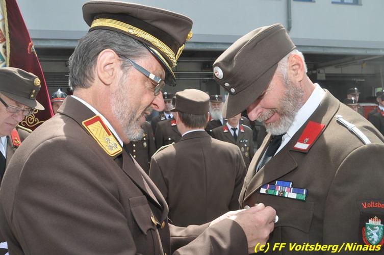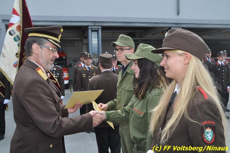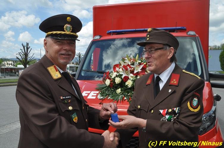 Traditionell begann der Festtag der Feuerwehren für die KameradInnen der Stadtfeuerwehr Voitsberg, dem Florianitag, mit einem Gottesdienst in der St. Josefskirche, zelebriert von Stadtpfarrer Dechant Mag. Gerald Krempl und musikalisch umrahmt von einem Bläserensemble der Bergkapelle Hödlgrube-Zangtal. Beim Rüsthaus erfolgte anschließend der auch schon traditionelle Frühjahrsrapport mit der Meldung an Bürgermeister Ernst Meixner. Wehrkommandant ABI Ing. Klaus Gehr konnte eingangs Stadtpfarrer Dechant Mag. Gerald Krempl, Bürgermeister EHBI Ernst Meixner, die Vizebürgermeister Kurt Christof und Walter Gaich, Stadtrat Markus Leinfellner, die Gemeinderäte Peter Hemmer, Manfred Prettenthaler und Alois Scherr, Chefinspektor Robert Zapfl von der PI Voitsberg, Bezirksstellenleiter des Zivilschutzverbandes Anton Schober, Franz Patz von den Amateurfunkern, Bereichsfeuerwehrkommandant Landesfeuerwehrrat Engelbert Huber, Abschnittsfeuerwehrkommandant ABI Alfred Jauk und die Ehrendienstgrade EABI Rudolf Gargitter und ELM Richard Waidacher begrüßen. In seinen Grußworten überbrachte Bürgermeister Ernst Meixner die Grüße des Gemeinderates und dankte den Mitgliedern der FF Voitsberg für ihren Einsatz zum Wohle der Voitsberger Bevölkerung und gratulierte zur perfekten Organisation des „Tages der Einsatzorganisationen“, welcher gestern beim Rüsthausgelände stattfand. Anschließend wurden der Probefeuerwehrmann David Acham und die Probefeuerwehrfrau Sarah Wintscher nach Verlesen der Gelobungsformel durch den Dechant per Handschlag mit dem Wehrkommandanten angelobt. Die Jungfeuerwehrmänner Jonathan Rapp, Marvin Wintscher, Diemo Acham und Philipp Schmelzer wurden mit Jugendstreifen befördert. David Acham, Sarah Wintscher und Katharina Gogg wurden zu Feuerwehrmänner/frauen befördert. Oberfeuerwehrmann Stefan Veigl wurde zum Hauptfeuerwehrmann, LM d. F. Christian Buchegger zum Löschmeister und Gruppenkommandanten, OLM d. F. Rene Sorger zum Oberlöschmeister und Gruppenkommandanten und Löschmeister Alexander Kröpfl zum Brandmeister und Zugskommandant befördert. Mit der Verdienstmedaille in Bronze für 10jährige Mitgliedschaft in der FF Voitsberg wurde Martin Rapp und der Verdienstmedaille in Silber für 20jährige Mitgliedschaft Ernst Meixner und Waltraud Veigl geehrt. Seitens des BFV Voitsberg wurden mit dem Verdienstkreuz in Bronze Günter Buchegger und mit dem Verdienstkreuz in Silber Karlheinz Buchegger, Ernst Meixner, Rudolf Deutschmann, Friedrich Raudner, Josef Reinisch, Alfons Tappauf und Richard Waidacher von LFR Engelbert Huber ausgezeichnet. Vom Land Steiermark wurde für 25jährige Mitgliedschaft Alfons Tappauf und für 50jährige Mitgliedschaft Rudolf Gargitter geehrt. Das Verdienstkreuz 3. Stufe des LFV Steiermark erhielten Christian Buchegger und Rene Sorger. Ein Höhepunkt dieses Florianitages war die Übergabe und Segnung des Ölschadensfahrzeuges, welches der FF Voitsberg als Bereichsstützpunkt seitens des LFV Steiermark durch LFR Engelbert Huber übergeben und von Dechant Mag. Krempl gesegnet wurde. LFR Huber betonte in seiner Ansprache die Wichtigkeit der FF Voitsberg für den Bereich Voitsberg als Zentrum der Aktivitäten und gratulierte zur gelungenen Abwicklung der gestrigen Großveranstaltung. Alice und Alfons Tappauf, welche fast 20 Jahre im Rüsthaus wohnten, haben außerhalb von Voitsberg ein neues Heim gekauft und werden der FF Voitsberg nicht mehr ihren Dienst anbieten können. Wehrkommandant ABI Gehr bedauerte dies und dankte beiden für ihre stete Einsatzbereitschaft, übergab ihnen ein Abschiedsgeschenk und wünschte ihnen namens aller Wehrmitglieder viel Glück und Gesundheit in der Zukunft. Moderiert in bewährter und gekonnter Weise wurde diese Veranstaltung von BI Karlheinz Buchegger. Mit dem Abspielen der Landeshymne durch eine Abordnung der Bergkapelle Hödlgrube-Zangtal wurde dieser würdevolle Florianitag beim Rüsthaus abgeschlossen. Ein gemeinsames Mittagessen beim Gasthaus Muralter rundete diesen für die Feuerwehren stolzen Feiertag ab.
