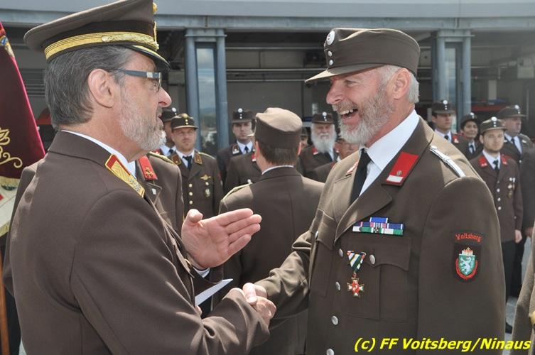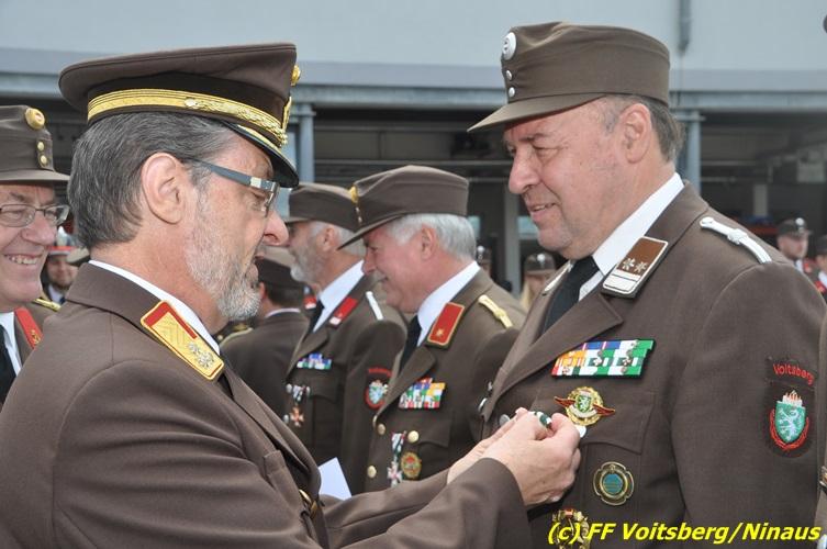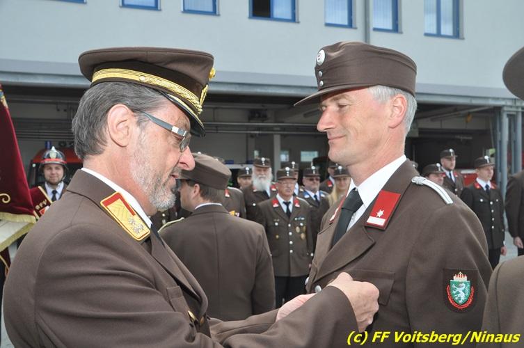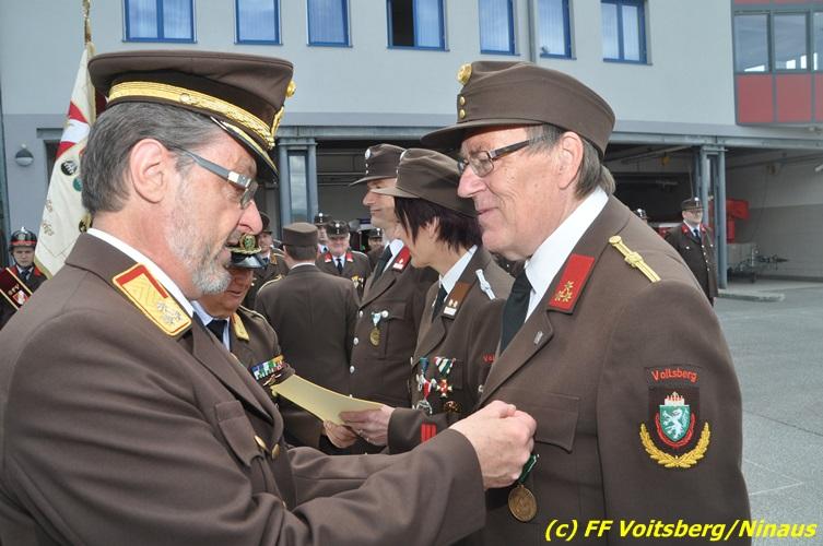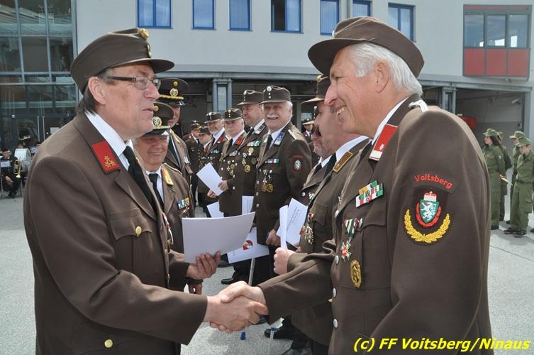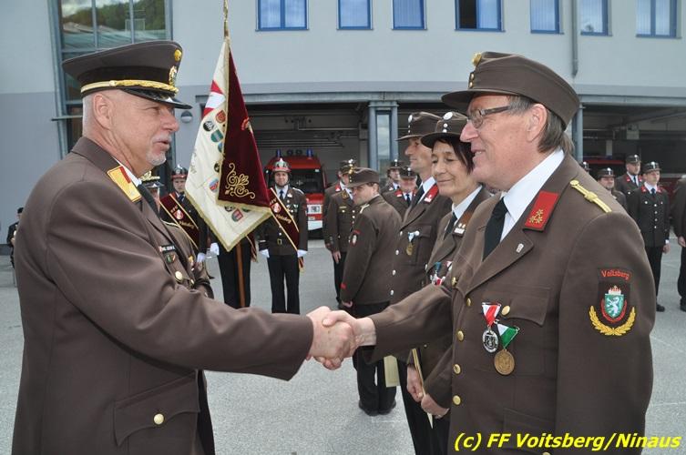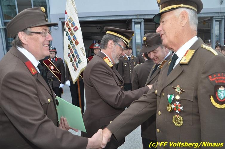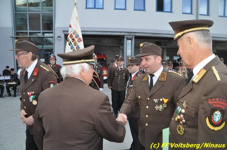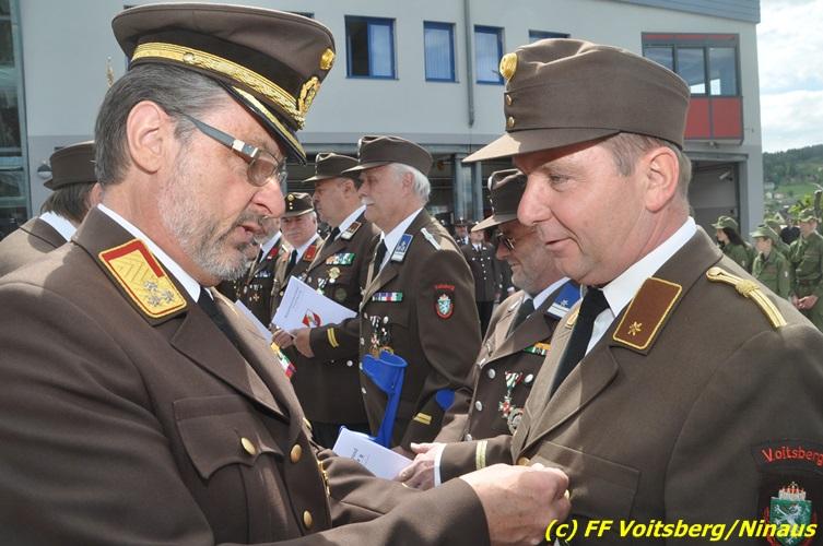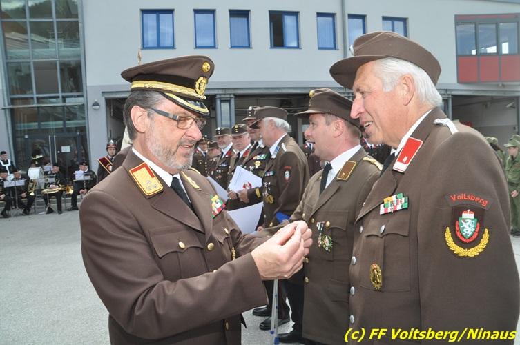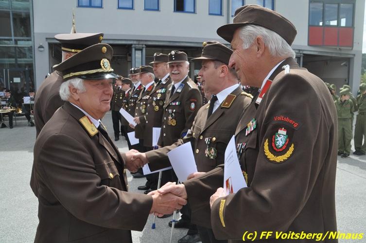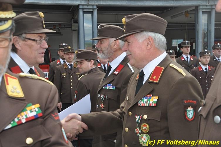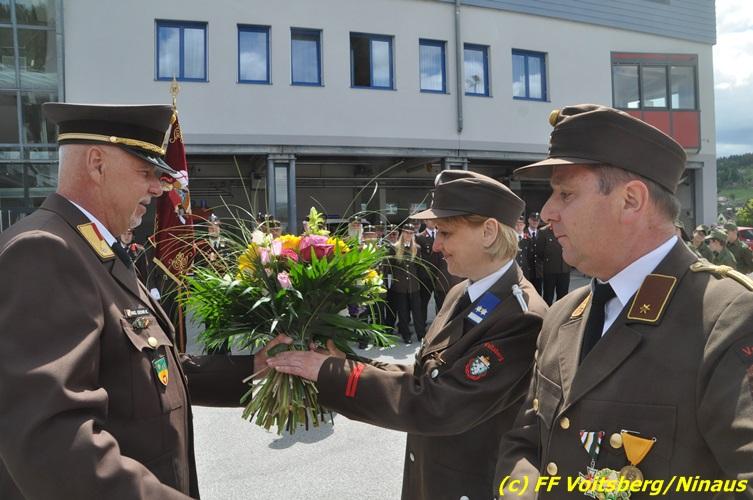 Traditionell begann der Festtag der Feuerwehren für die KameradInnen der Stadtfeuerwehr Voitsberg, dem Florianitag, mit einem Gottesdienst in der St. Josefskirche, zelebriert von Stadtpfarrer Dechant Mag. Gerald Krempl und musikalisch umrahmt von einem Bläserensemble der Bergkapelle Hödlgrube-Zangtal. Beim Rüsthaus erfolgte anschließend der auch schon traditionelle Frühjahrsrapport mit der Meldung an Bürgermeister Ernst Meixner. Wehrkommandant ABI Ing. Klaus Gehr konnte eingangs Stadtpfarrer Dechant Mag. Gerald Krempl, Bürgermeister EHBI Ernst Meixner, die Vizebürgermeister Kurt Christof und Walter Gaich, Stadtrat Markus Leinfellner, die Gemeinderäte Peter Hemmer, Manfred Prettenthaler und Alois Scherr, Chefinspektor Robert Zapfl von der PI Voitsberg, Bezirksstellenleiter des Zivilschutzverbandes Anton Schober, Franz Patz von den Amateurfunkern, Bereichsfeuerwehrkommandant Landesfeuerwehrrat Engelbert Huber, Abschnittsfeuerwehrkommandant ABI Alfred Jauk und die Ehrendienstgrade EABI Rudolf Gargitter und ELM Richard Waidacher begrüßen. In seinen Grußworten überbrachte Bürgermeister Ernst Meixner die Grüße des Gemeinderates und dankte den Mitgliedern der FF Voitsberg für ihren Einsatz zum Wohle der Voitsberger Bevölkerung und gratulierte zur perfekten Organisation des „Tages der Einsatzorganisationen“, welcher gestern beim Rüsthausgelände stattfand. Anschließend wurden der Probefeuerwehrmann David Acham und die Probefeuerwehrfrau Sarah Wintscher nach Verlesen der Gelobungsformel durch den Dechant per Handschlag mit dem Wehrkommandanten angelobt. Die Jungfeuerwehrmänner Jonathan Rapp, Marvin Wintscher, Diemo Acham und Philipp Schmelzer wurden mit Jugendstreifen befördert. David Acham, Sarah Wintscher und Katharina Gogg wurden zu Feuerwehrmänner/frauen befördert. Oberfeuerwehrmann Stefan Veigl wurde zum Hauptfeuerwehrmann, LM d. F. Christian Buchegger zum Löschmeister und Gruppenkommandanten, OLM d. F. Rene Sorger zum Oberlöschmeister und Gruppenkommandanten und Löschmeister Alexander Kröpfl zum Brandmeister und Zugskommandant befördert. Mit der Verdienstmedaille in Bronze für 10jährige Mitgliedschaft in der FF Voitsberg wurde Martin Rapp und der Verdienstmedaille in Silber für 20jährige Mitgliedschaft Ernst Meixner und Waltraud Veigl geehrt. Seitens des BFV Voitsberg wurden mit dem Verdienstkreuz in Bronze Günter Buchegger und mit dem Verdienstkreuz in Silber Karlheinz Buchegger, Ernst Meixner, Rudolf Deutschmann, Friedrich Raudner, Josef Reinisch, Alfons Tappauf und Richard Waidacher von LFR Engelbert Huber ausgezeichnet. Vom Land Steiermark wurde für 25jährige Mitgliedschaft Alfons Tappauf und für 50jährige Mitgliedschaft Rudolf Gargitter geehrt. Das Verdienstkreuz 3. Stufe des LFV Steiermark erhielten Christian Buchegger und Rene Sorger. Ein Höhepunkt dieses Florianitages war die Übergabe und Segnung des Ölschadensfahrzeuges, welches der FF Voitsberg als Bereichsstützpunkt seitens des LFV Steiermark durch LFR Engelbert Huber übergeben und von Dechant Mag. Krempl gesegnet wurde. LFR Huber betonte in seiner Ansprache die Wichtigkeit der FF Voitsberg für den Bereich Voitsberg als Zentrum der Aktivitäten und gratulierte zur gelungenen Abwicklung der gestrigen Großveranstaltung. Alice und Alfons Tappauf, welche fast 20 Jahre im Rüsthaus wohnten, haben außerhalb von Voitsberg ein neues Heim gekauft und werden der FF Voitsberg nicht mehr ihren Dienst anbieten können. Wehrkommandant ABI Gehr bedauerte dies und dankte beiden für ihre stete Einsatzbereitschaft, übergab ihnen ein Abschiedsgeschenk und wünschte ihnen namens aller Wehrmitglieder viel Glück und Gesundheit in der Zukunft. Moderiert in bewährter und gekonnter Weise wurde diese Veranstaltung von BI Karlheinz Buchegger. Mit dem Abspielen der Landeshymne durch eine Abordnung der Bergkapelle Hödlgrube-Zangtal wurde dieser würdevolle Florianitag beim Rüsthaus abgeschlossen. Ein gemeinsames Mittagessen beim Gasthaus Muralter rundete diesen für die Feuerwehren stolzen Feiertag ab.
