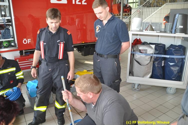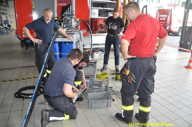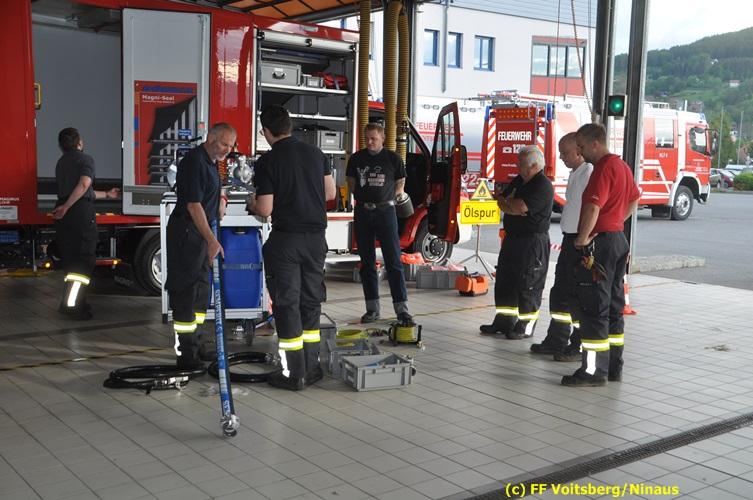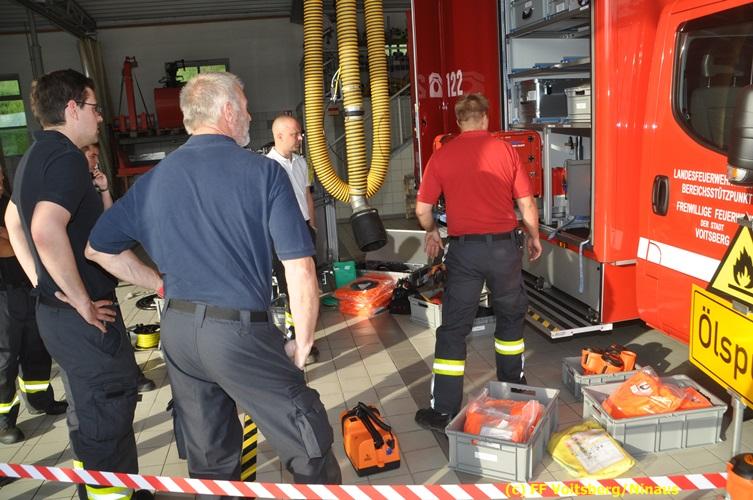 VOITSBERG, am 15.05.2017 Eine erste Schulung in drei Gruppen bildeten den Anfang der zeitaufwendig und technisch fordernden Einschulungen in das neu in Dienst gestellte Ölschadensfahrzeug.