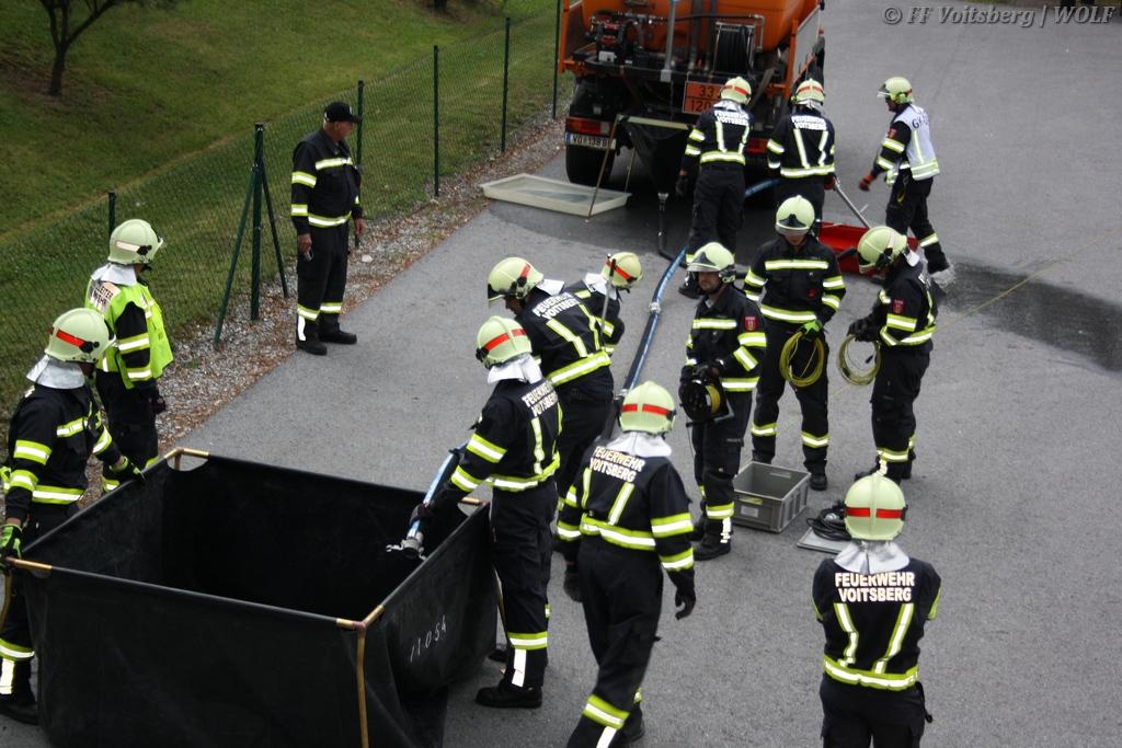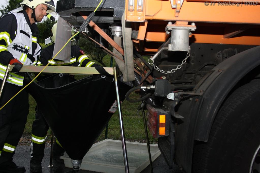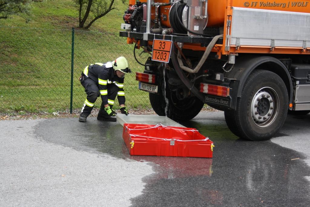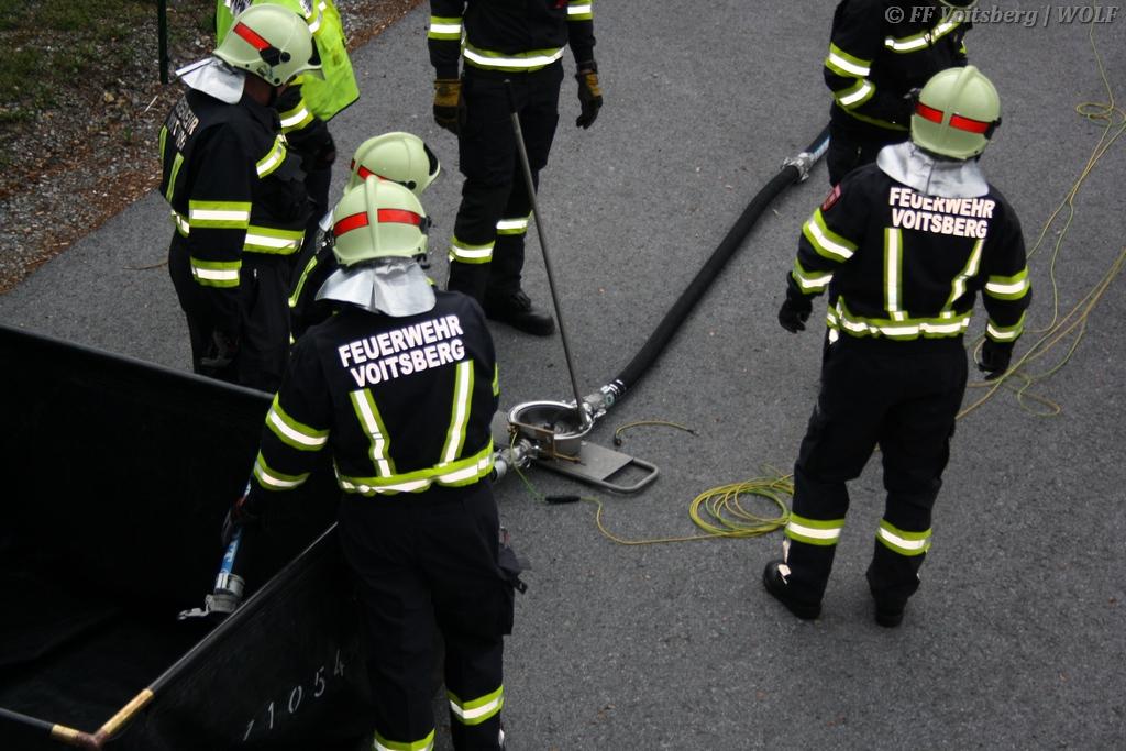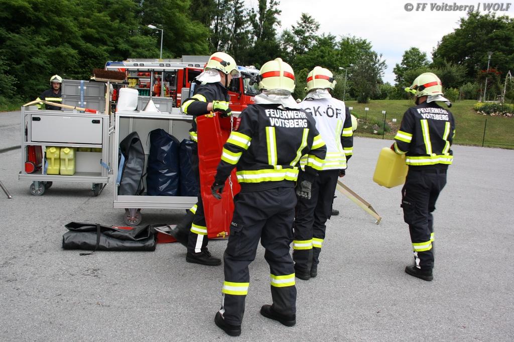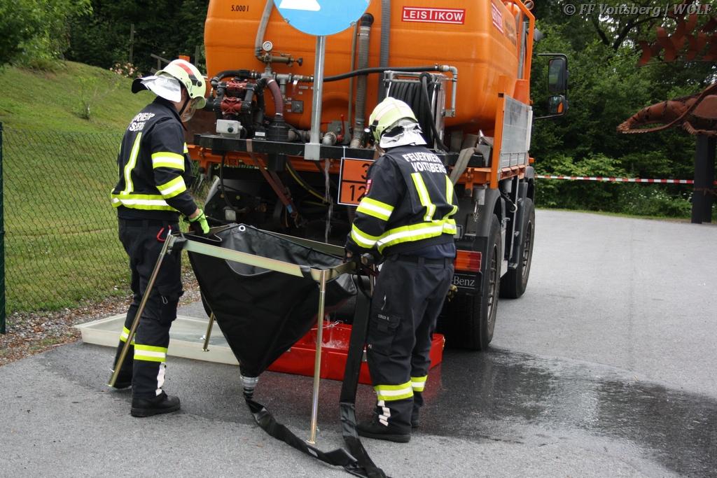 VOITSBERG, am 12.06.2017 Erste Einsatzübung mit dem neuen Ölschadensfahrzeug. Übungsannahme war das Auslaufen einer Flüssigkeit aus einem Tankwagen. Hiebei wurde die technische Ausstattung der Beladung des neuen Einsatzfahrzeuges erstmals verwendet und beübt.