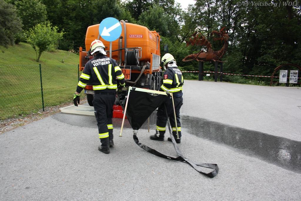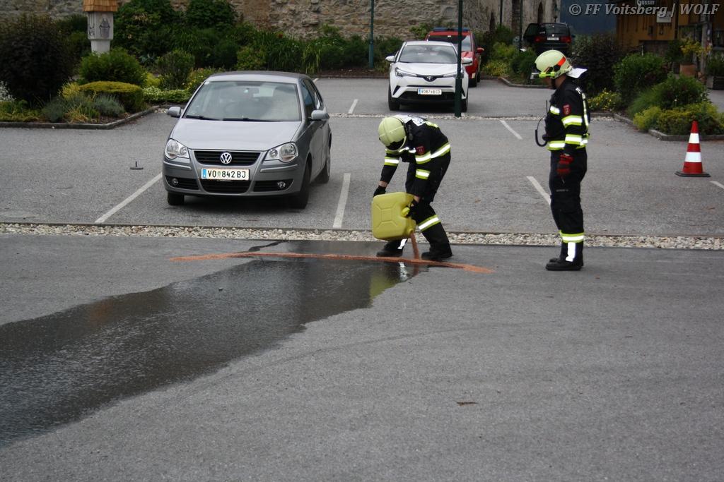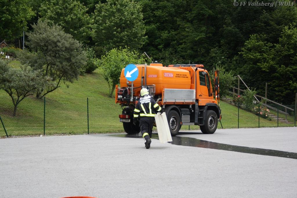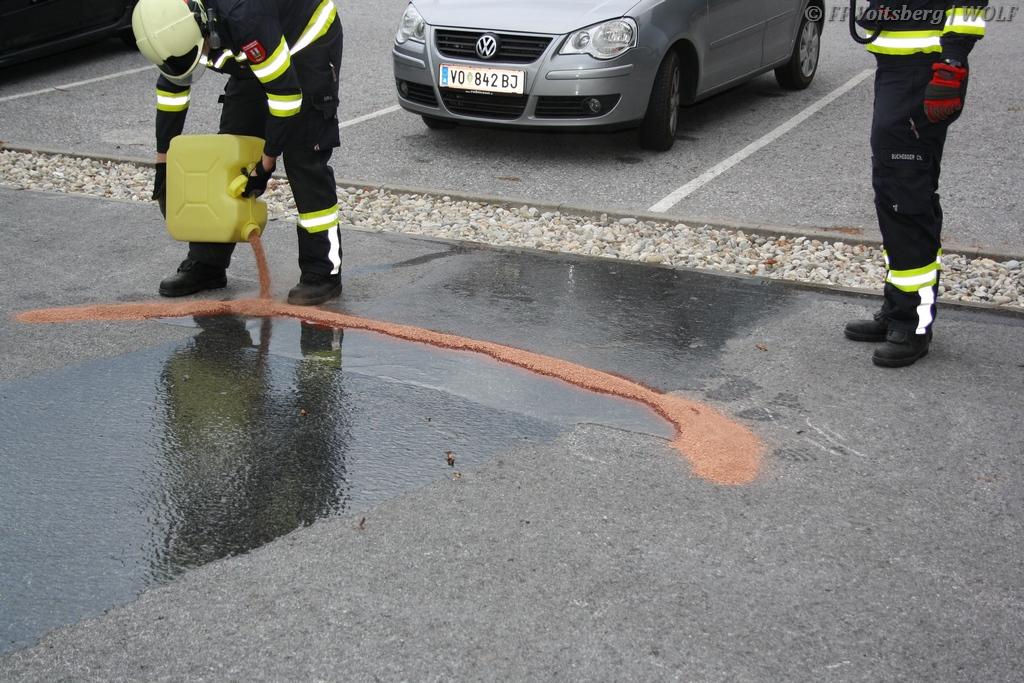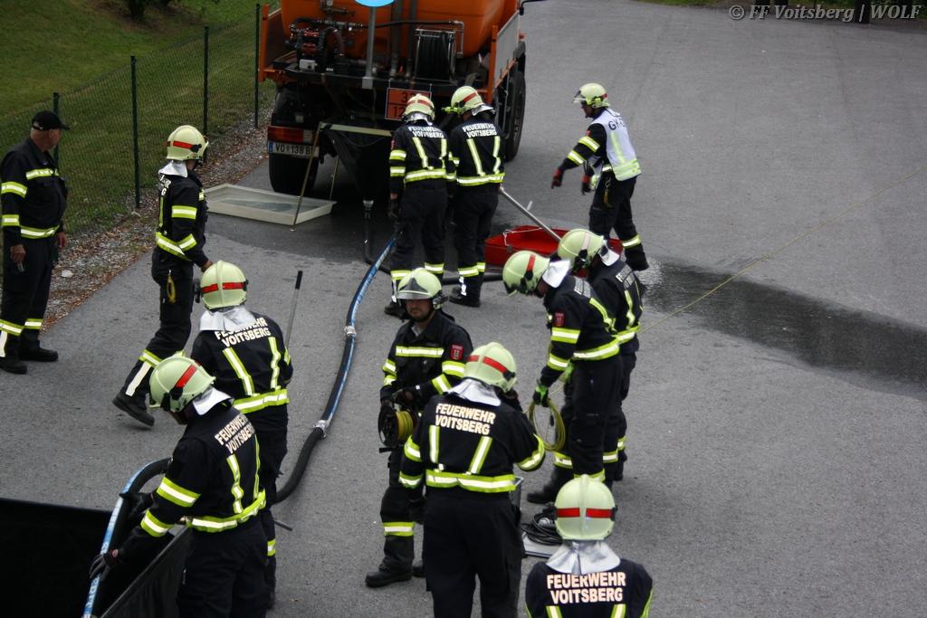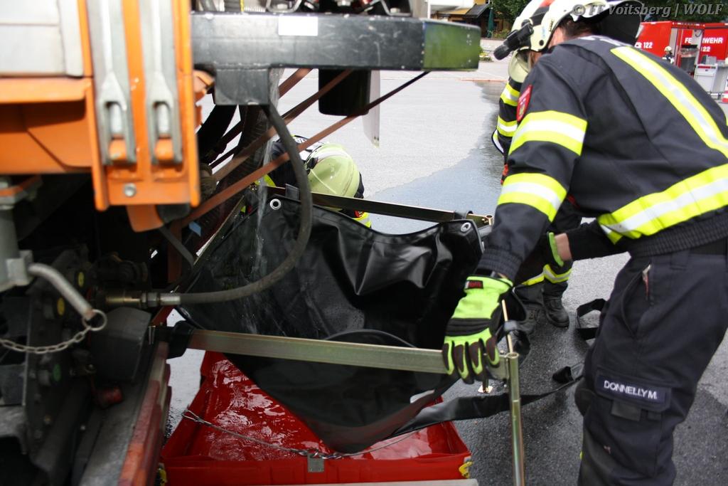 VOITSBERG, am 12.06.2017 Erste Einsatzübung mit dem neuen Ölschadensfahrzeug. Übungsannahme war das Auslaufen einer Flüssigkeit aus einem Tankwagen. Hiebei wurde die technische Ausstattung der Beladung des neuen Einsatzfahrzeuges erstmals verwendet und beübt.