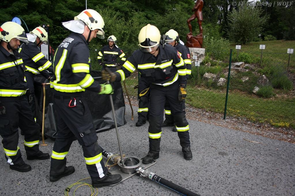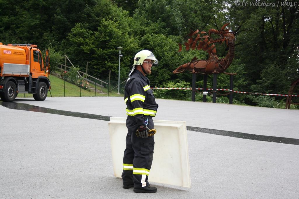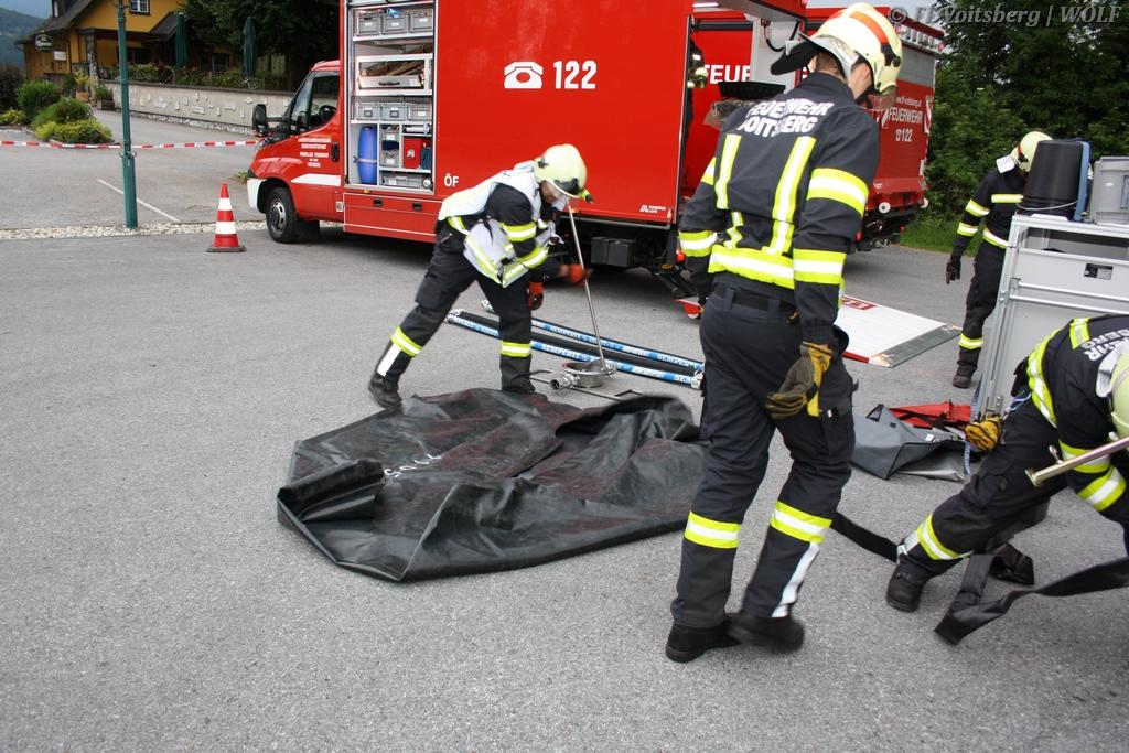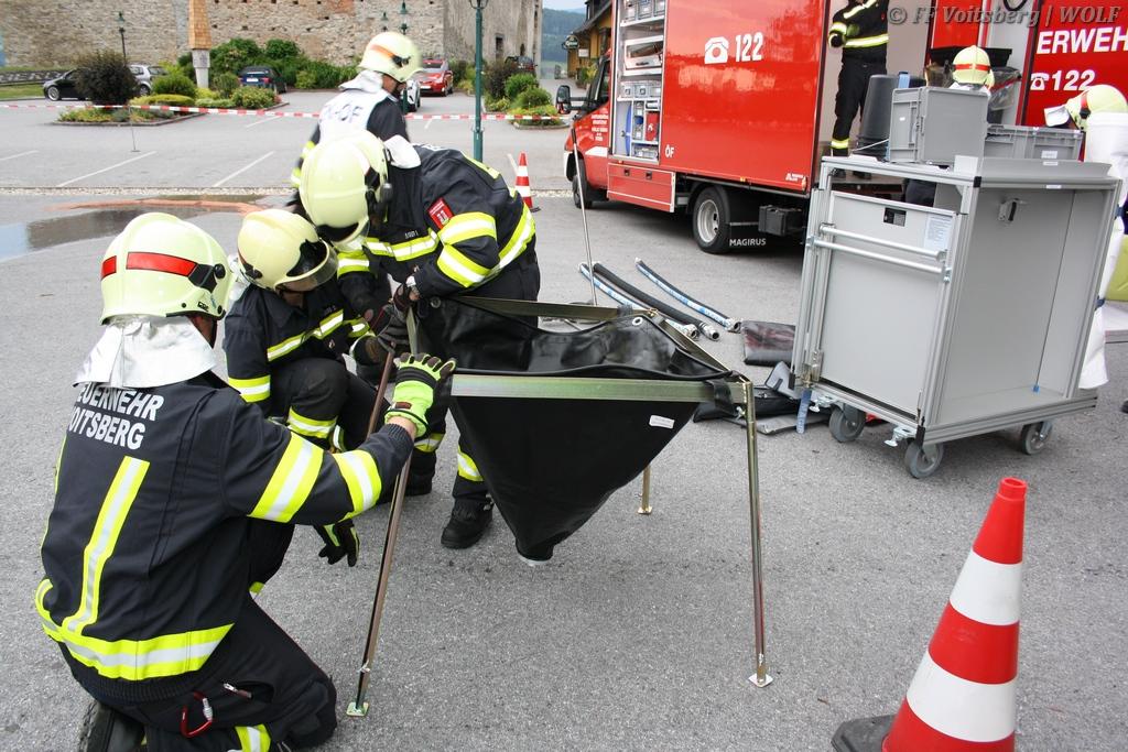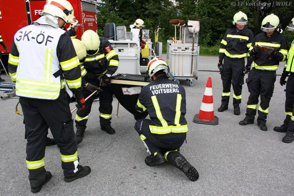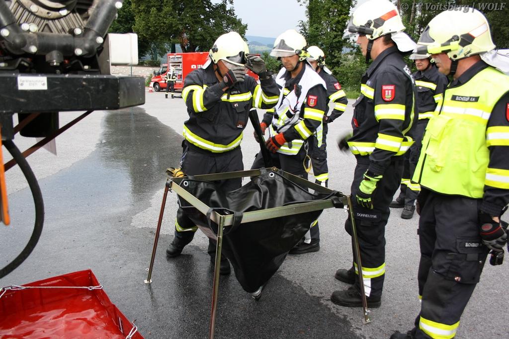 VOITSBERG, am 12.06.2017 Erste Einsatzübung mit dem neuen Ölschadensfahrzeug. Übungsannahme war das Auslaufen einer Flüssigkeit aus einem Tankwagen. Hiebei wurde die technische Ausstattung der Beladung des neuen Einsatzfahrzeuges erstmals verwendet und beübt.