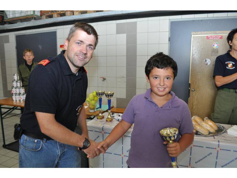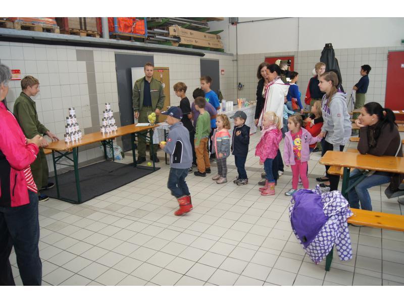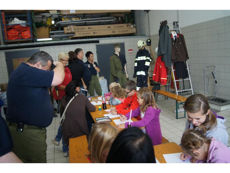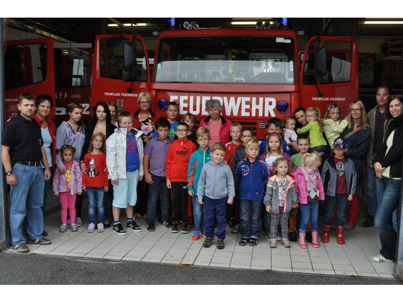 VOITSBERG, am 26.08.2013 Die Sommeraktion Jugend- und Kindersommer“ der Stadtgemeinde Voitsberg machte bei der FF Voitsberg halt. Die trotz Schlechtwetter über 30 erschienenen Kinder mit ihren Erziehungsberechtigten wurden seitens der Stadtgemeinde durch die Gemeinderätin Elisabeth Bretterklieber und seitens der FF Voitsberg durch den stellvertretenden Kommandanten Michael Münzer begrüßt. Beide betonten die Wichtigkeit der Verbindung zwischen Bevölkerung und Feuerwehr. Die FF Voitsberg bereitete für die begeisterten Kinder ein abwechslungsreiches Programm vor. So konnten sich die Jugendlichen ua. beim Dosenwerfen, beim Zielspritzen auf eine Spritzwand messen, malten Feuerwehrfahrzeuge, konnten sich mit Ausrüstungsgegenständen bekanntmachen und nahmen in den Einsatzfahrzeugen Platz. Natürlich durfte die Betätigung des Folgetonhornes auch nicht fehlen. Weiters standen die anwesenden Feuerwehrmänner Rede und Antwort. Im Laufe der Veranstaltung erschien auch der Finanzstadtrat Franz Sachernegg und machte sich ein Bild von dieser erfolgreich durchgeführten Veranstaltung. Zum Abschluß lud die FF Voitsberg alle zu einer kleinen Jause mit Getränken ein.