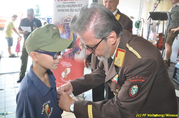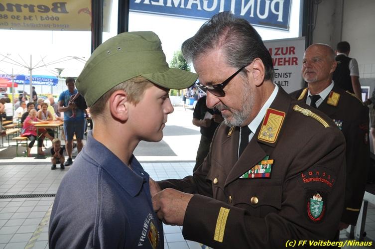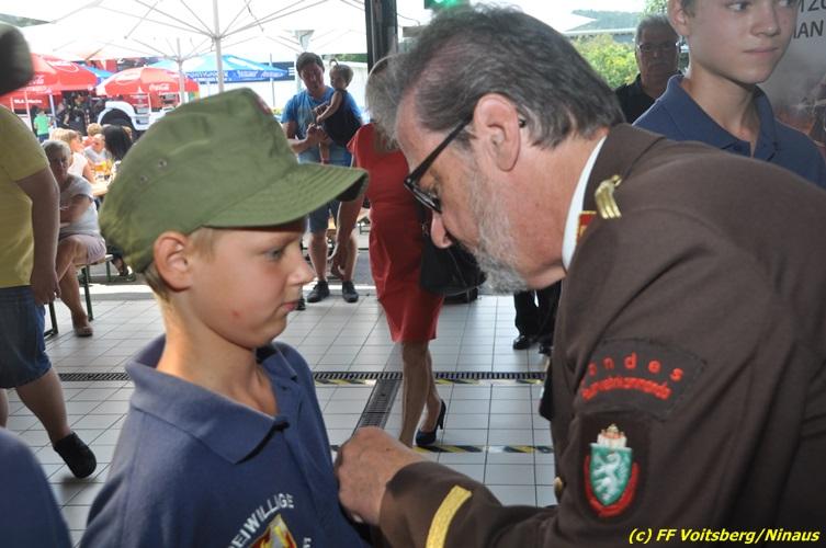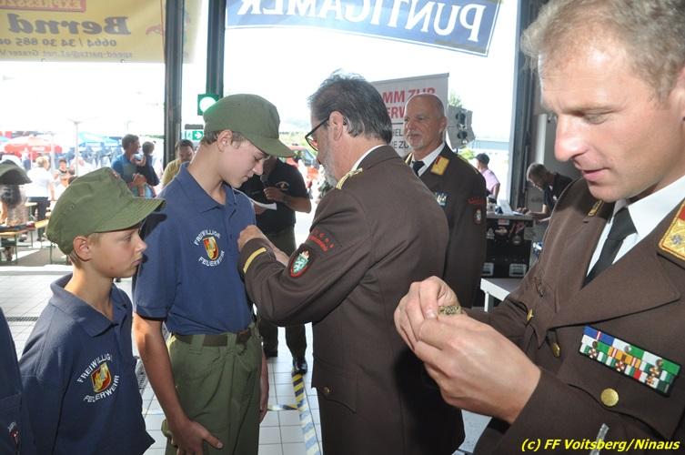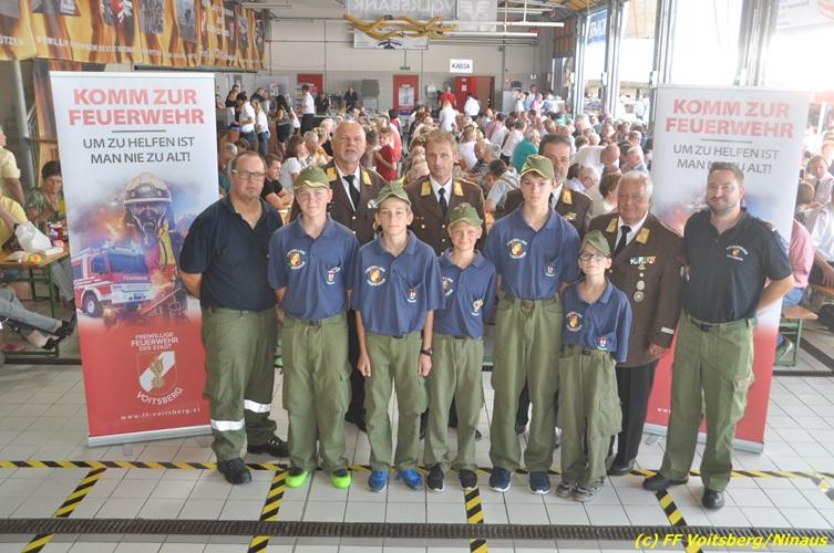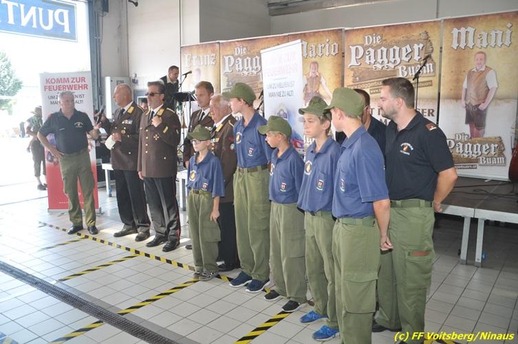 VOITSBERG, am 27.08.2017 Vor Beginn des Frühschoppen wurden Jugendliche der FF Voitsberg für den Erwerb von Leistungsabzeichen vom BerFwKdten LFR Eingelbert Huber, BR Christian Leitgeb, ABI Alfred Jauk, dem Wehrkommandanten ABI Ing. Klaus Gehr sowie den Jugendbeauftragten Rene Sorger und Peter Kremaucz ausgezeichnet. Der Einladung zum Frühschoppen der FF Voitsberg mit den Pagger-Buam folgten hunderte Besucher. Die Musikgruppe verstand es, bei traumhaften Wetter die Frühschoppengäste mit Humor und guter Musik in Stimmung zu bringen.