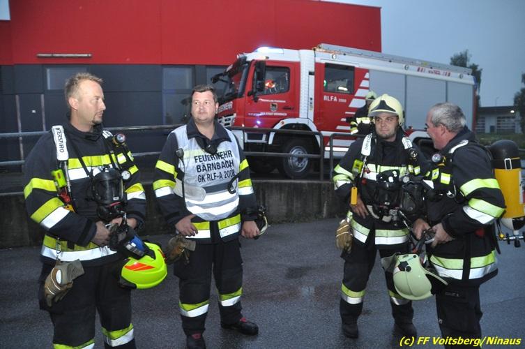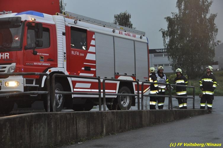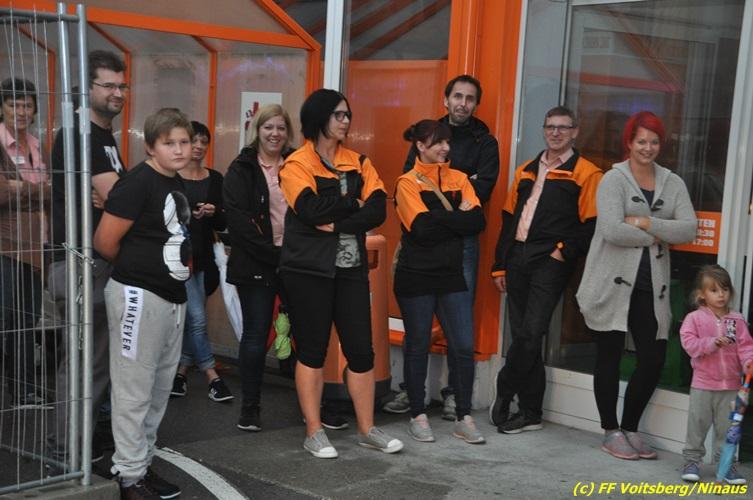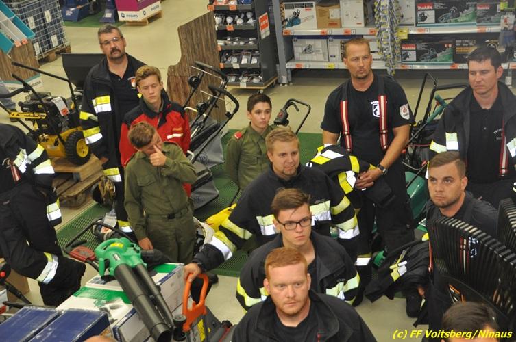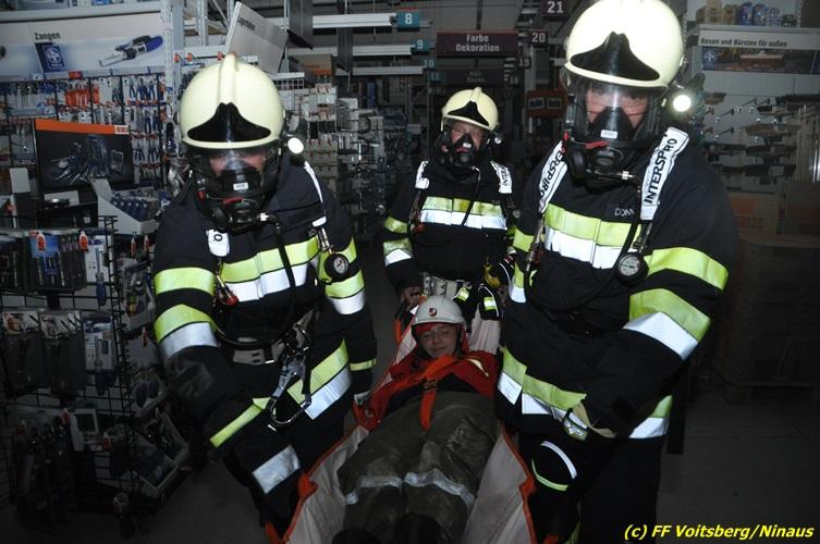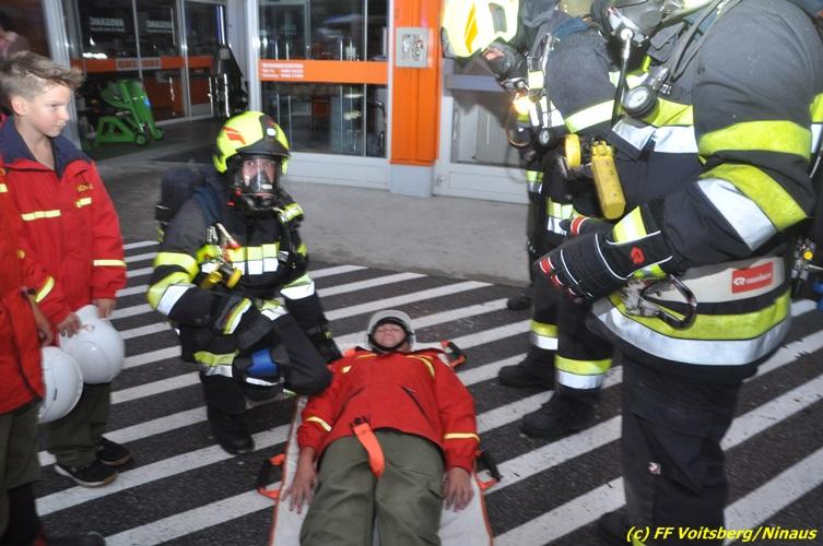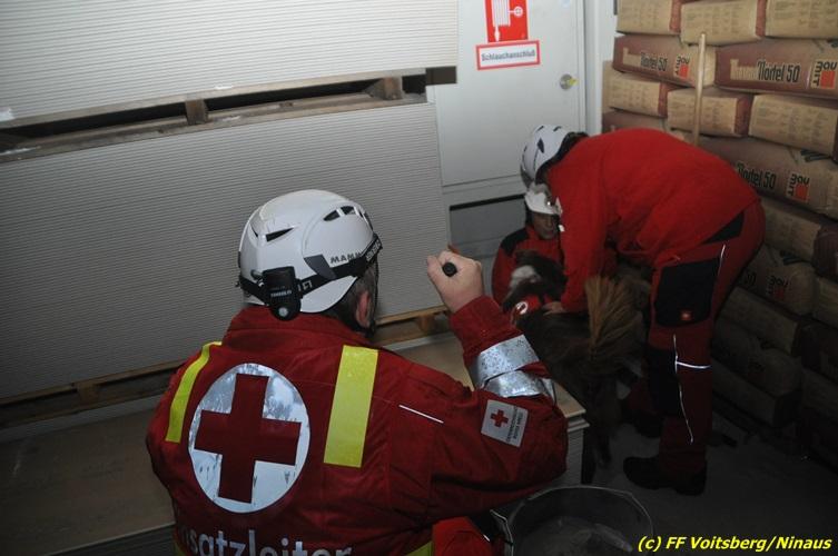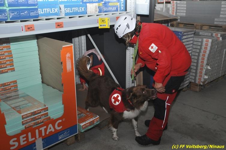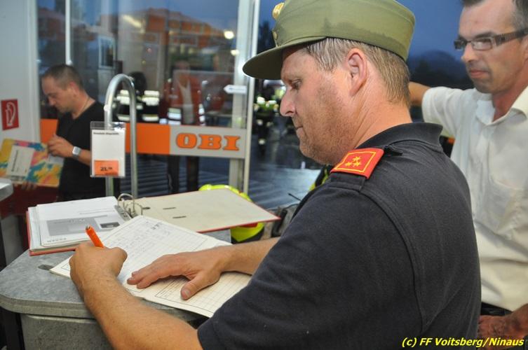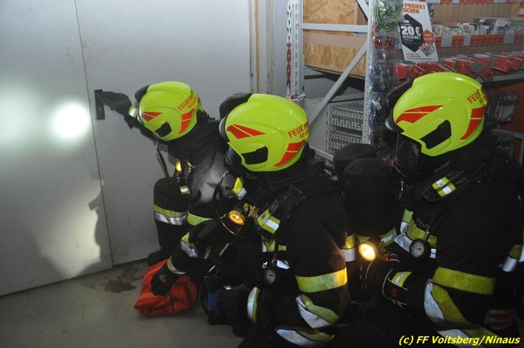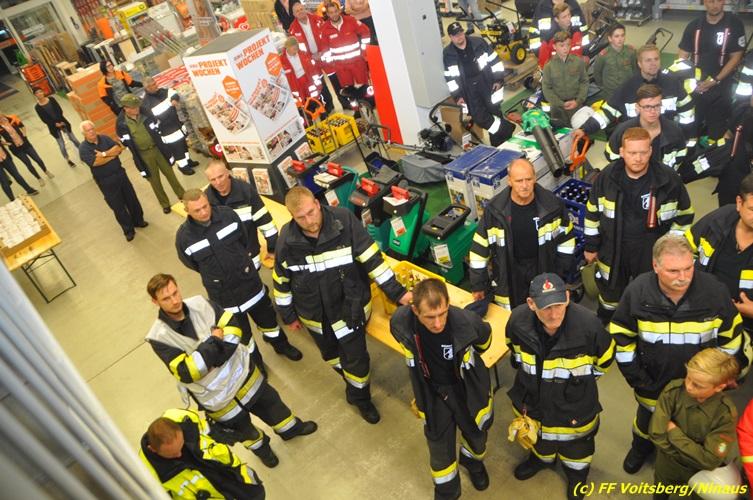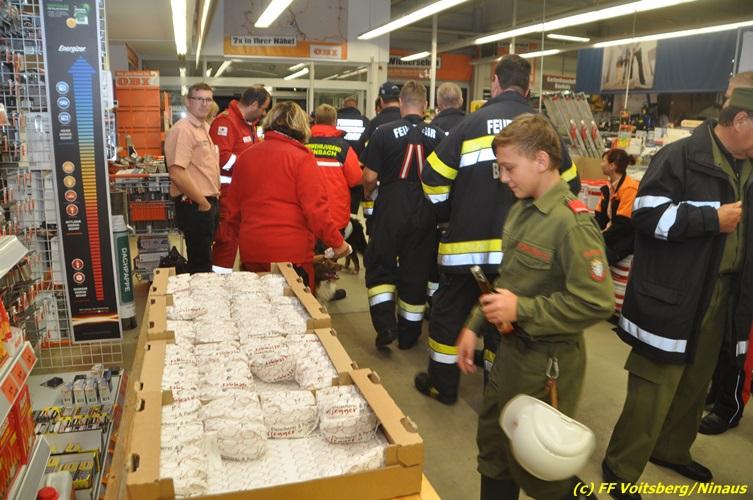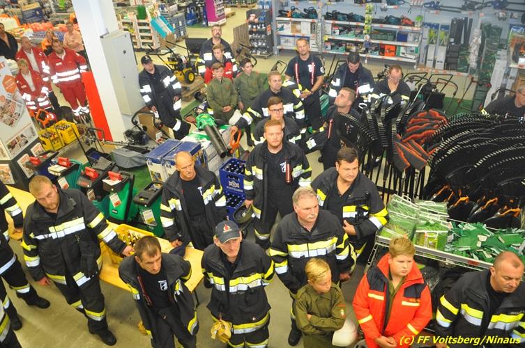VOITSBERG, am 11.09.2017 „Brand“ in Fachmarkt mit 8 Vermissten Kürzlich fand beim OBI-Fachmarkt in Rosental eine Einsatzübung mit den Feuerwehren Rosental, Bärnbach und Voitsberg und der Suchhundestaffel des Roten Kreuzes statt. Übungsannahme war ein Brand, welcher in den Räumlichkeiten des Holzzuschnittes entstand. Die an die Landesleitzentrale Steiermark in Lebring angeschlossene Brandmeldeanlage löste den Alarm aus, worauf die Feuerwehren alarmiert wurden. Das anwesende Personal evakuierte anwesende Kunden aus dem Geschäft und begab sich sodann zum Sammelplatz. Zwei Arbeiter waren nach Erkundung der Einsatzleiter im Lager aufgrund der reichlichen Rauchgase vermisst. Atemschutztrupps konnten nach kurzer Zeit beide Arbeiter retten. Die Brandbekämpfung erfolgte mit Tanklöschfahrzeugen und nach Herstellung einer Löschleitung vom Gradnerbach mit einem C-Rohr. Verraucht waren auch Teile des Geschäftes, wobei 6 Kunden ebenfalls vermisst waren. Die mit alarmierte Suchhundestaffel des Roten Kreuzes konnte mit einigen Hunden die Suche aufnehmen und die Abgängigen lebend finden, erste Rettungsmaßnahmen einleiten und erfolgreich aus der Gefahrenzone bringen. Nach dem erfolgreichen Abschluss dieser Übung fand im Geschäft eine Nachbesprechung statt. Übungsleiter HBI Franz Sommer erläuterte die Vorgangsweise bei Eintreffen nach einer Alarmmeldung und machte auf einige Gefahrenpunkte aufmerksam. Die Einsatzleiter BI dF. Markus Birnstingl und HFM Daniel Eberhardt, bestens unterstützt von LM dF. Christian Buchegger mit dem Kommandofahrzeug der FF Voitsberg, konnten den Einsatz vorbildlich leiten. Der Geschäftsleiter des OBI – Baumarktes Rosental, Herr Markus Vötsch, bedankte sich abschließend für die Abhaltung dieser Übung, sprach den Mitgliedern der Feuerwehren allgemein seine Hochachtung für deren Einsatz aus und lud zu einer Jause und Getränken ein. Als Übungsbeobachter fanden sich ABI Alfred Jauk und EABI Josef Porta ein.