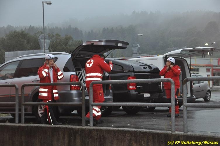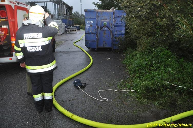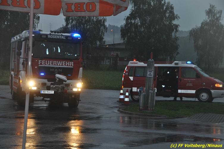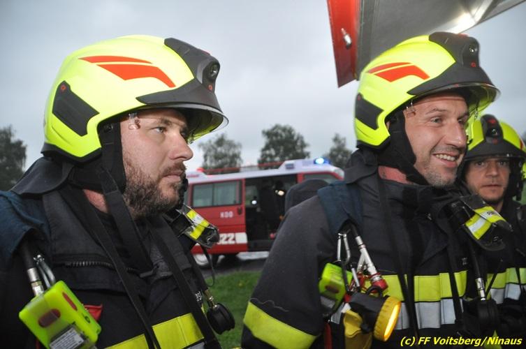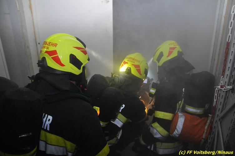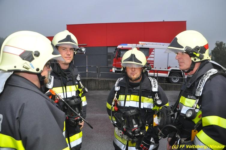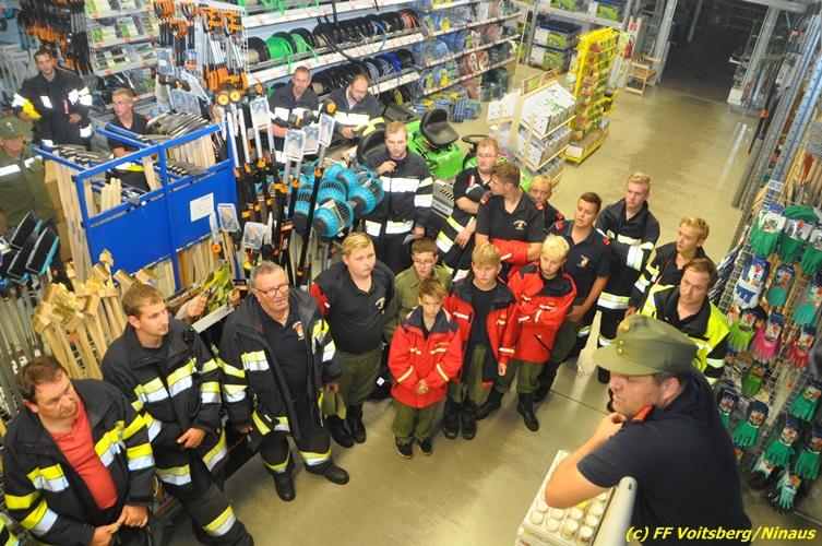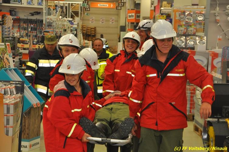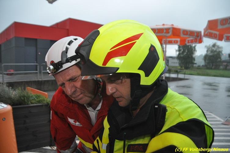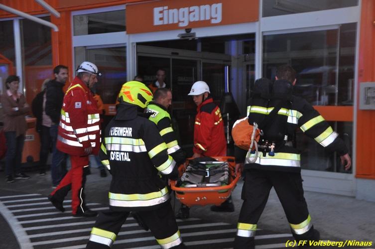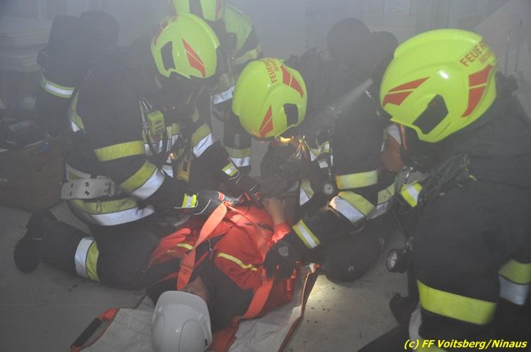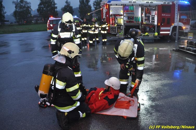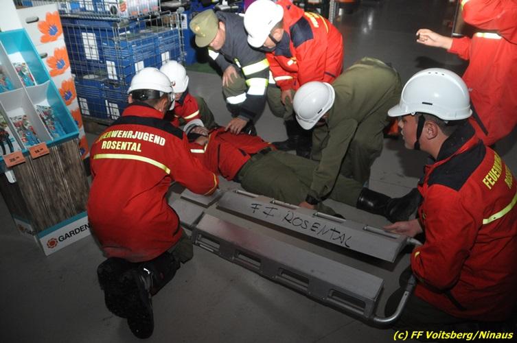 VOITSBERG, am 11.09.2017 „Brand“ in Fachmarkt mit 8 Vermissten Kürzlich fand beim OBI-Fachmarkt in Rosental eine Einsatzübung mit den Feuerwehren Rosental, Bärnbach und Voitsberg und der Suchhundestaffel des Roten Kreuzes statt. Übungsannahme war ein Brand, welcher in den Räumlichkeiten des Holzzuschnittes entstand. Die an die Landesleitzentrale Steiermark in Lebring angeschlossene Brandmeldeanlage löste den Alarm aus, worauf die Feuerwehren alarmiert wurden. Das anwesende Personal evakuierte anwesende Kunden aus dem Geschäft und begab sich sodann zum Sammelplatz. Zwei Arbeiter waren nach Erkundung der Einsatzleiter im Lager aufgrund der reichlichen Rauchgase vermisst. Atemschutztrupps konnten nach kurzer Zeit beide Arbeiter retten. Die Brandbekämpfung erfolgte mit Tanklöschfahrzeugen und nach Herstellung einer Löschleitung vom Gradnerbach mit einem C-Rohr. Verraucht waren auch Teile des Geschäftes, wobei 6 Kunden ebenfalls vermisst waren. Die mit alarmierte Suchhundestaffel des Roten Kreuzes konnte mit einigen Hunden die Suche aufnehmen und die Abgängigen lebend finden, erste Rettungsmaßnahmen einleiten und erfolgreich aus der Gefahrenzone bringen. Nach dem erfolgreichen Abschluss dieser Übung fand im Geschäft eine Nachbesprechung statt. Übungsleiter HBI Franz Sommer erläuterte die Vorgangsweise bei Eintreffen nach einer Alarmmeldung und machte auf einige Gefahrenpunkte aufmerksam. Die Einsatzleiter BI dF. Markus Birnstingl und HFM Daniel Eberhardt, bestens unterstützt von LM dF. Christian Buchegger mit dem Kommandofahrzeug der FF Voitsberg, konnten den Einsatz vorbildlich leiten. Der Geschäftsleiter des OBI – Baumarktes Rosental, Herr Markus Vötsch, bedankte sich abschließend für die Abhaltung dieser Übung, sprach den Mitgliedern der Feuerwehren allgemein seine Hochachtung für deren Einsatz aus und lud zu einer Jause und Getränken ein. Als Übungsbeobachter fanden sich ABI Alfred Jauk und EABI Josef Porta ein.