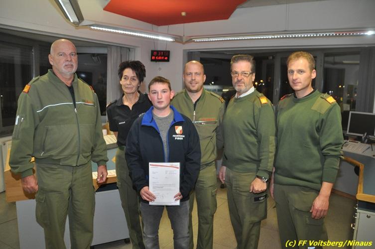 VOITSBERG, am 30.10.2017 BerFwKdt. LFR Engelbert Huber, Brandrat Christian Leitgeb und Wehrkommandant ABI Ing. Klaus Gehr sowie die Zivildienstbeauftragten BidF Ing. Bernd Unger und OLMdF Waltraud Veigl verabschiedeten kürzlich den Zivildiener Martin Moser von seinem Dienst im Rüsthaus Voitsberg und dankten ihm für sein Wirken, welches aufgrund seiner Feuerwehrzugehörigkeit bei der FF Piber sehr dienlich war, mit einer Urkunde und einem Erinnerungsgeschenk.