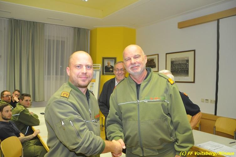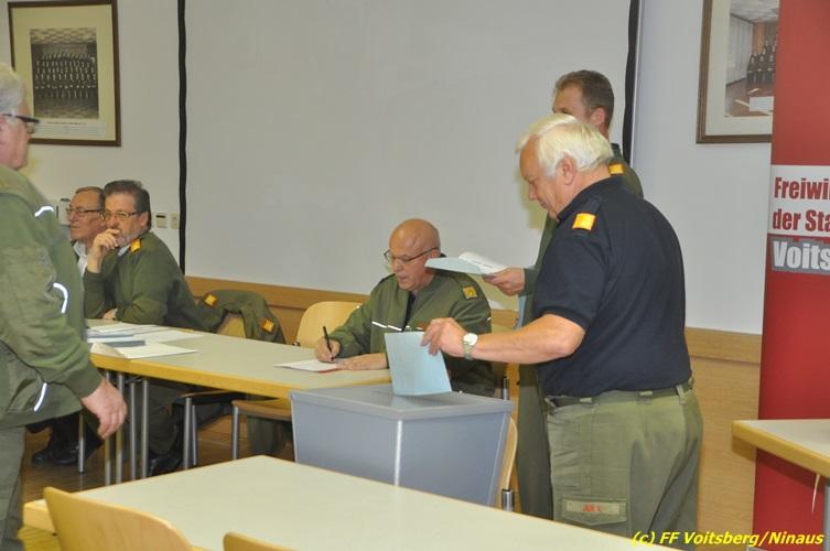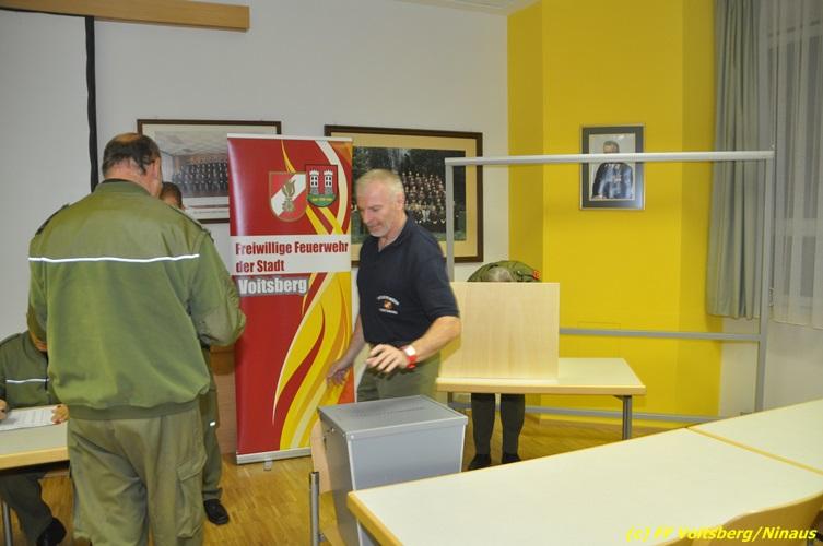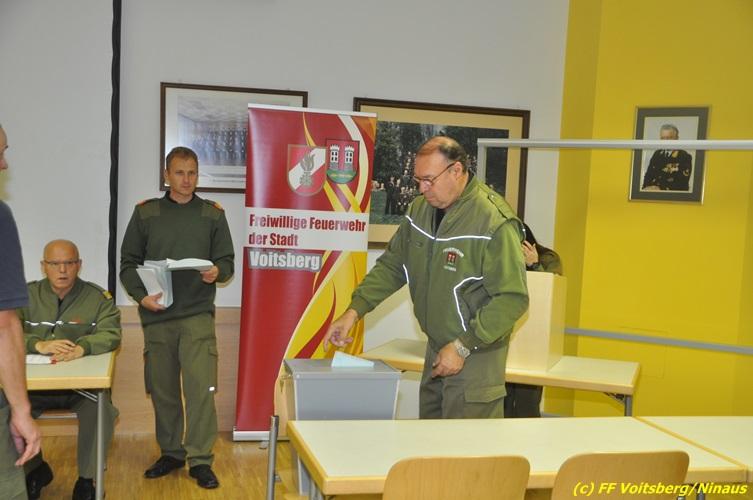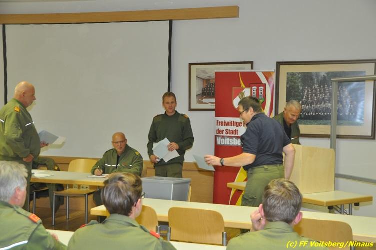VOITSBERG, am 30.10.2017 Da der bisherige stellvertretende Feuerwehrkommandant der FF Voitsberg OBI Michael Münzer aus gesundheitlichen Gründen seine Funktion zurücklegte, musste laut Statuten des Landesfeuerwehrgesetzes eine Neuwahl zeitgerecht abgehalten werden. Diese fand unter Vorsitz des Bereichsfeuerwehrkommandanten LFR Engelbert Huber im Sitzungssaal der Stadtfeuerwehr Voitsberg statt. Er konnte als Ehrengäste Bürgermeister Ernst Meixner, Finanzstadtrat Franz Sachernegg und Brandrat Christian Leitgeb begrüßen. Beim BerFwKdo sind fristgerecht zwei Wahlvorschläge, beide lautend auf Bernd Unger, eingelangt. Nach geheimer Wahl wurde BidF Ing. Bernd Unger fast einstimmig zum neuen Feuerwehrkommandant - Stellvertreter der FF Voitsberg gewählt. Gratulationen kamen in Kurzansprachen der Ehrengäste und des Wehrkommandanten ABI Ing. Klaus Gehr, sowie viel Applaus aus den Reihen der KameradInnen und dem Versprechen des Neugewählten, die Zusammenarbeit mit den Führungskräften und der Mannschaft zur vollsten Zufriedenheit zum Wohle der FF Voitsberg erfüllen zu wollen.