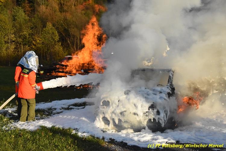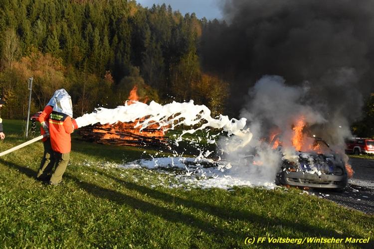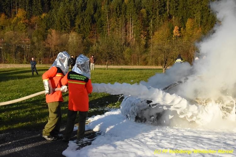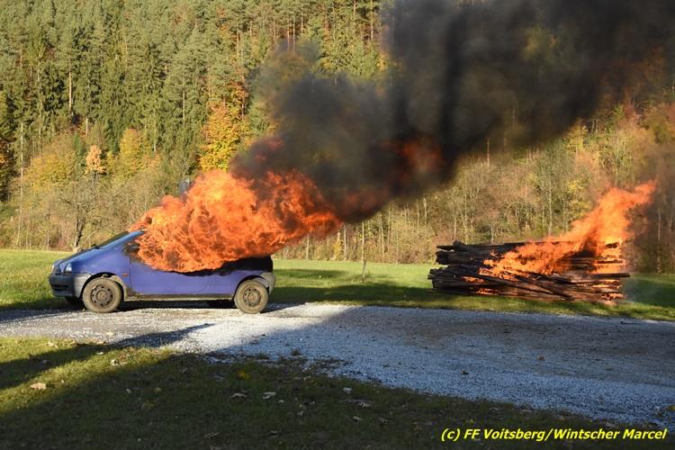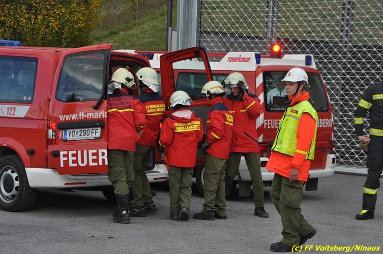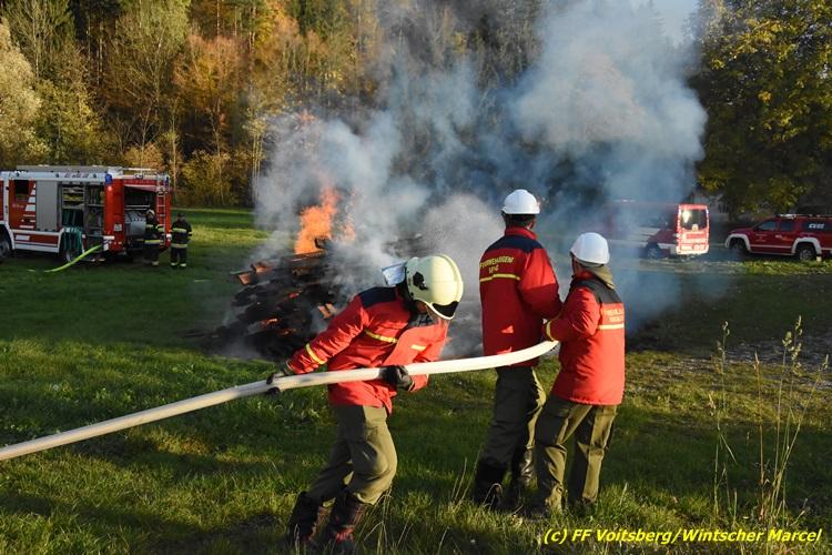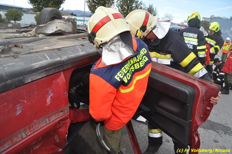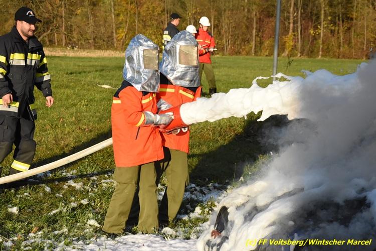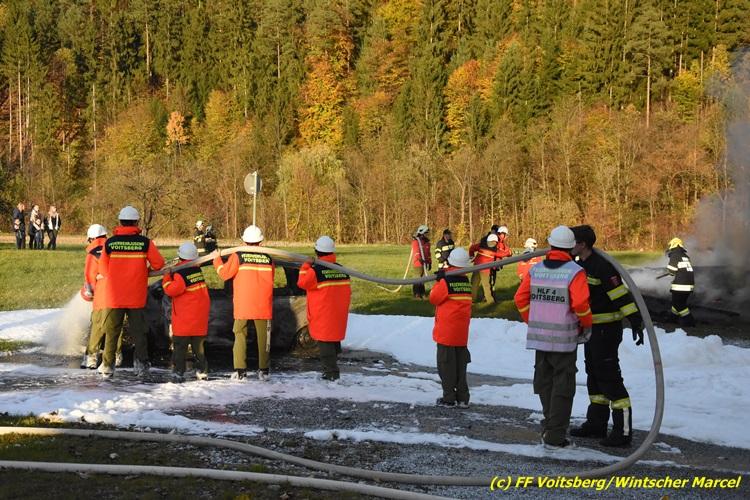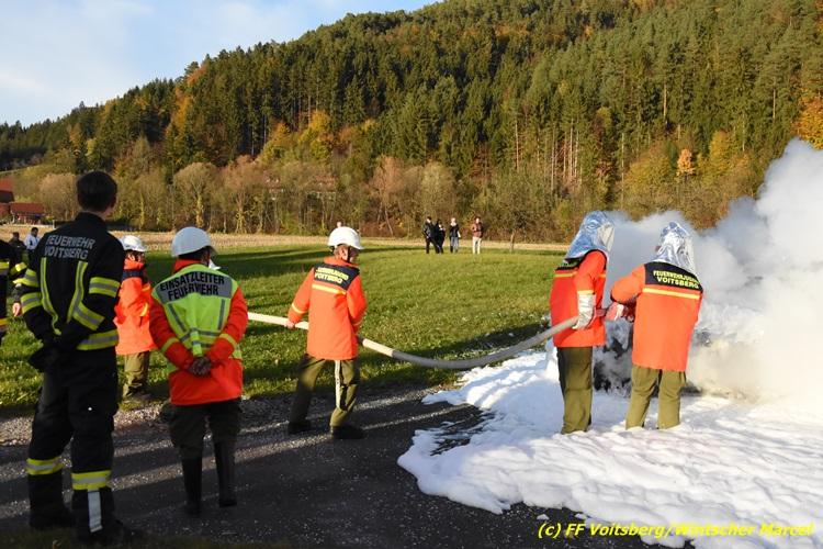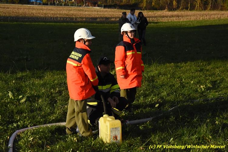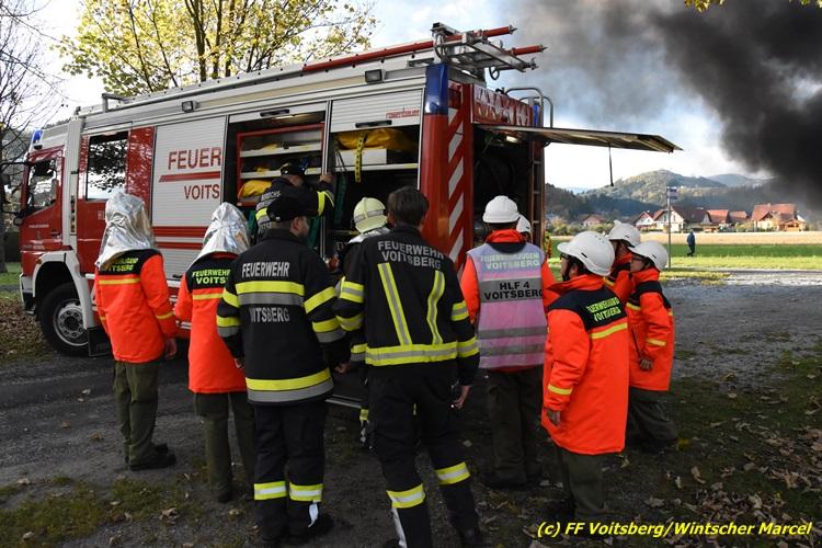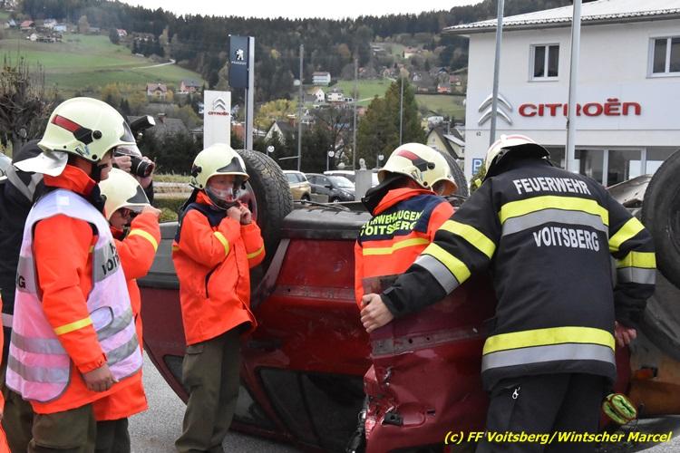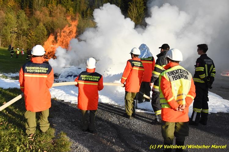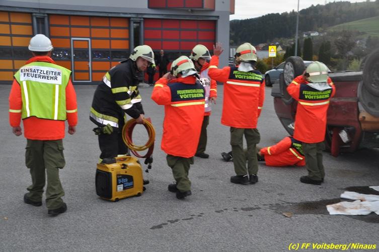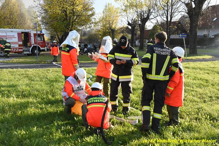 VOITSBERG, am 27.10.2017 Im Rahmen einer 24-Stunden-Übung der Feuerwehrjugend der Feuerwehren Afling, Bärnbach, Maria Lankowitz, Rosental und Voitsberg fand am 28. Oktober um 15 Uhr am Vorplatz des Rüsthauses Voitsberg eine technische Einsatzübung statt. Übungsannahme war nach einem Zusammenstoß zweier PKW die Rettung von zwei eingeklemmten Personen mit hydraulischer Schere und Spreizer, sowie die Absicherung der Unfallstelle und dem Herstellen eines Brandschutzes. Die 30 beteiligten Jugendlichen konnten die gestellten Aufgaben vor vielen anwesenden Verwandten und Feuerwehrfunktionären mit vollster Zufriedenheit der Ausbilder lösen. Weitere Übungsorte dieser 24-Stunden-Übung waren in Bärnbach, Afling und Rosental.