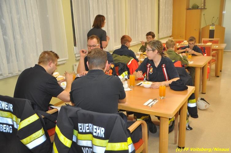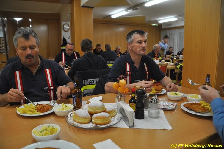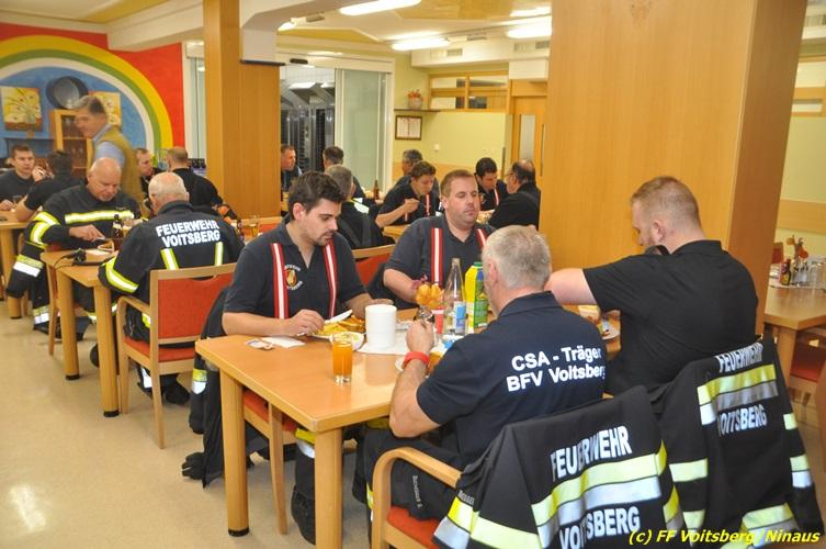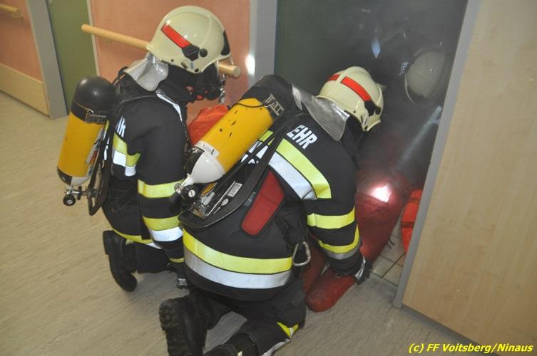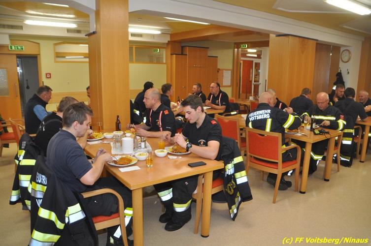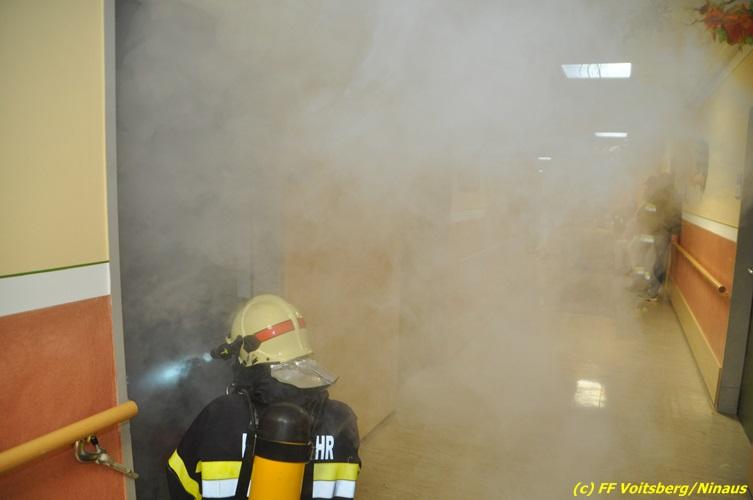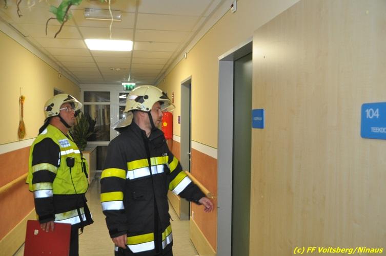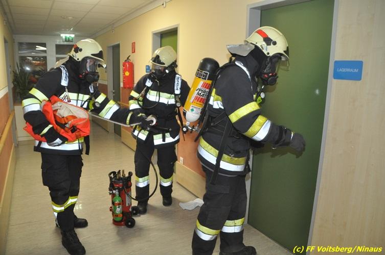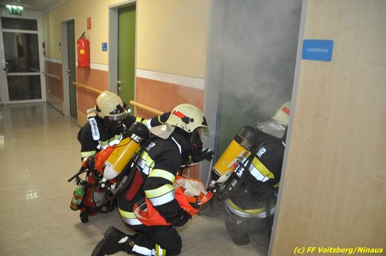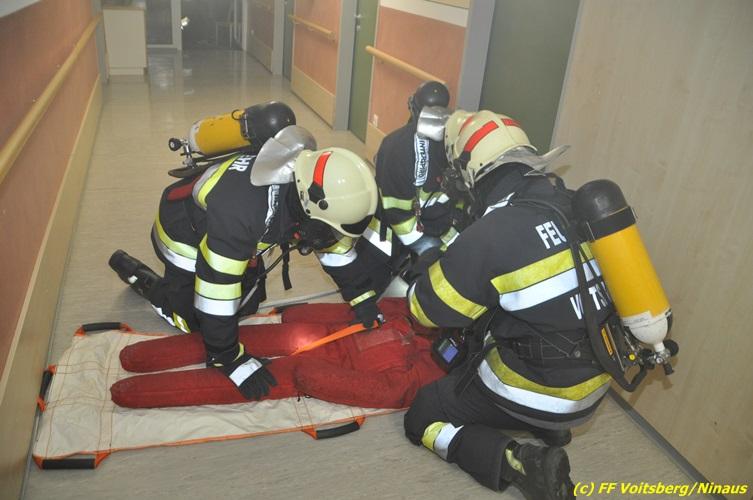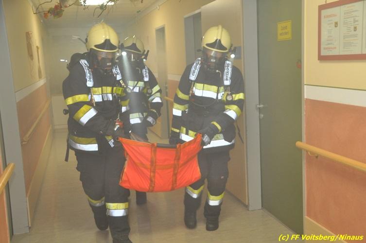 VOITSBERG, am 13.11.2017 Die Freiwillige Feuerwehr Voitsberg führte im Bezirkspflege- und Seniorenheim am Voitsberger Schlossberg eine Einsatzübung durch. Übungsannahme war ein Zimmerbrand mit zwei Vermissten. Unter schwerem Atemschutz wurden diese von einem Trupp gerettet. Des weiteren wurden die Funktionalität der Steigleitung als auch sämtliche Zugänge zum Objekt überprüft. Bei einer abschließenden Erläuterung des Einsatzes durch den Übungsleiter OBI Ing. Bernd Unger wurde dem Personal nochmals der Übungsablauf und das richtige Verhalten in einem Brandfalle erklärt. Betriebsdirektor Erich Corner bedankte sich bei der FF Voitsberg für die Durchführung der Übung und seinem Personal für das Interesse der Teilnahme und lud zu einem Abendessen, bei welchem noch die Eindrücke dieser Übung diskutiert wurden. Wehrkommandant ABI Ing. Klaus Gehr bedankte sich namens der KameradInnen für die Einladung.