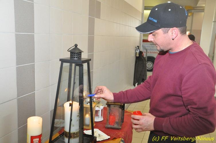 VOITSBERG, am 24.12.2017 Jedes Jahr am Heiligen Abend gibt es für die Bevölkerung das Friedenslicht aus Bethlehem, welches heuer von einem Jungfeuerwehrmann aus Oberösterreich abgeholt wurde. Seitens der Voitsberger Feuerwehrjugend wurde das Licht in der Pfarrkirche in Hirschegg abgeholt. Sehr viele Voitsbergerinnen und Voitsberger nutzten die Gelegenheit und nahmen dieses im Rüsthaus Voitsberg entgegen. Als Verbundenheit zur FF Voitsberg wurde den Bürgern Getränke, belegte Brote und Kekse angeboten, was sehr viele annahmen und sich mit einer Spende bedankten. Dank sei der Familie Veigl für die Vorbereitung und Durchführung dieser traditionellen Veranstaltung auszusprechen.