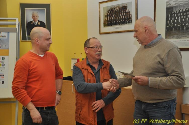 VOITSBERG, am 05.02.2018 Anlässlich der Vollendung des 60. Lebensjahres gratulierten ABI Ing. Klaus Gehr und OBI Ing. Bernd Unger dem langjährigen Mitglied Löschmeister Ferdinand Jauschnik und übergaben ihn namens aller Kameradinnen und Kameraden ein Ehrengeschenk.